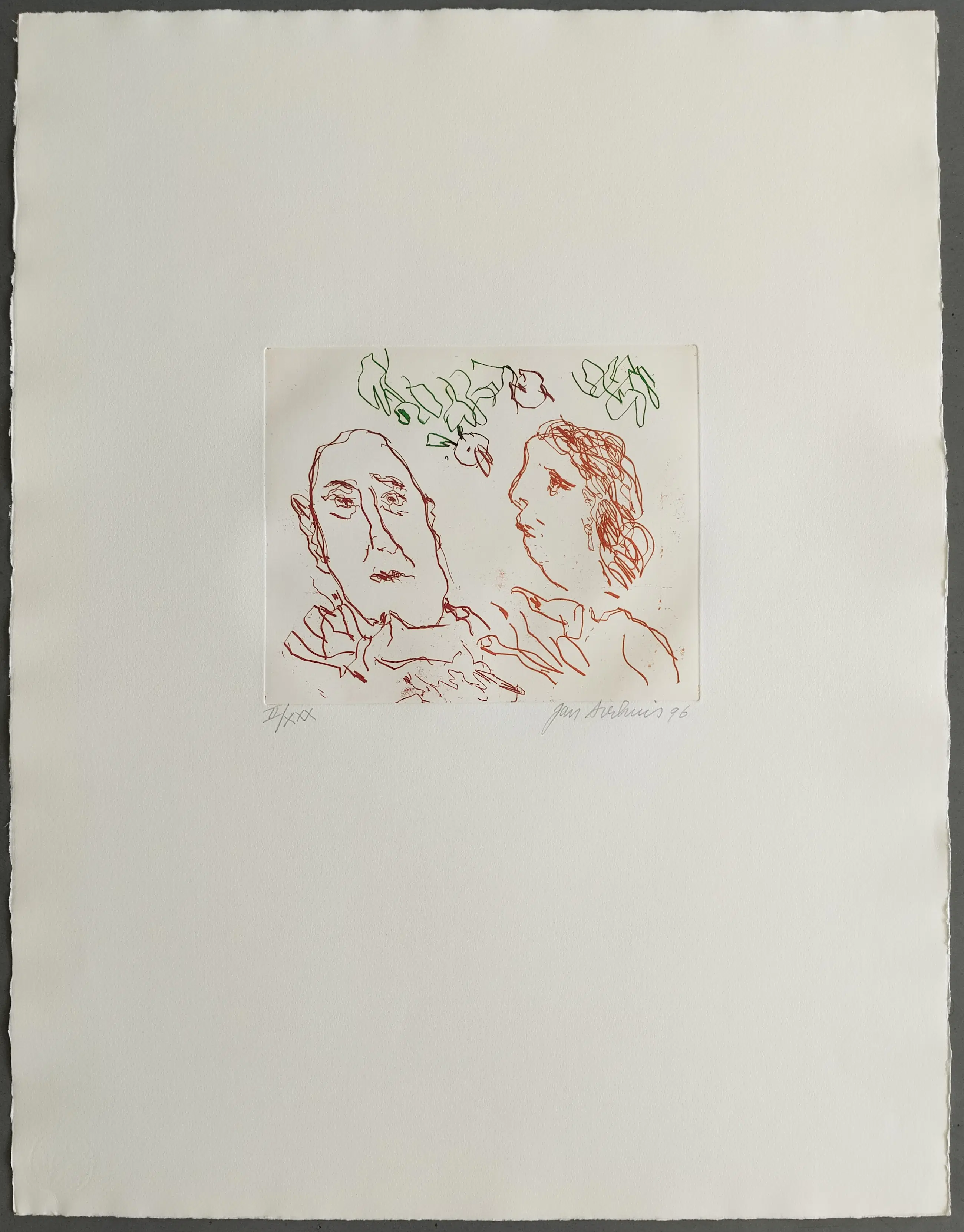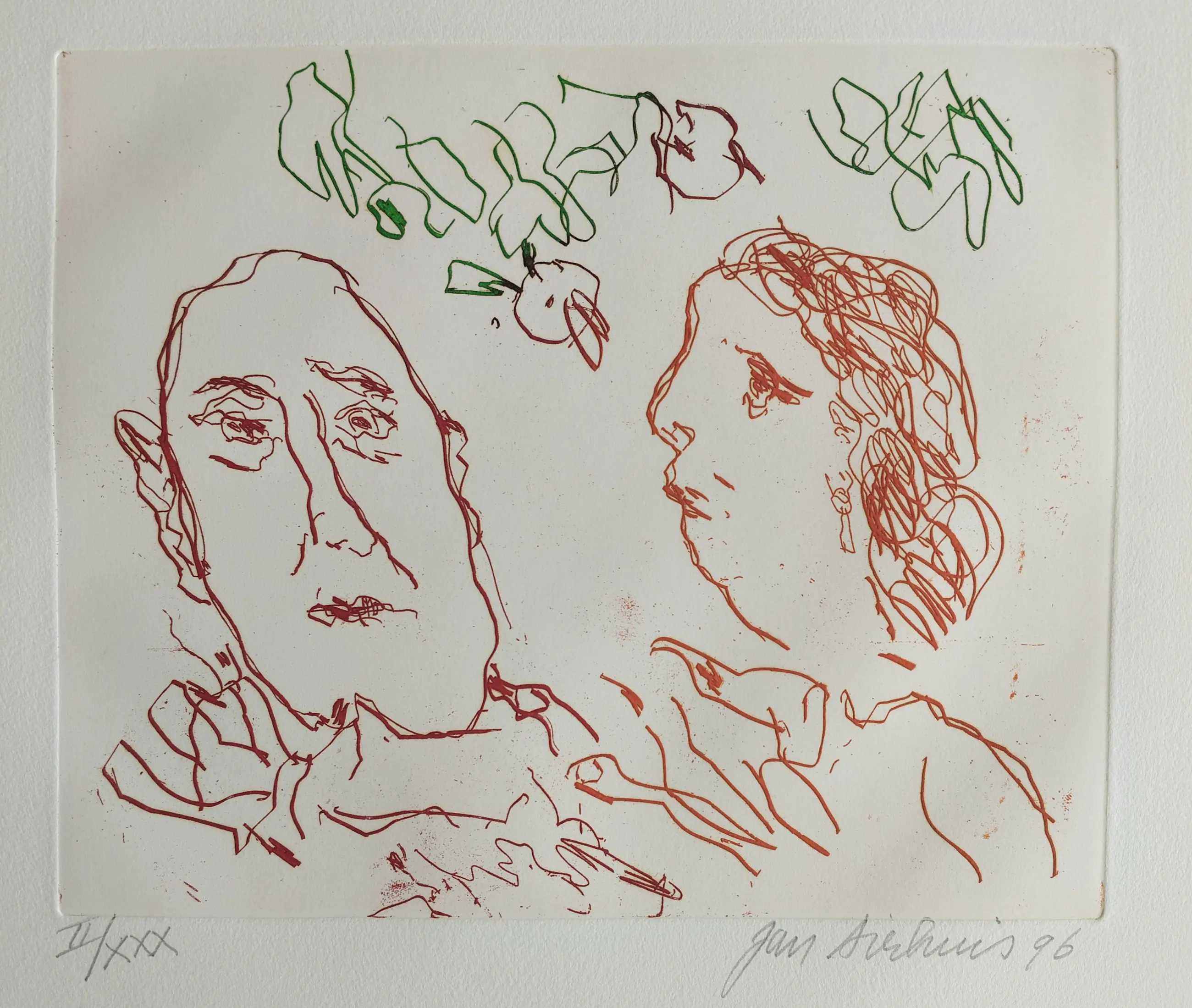 Gesigneerde ets van de kunstenaar Jan Sierhuis (1928) Rechts is het werk gesigneerd in potlood met Jan Sierhuis 96 en links genummerd II/XXX. Afmeting werk 19 x 23 cm (h x b) Papiermaat 65 x 50 cm (h x b). De ets is in prima staat en is nooit ingelijst geweest.