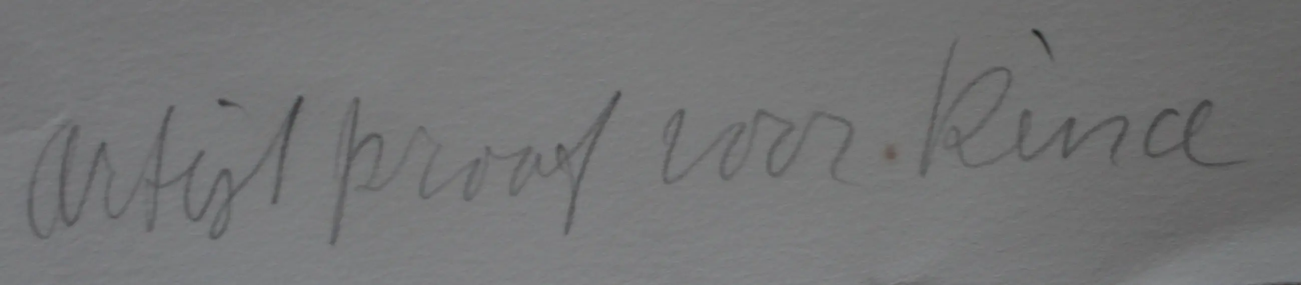 Rina = Rina Berghuis. Zij is de partner van wijlen Piet Clement. Van alle bladen grafiek, die in de drukkerij op de Prinsengracht ontstonden, ontving zij meestal 1 exemplaar met de opdracht "Voor Rina".