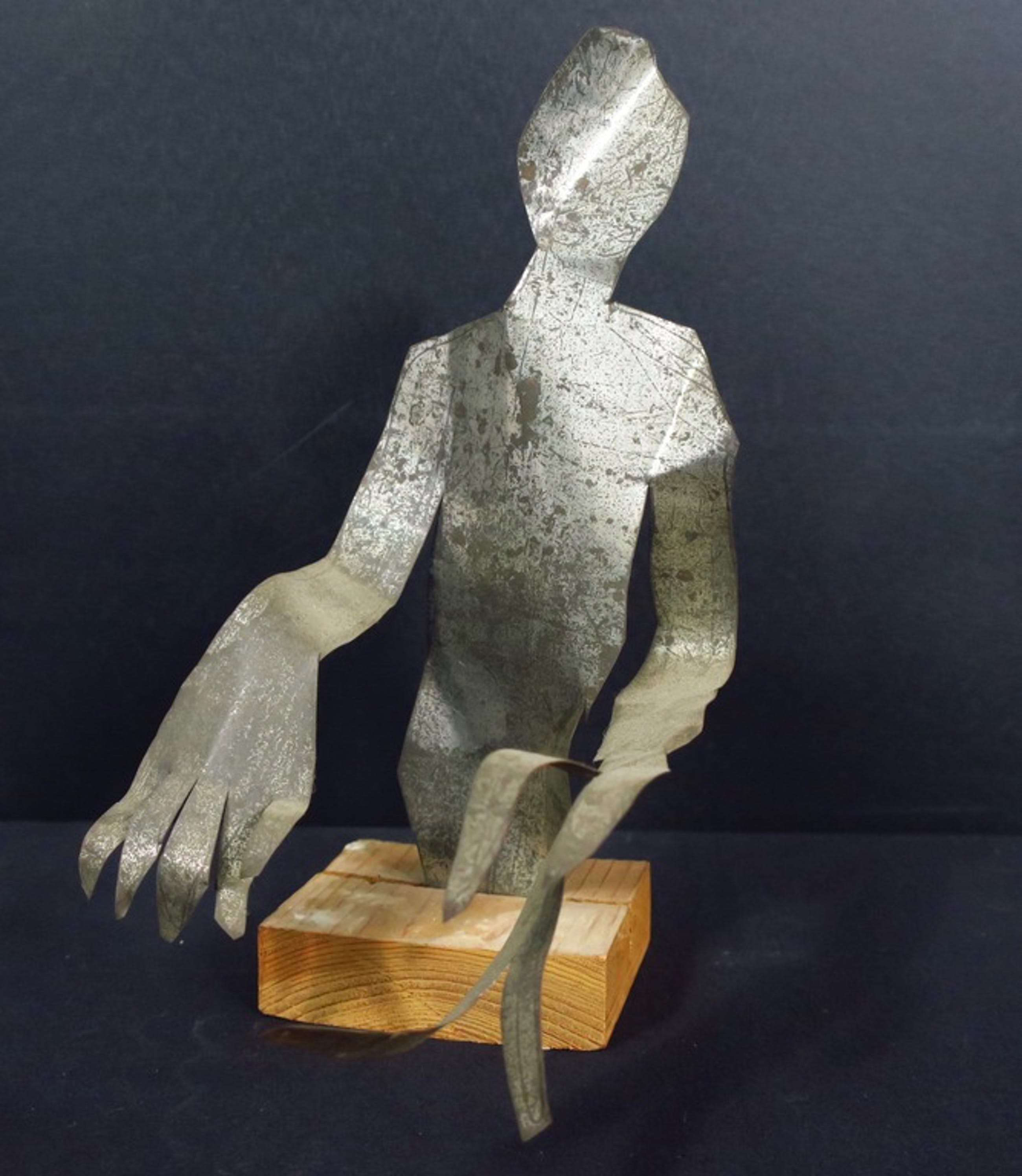 Materiaal: Geknipt plaatijzer en houten voetstuk