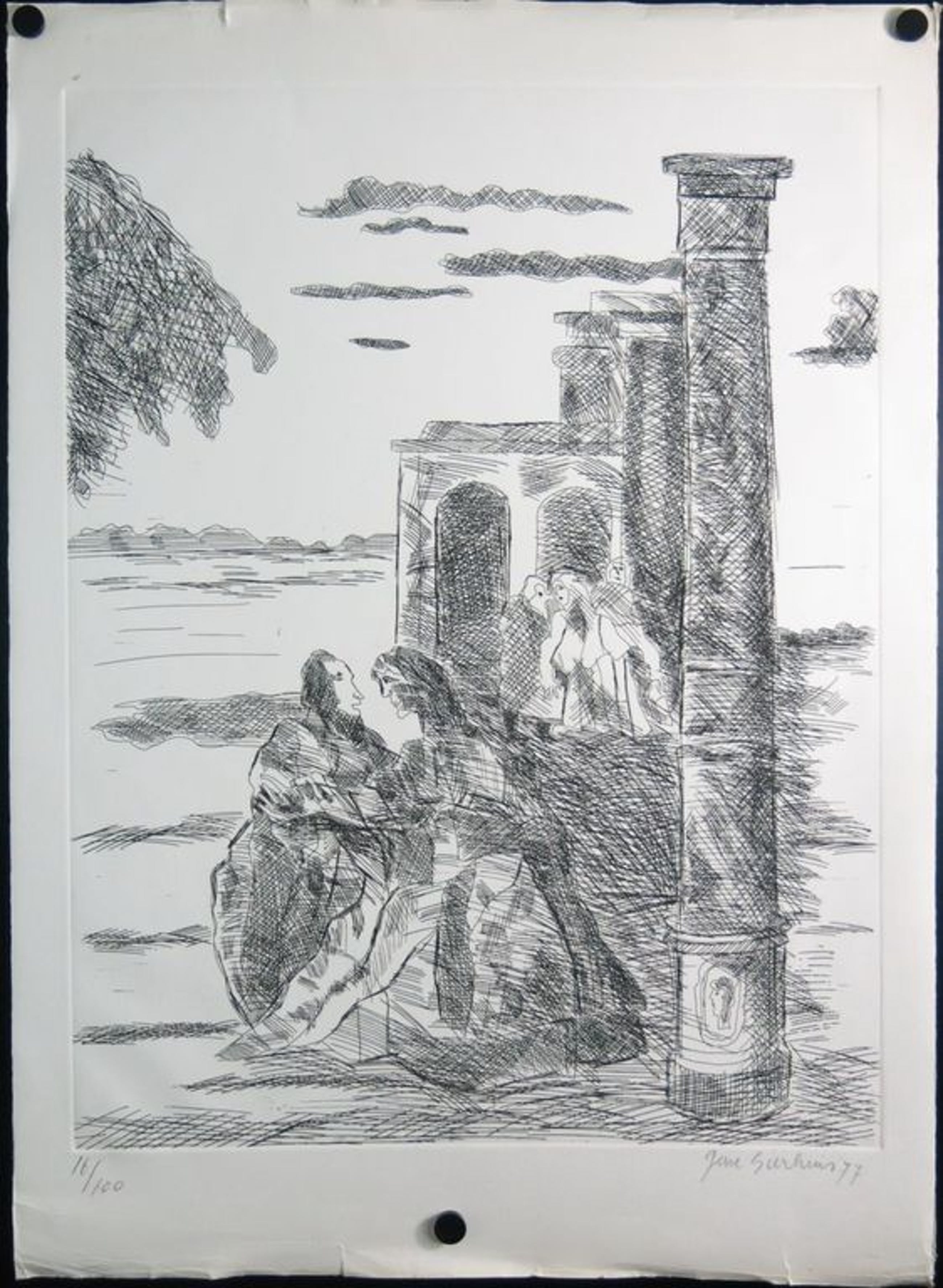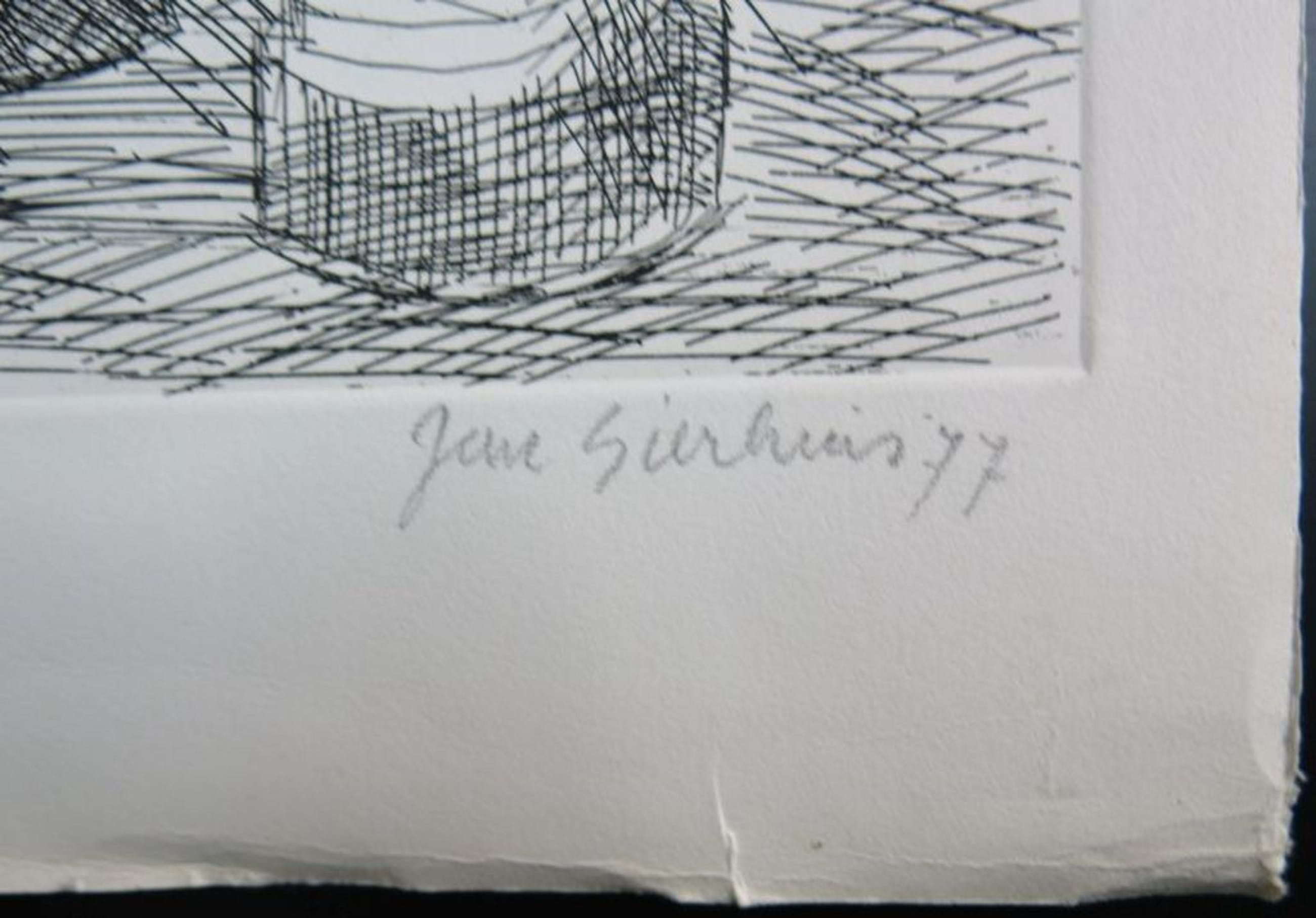 Conditie: Er zitten in het beeld wat lichte kreukjes, die echter amper opvallen. Ook in de witrand is het papier wat gekreukt, maar wanneer het werk wordt ingelijst zal dit niet meer te zien zijn.