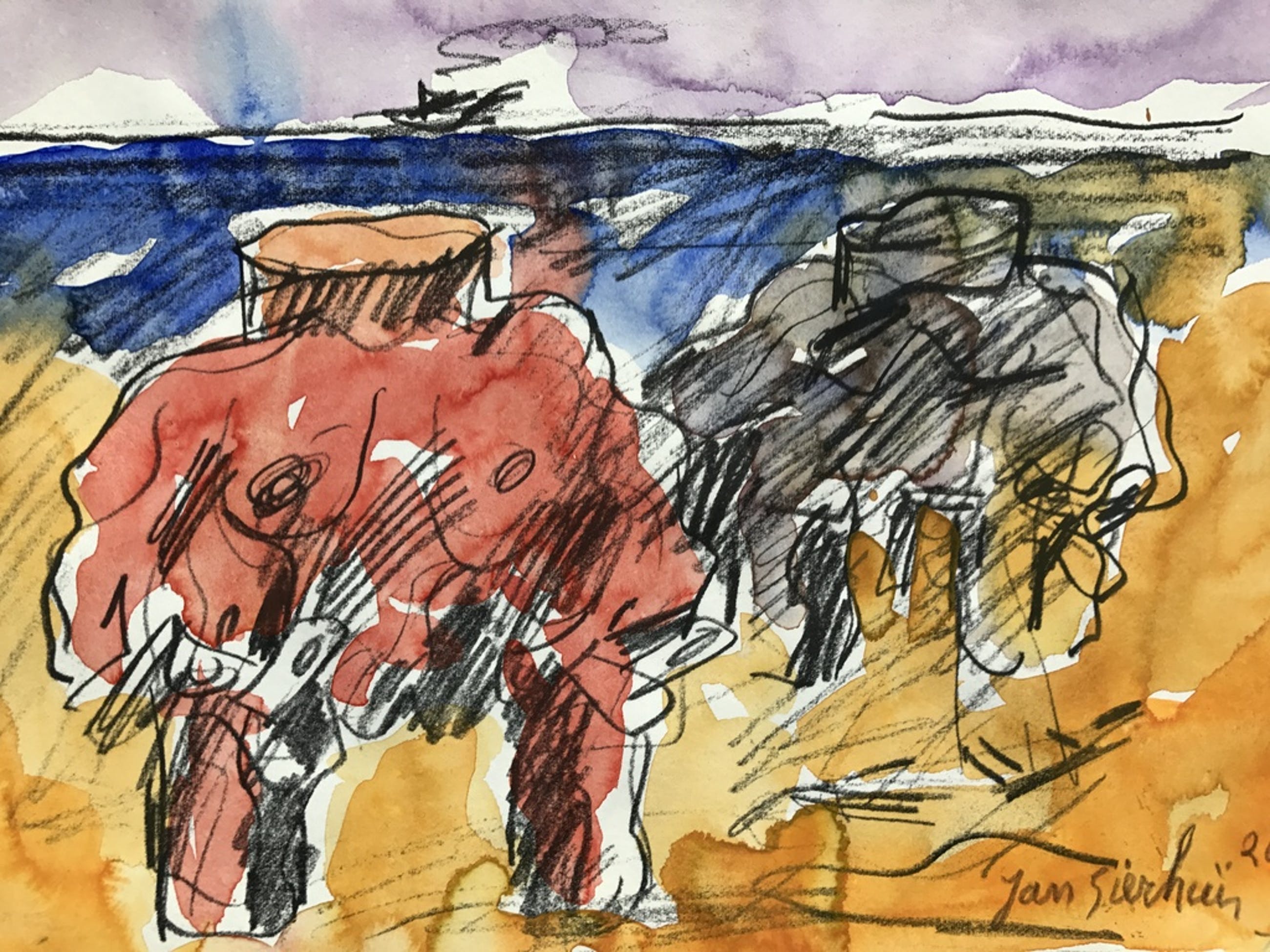 Originele ingekleurde litho van JAN SIERHUIS 2015.