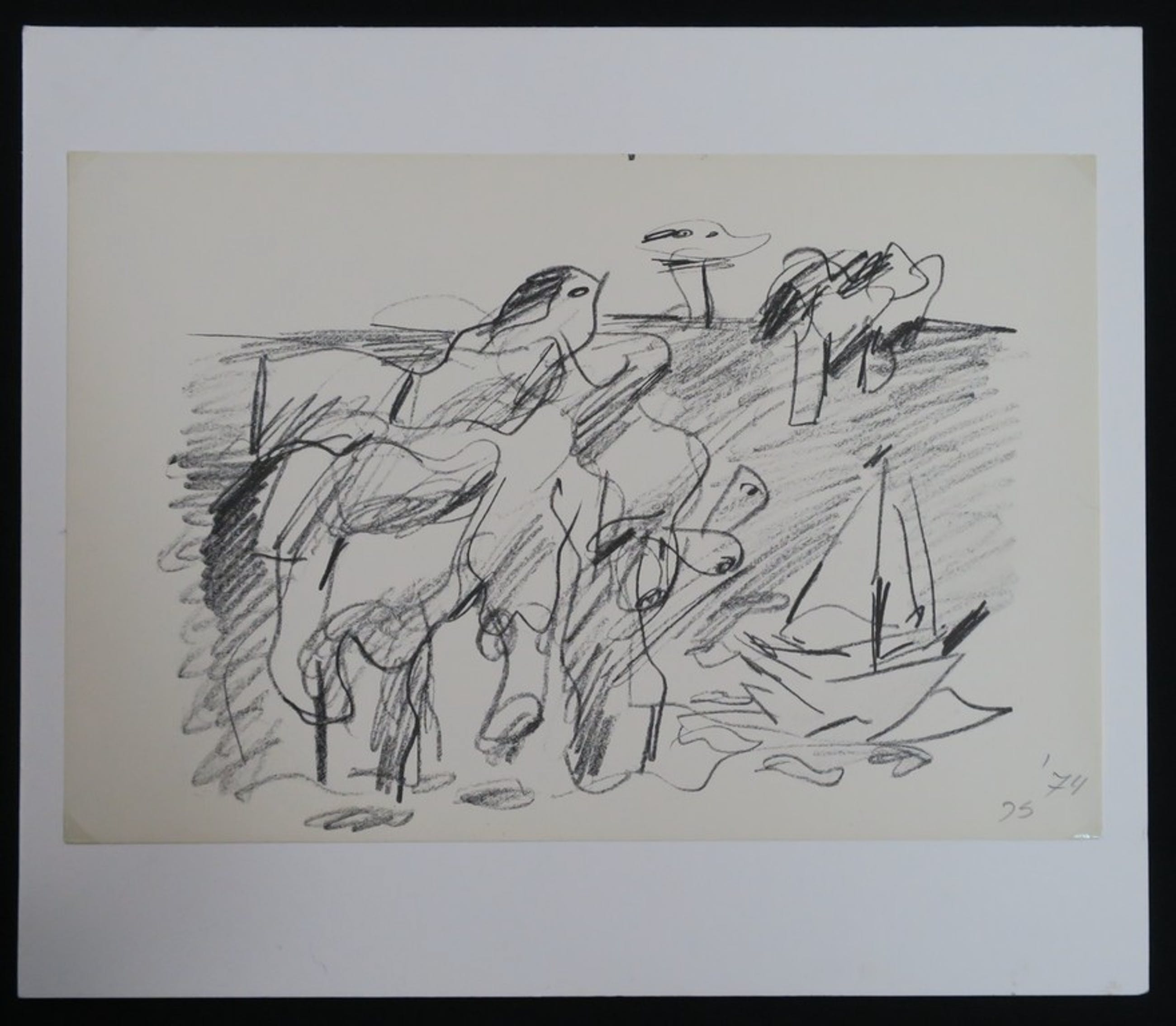 Kleine beschadigingen aan lijsten worden niet beschreven! Bij ingelijste werken achter glas vermelden wij altijd glasschade. Passe-partouts worden op geen enkele manier gegarandeerd en ook niet altijd meegezonden. Alleen als een werk niet uit het passe-partout te halen is, zal dit vermeld worden.