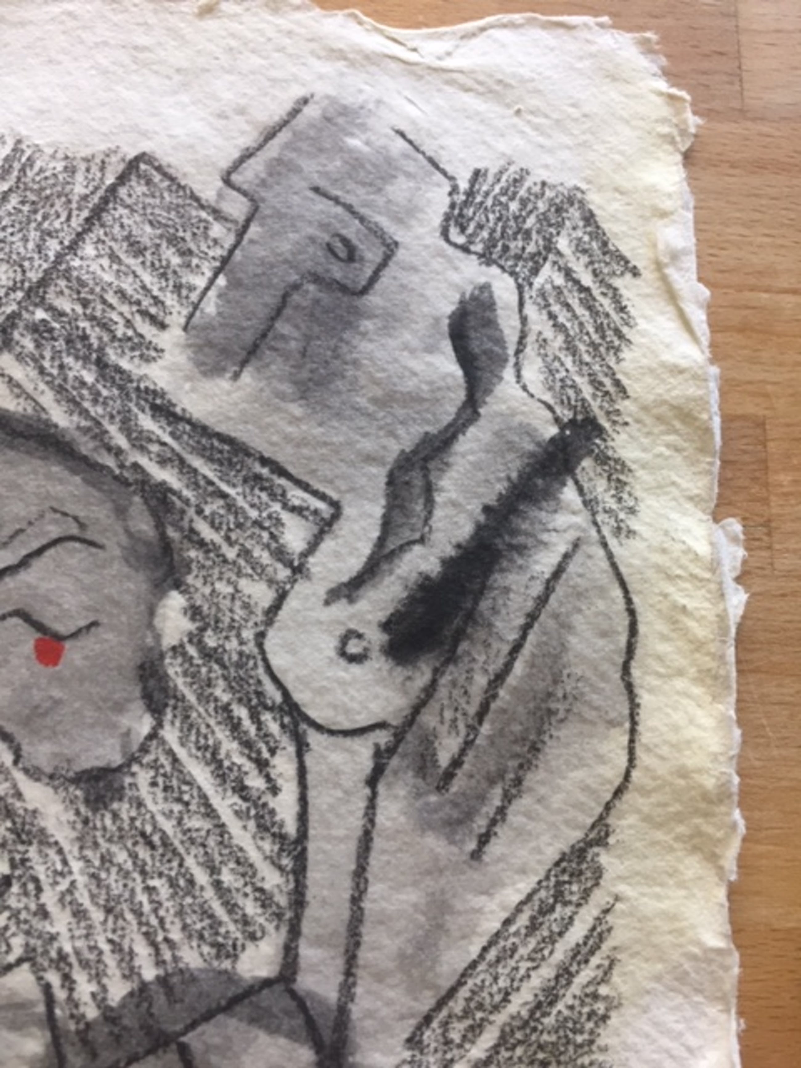 Prachtig, origineel, werk van Sierhuis, lavis en houtskool en was op handgeschept papier, gesigneerd met houtskool.
