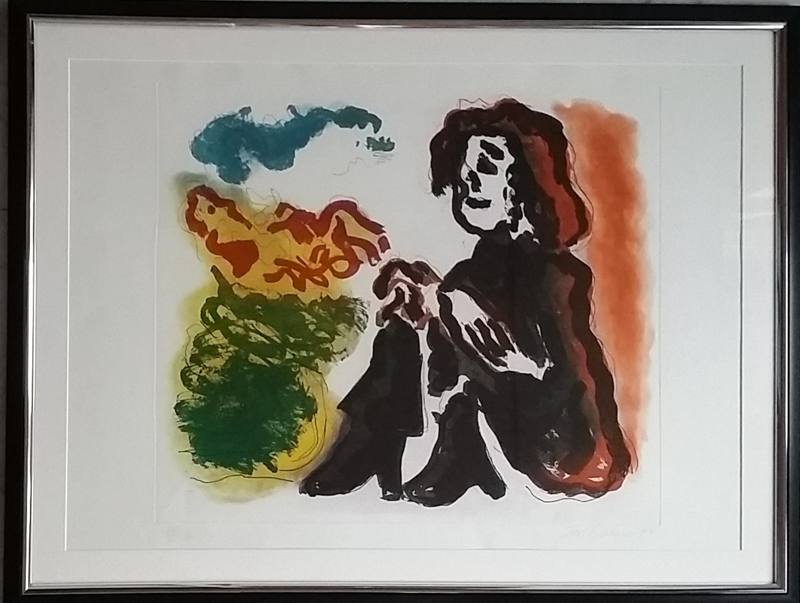 Jan Sierhuis Titel : Zittende vrouw Prachtige Litho en handmatig ingekleurd ( afdruk van de steen aan de zijkant van papier is te zien) Gesigneerd rechts