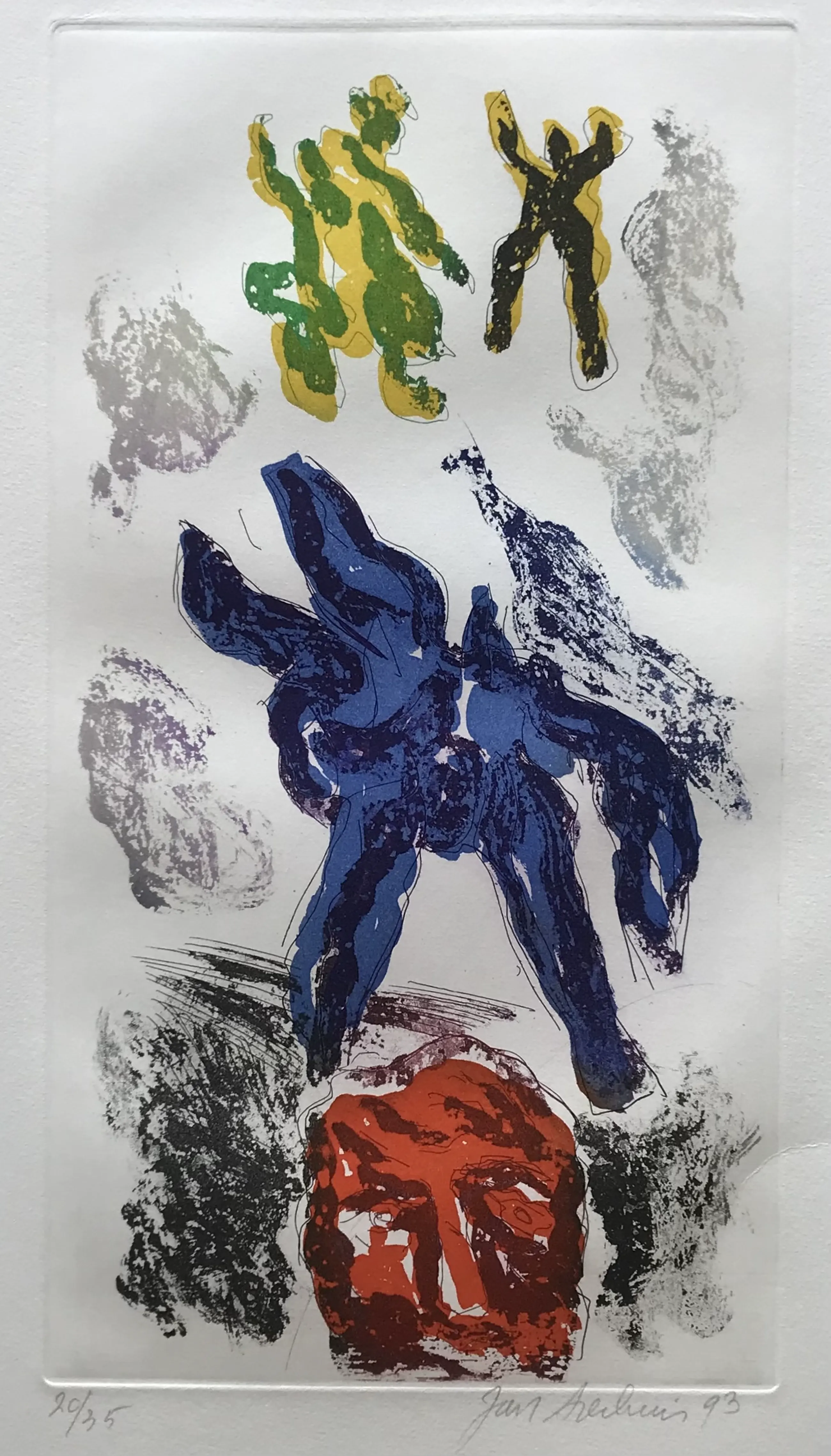 Een zeer mooie kleurenets van Jan Sierhuis uit 1993. Het werk is gesigneerd en genummerd, kleine oplage van 35 ex. Dit is nr 20. Zal zonder passe partout verzonden worden.
