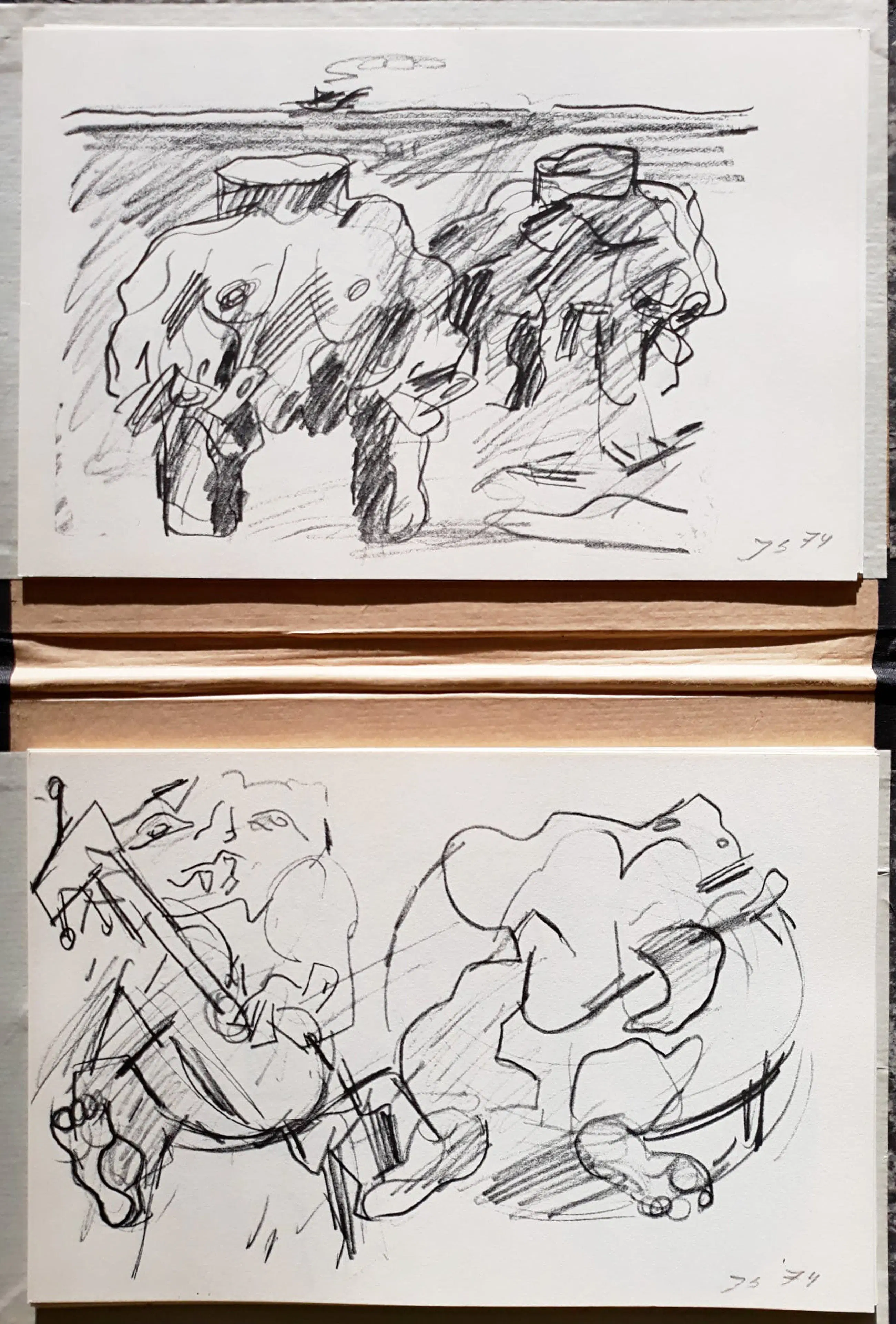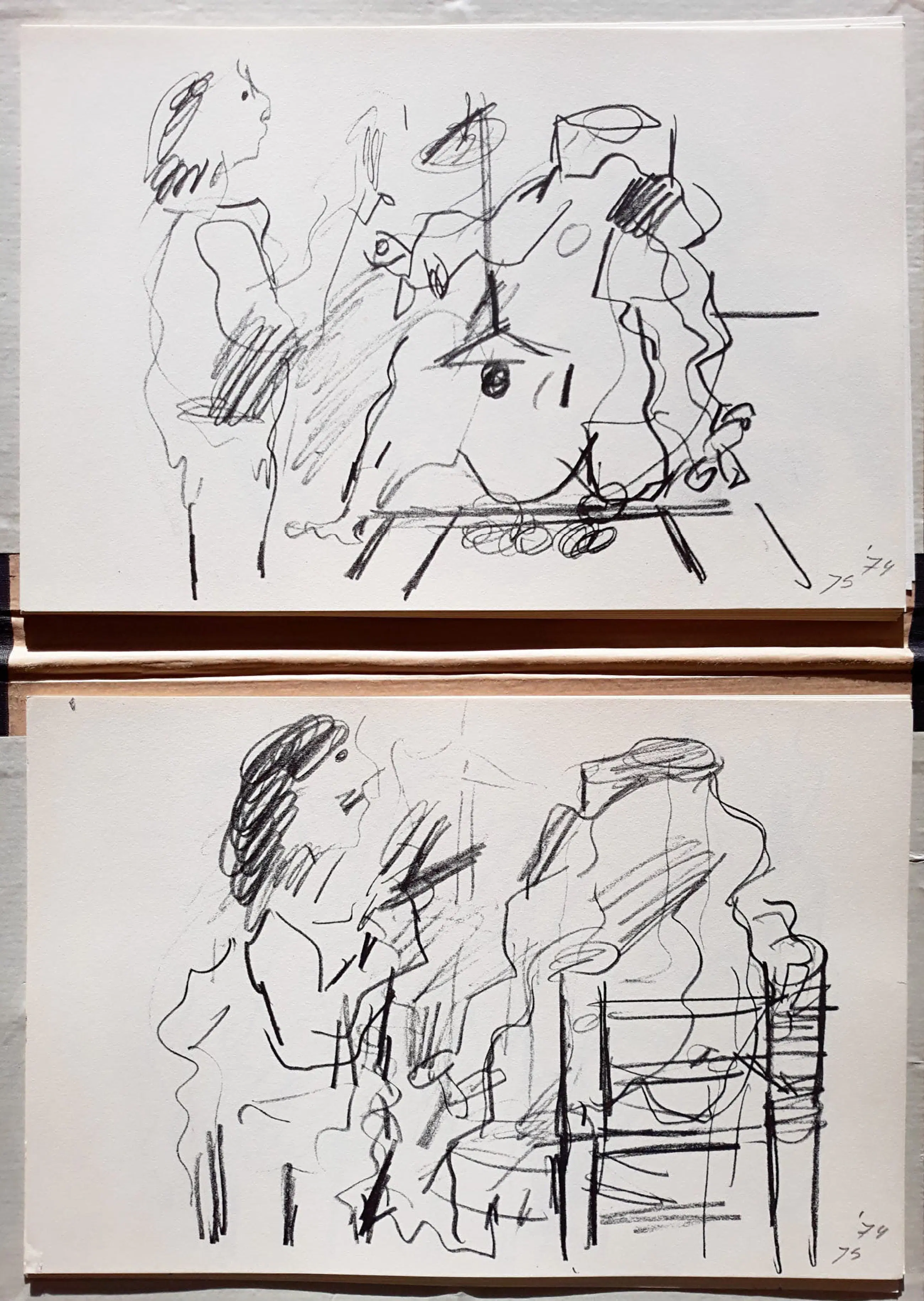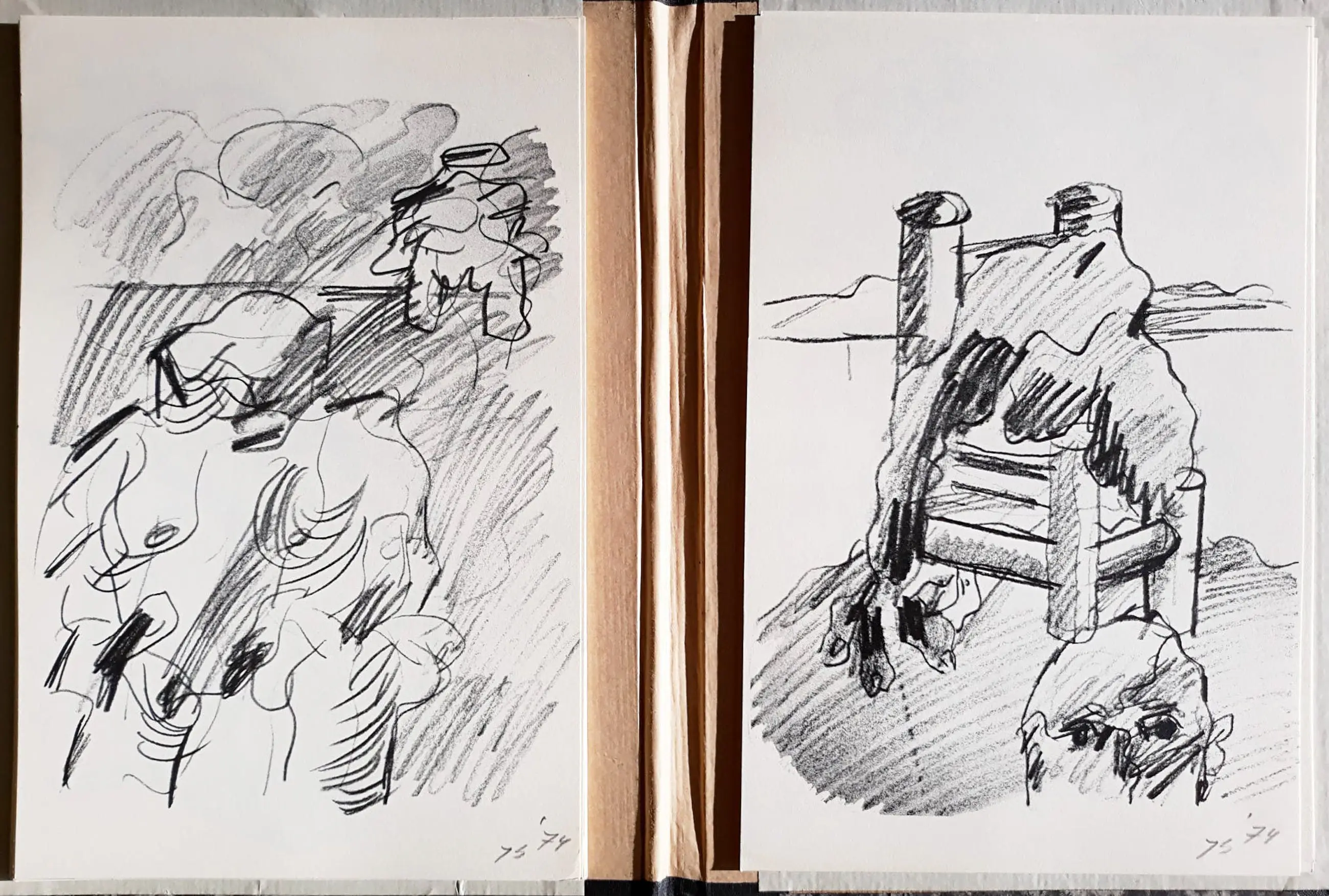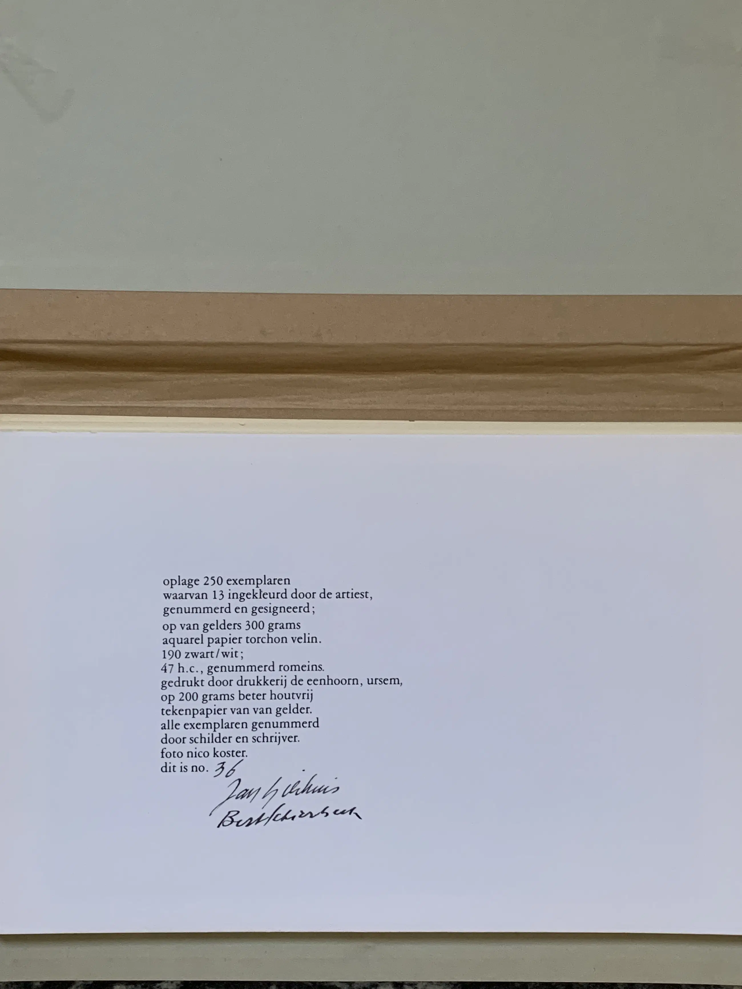 Schetsboek Jan Sierhuis en Bert Schierbeek. Deze uitgave bevat 20 litho's van Jan Sierhuis, allen met de hand gesigneerd. Tevens een gedicht op 4 bladen van Bert Schierbeek en een foto van Nico Koster van Sierhuis en Schierbeek. In de originele map (nummer 36) en in zeer goede staat.
