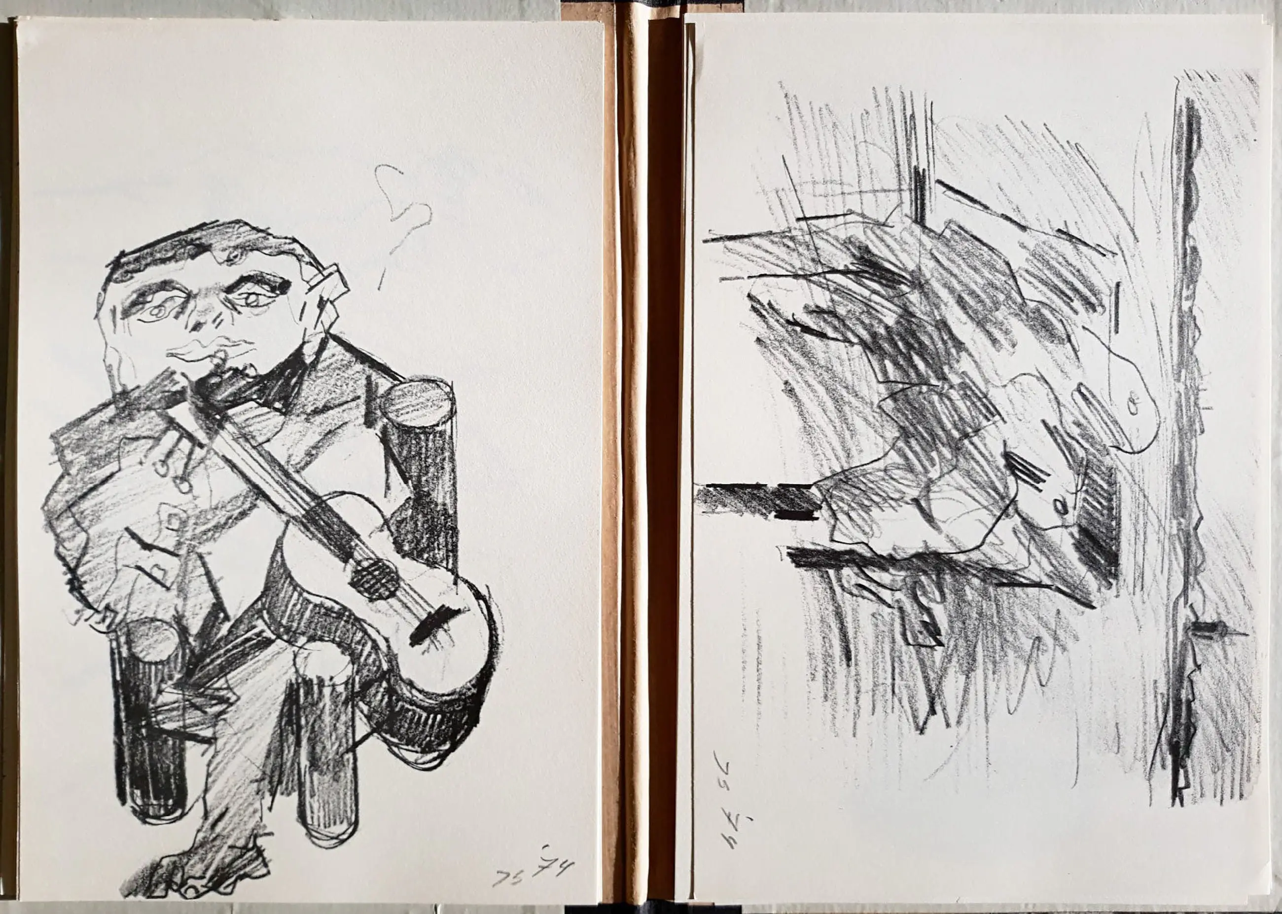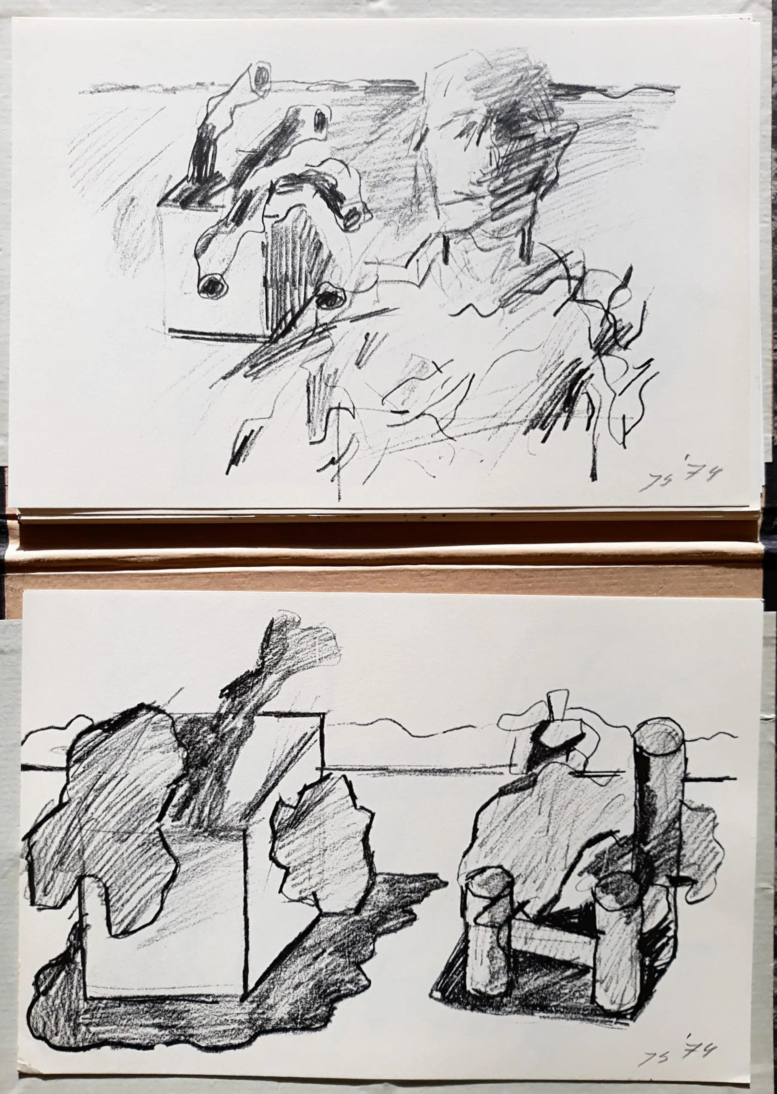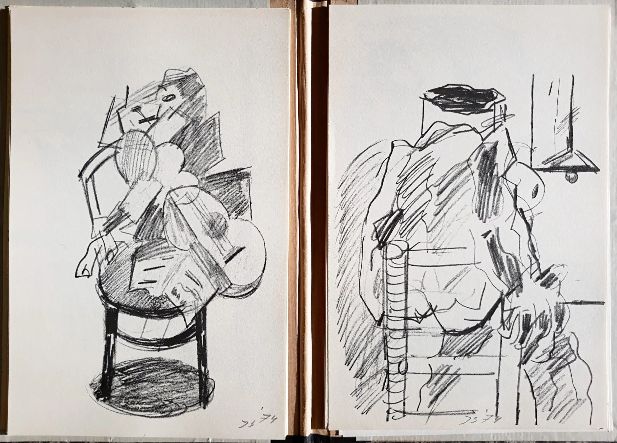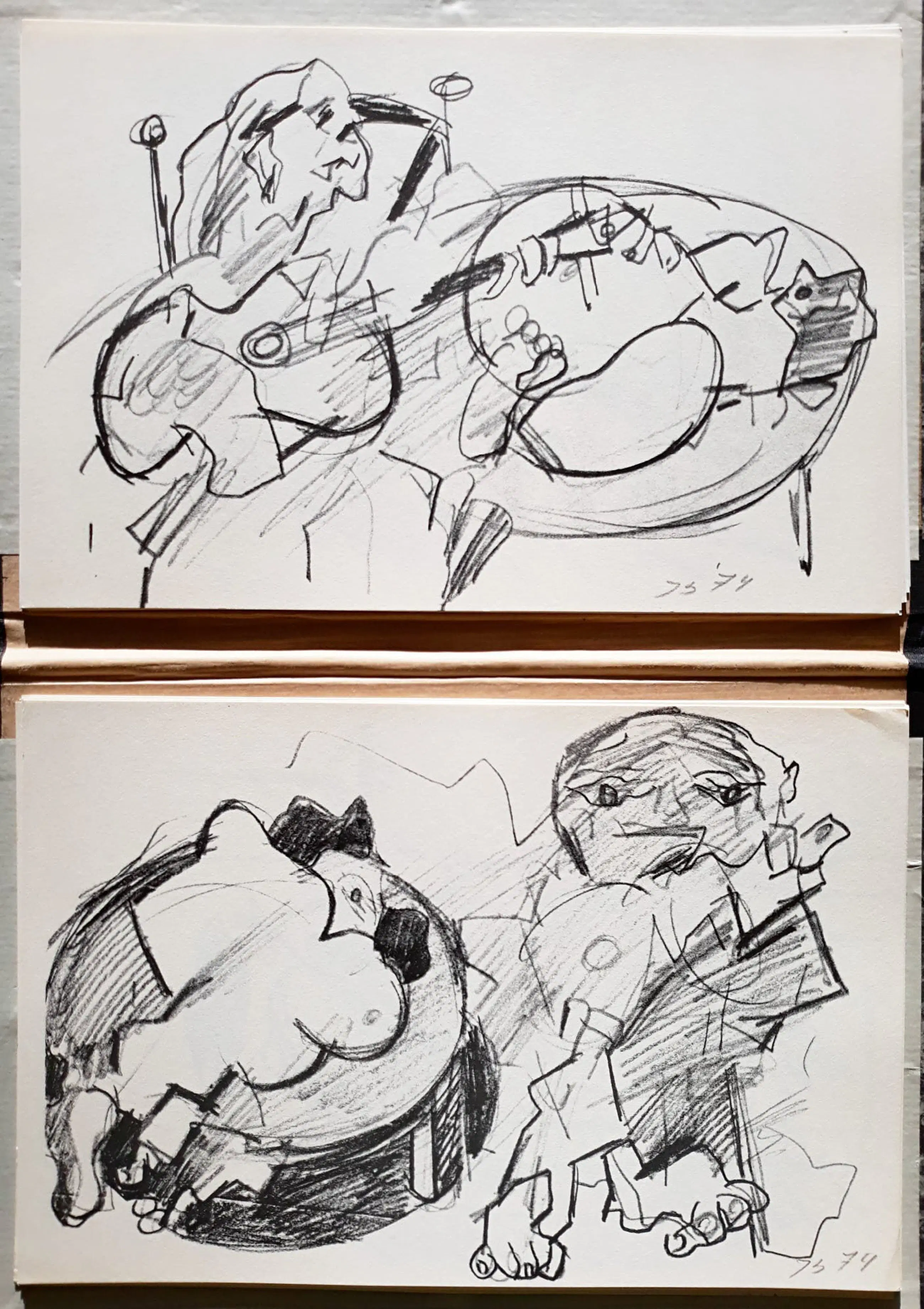 Schetsboek Jan Sierhuis en Bert Schierbeek. Deze uitgave bevat 20 litho's van Jan Sierhuis, allen met de hand gesigneerd. Tevens een gedicht op 4 bladen van Bert Schierbeek en een foto van Nico Koster van Sierhuis en Schierbeek. In de originele map (nummer 36) en in zeer goede staat.