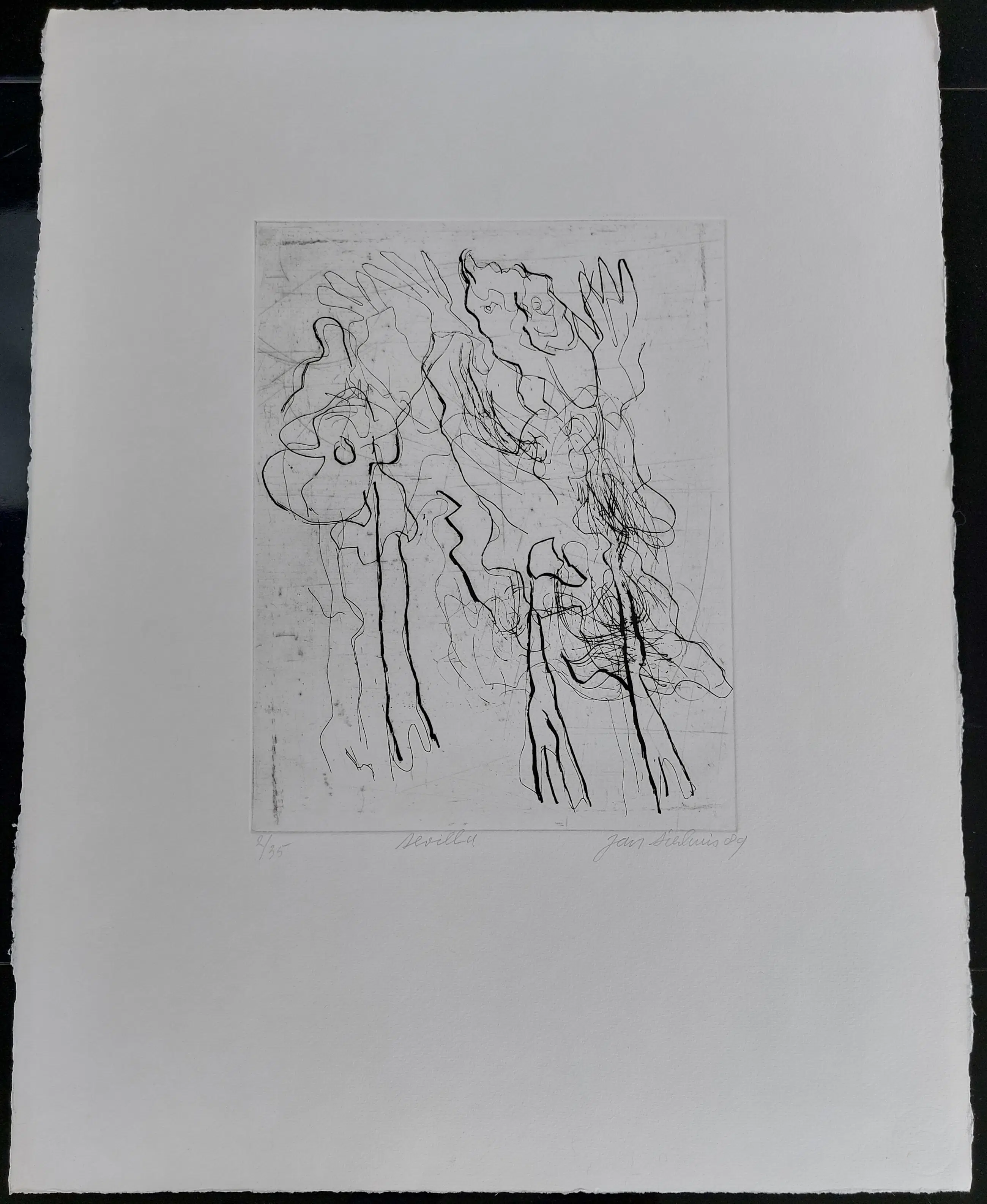 Grote ets getiteld Sevilla. In het werk is zichtbaar dat Sierhuis verwant is aan de Cobra stroming. Handgesigneerd, gedateerd en genummerd in potlood. Betreft nummer 2 uit een oplage van slechts 35 exemplaren. De afmetingen betreffen het hele vel. In zeer goede staat.