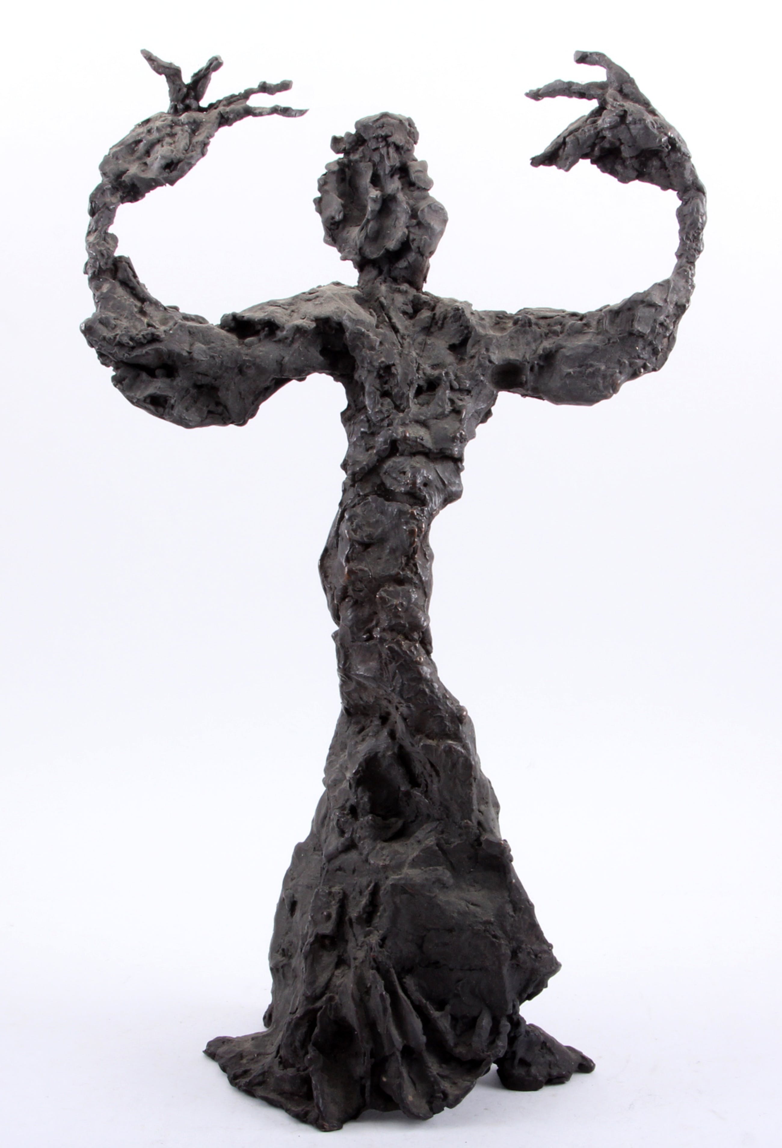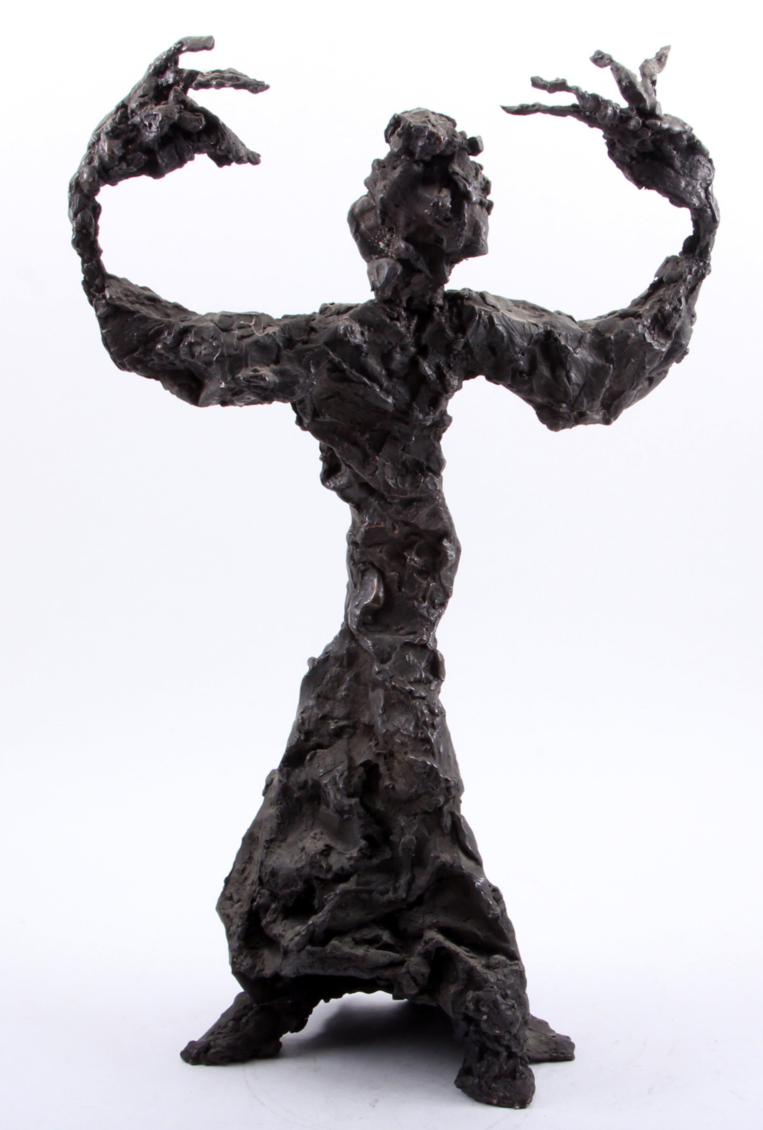 Titel: Tango danseres Jaartal: Onbekend Afmetingen: breedte armen x hoogte beeld = 32cm x 55cm Gesigneerd: Nee Materiaal: Brons, massief, zeer zwaar uitgevoerd. Oplage: Onbekend. Het werk verkeert in zeer goede staat.