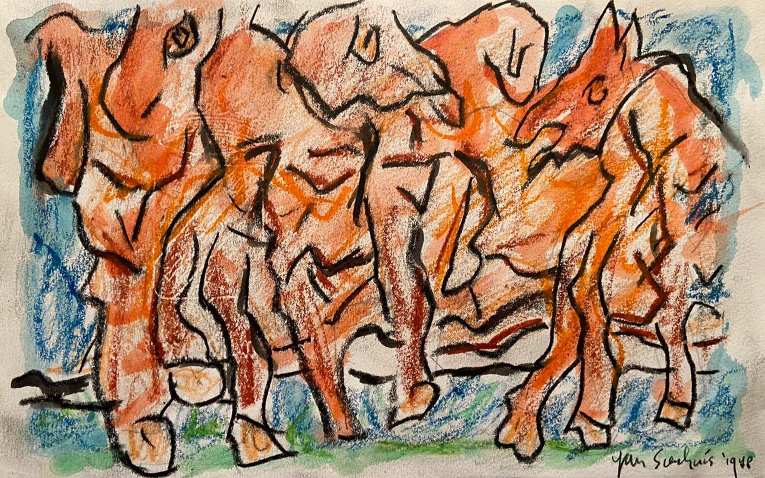 Jan Sierhuis tekening Techniek: Acryl /Krijt Op geschept Arches papier Afmetingen: 31.5x20cm Jaartal: 1978