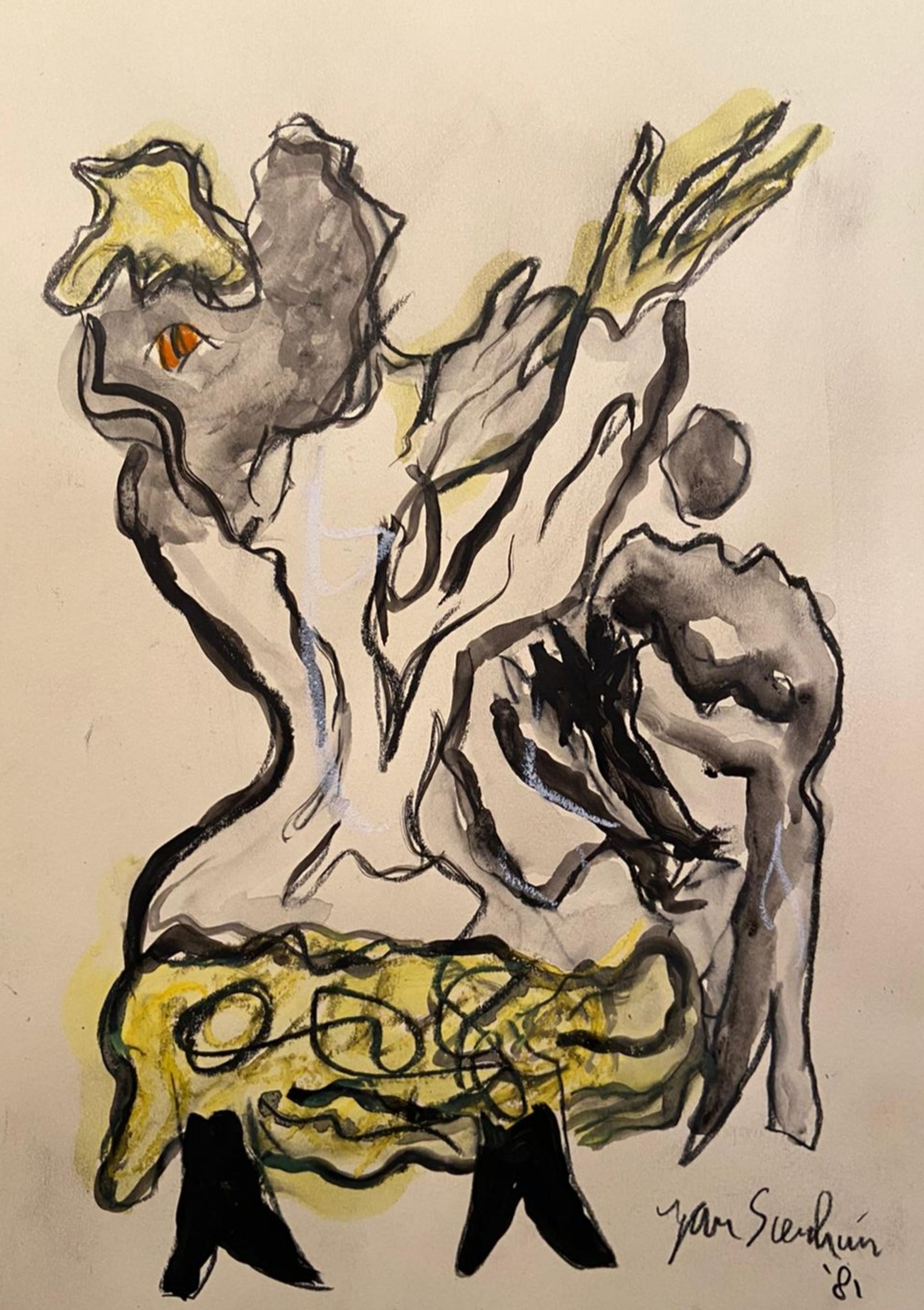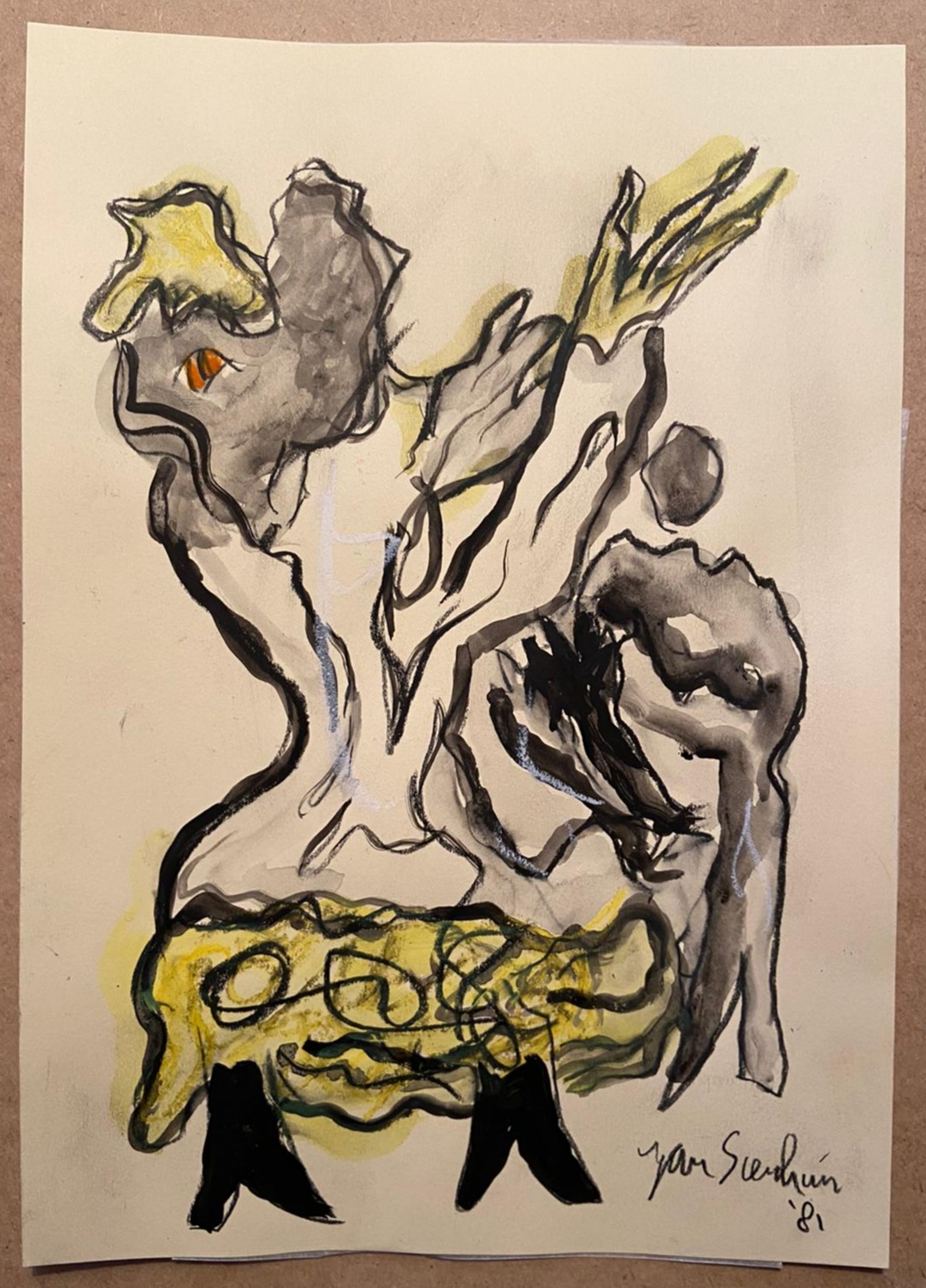 Jan Sierhuis tekening Techniek: Acryl /Krijt Afmetingen: 29.5x21cm Jaartal: 1981