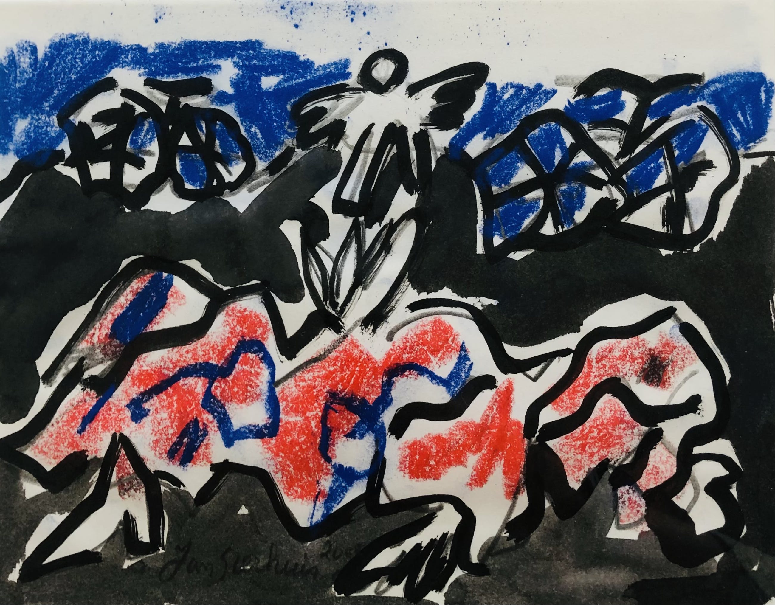 Mooie tekening van Jan Sierhuis met lijst. Een werk dat zo aan de muur kan worden gehangen! U kunt het werk vooraf komen bekijken in de Schatkamer van galerie Rotor in Gorcum, na aankoop afhalen of verzenden per koerier met lijst. De foto is door het glas van de lijst heen genomen. Pademietip: In overleg kunt u uw aankopen laten opslaan in onze verwarmde opslagruimte en ze in een later stadium ophalen.