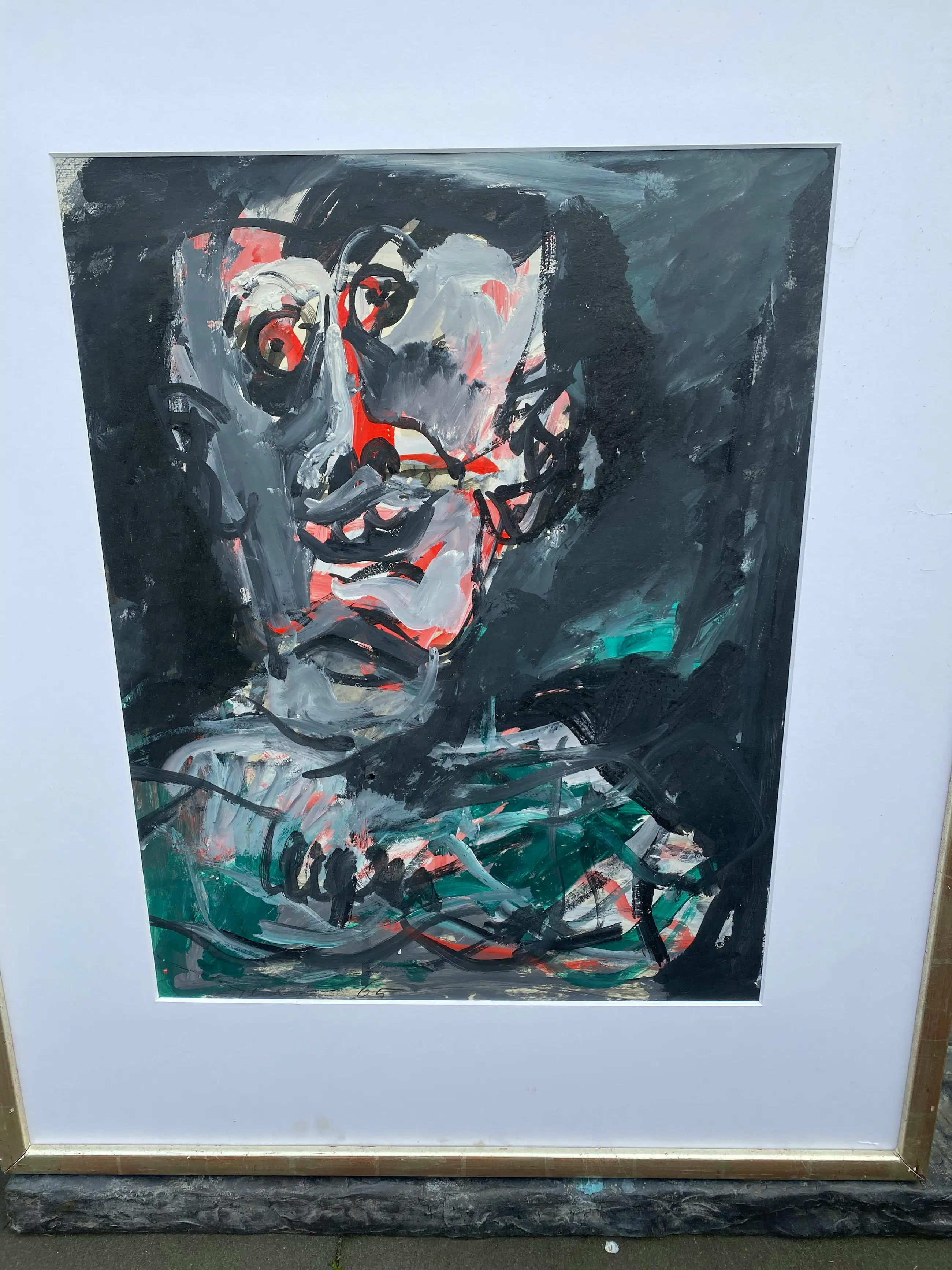 lijst + passepartoe 97 x cm zonder glas , lijst beschadigd 97 x 79 cm