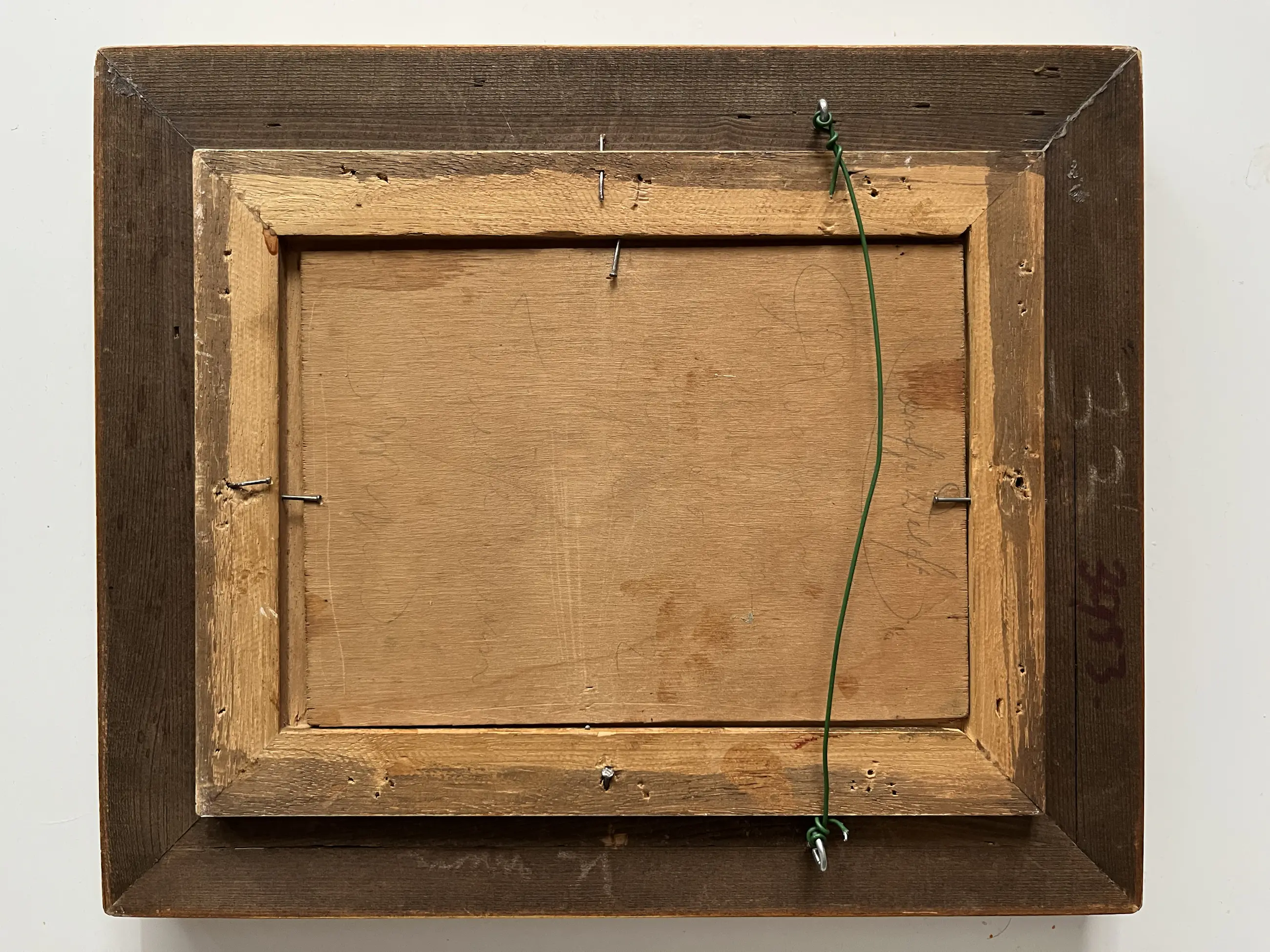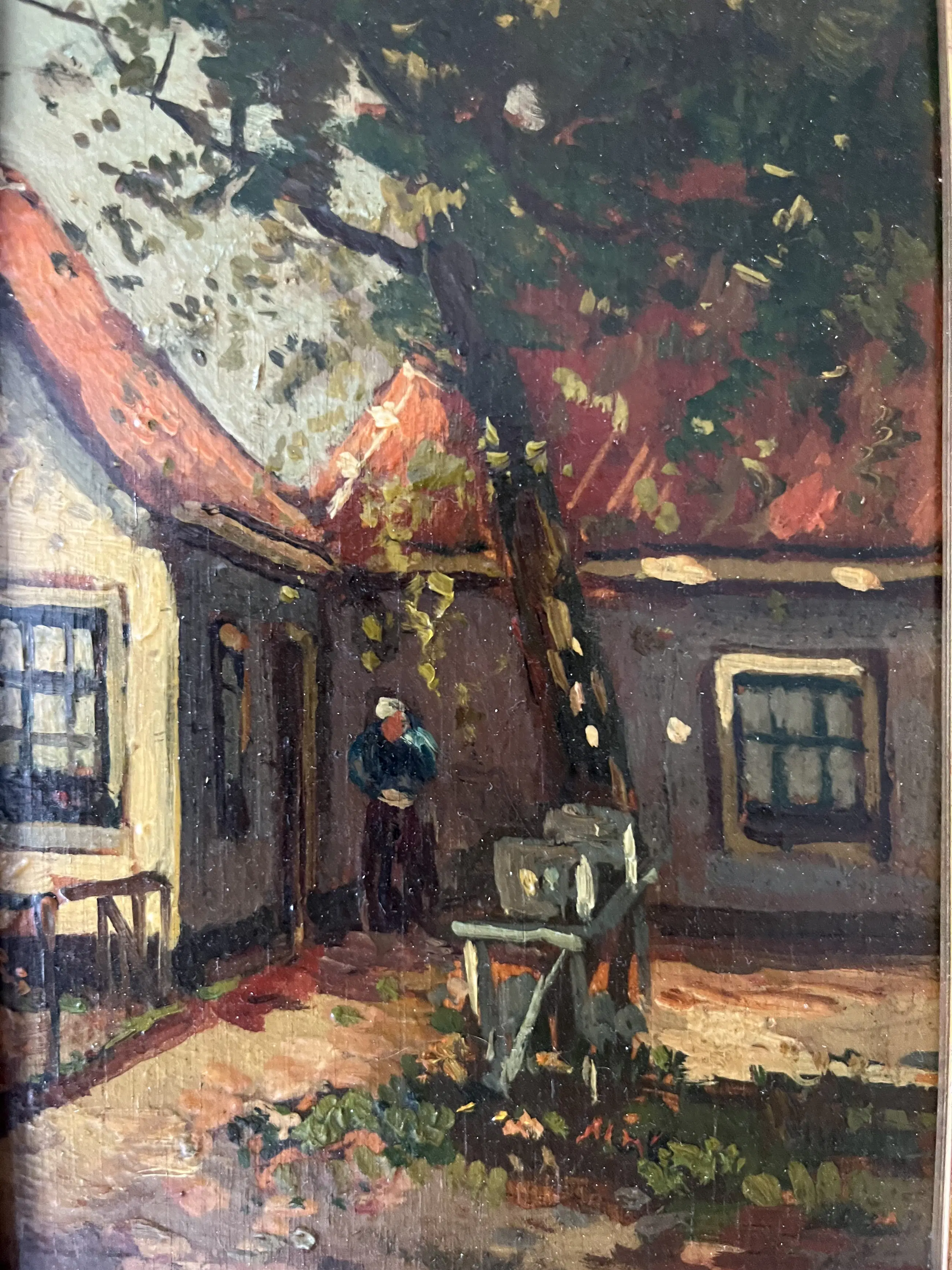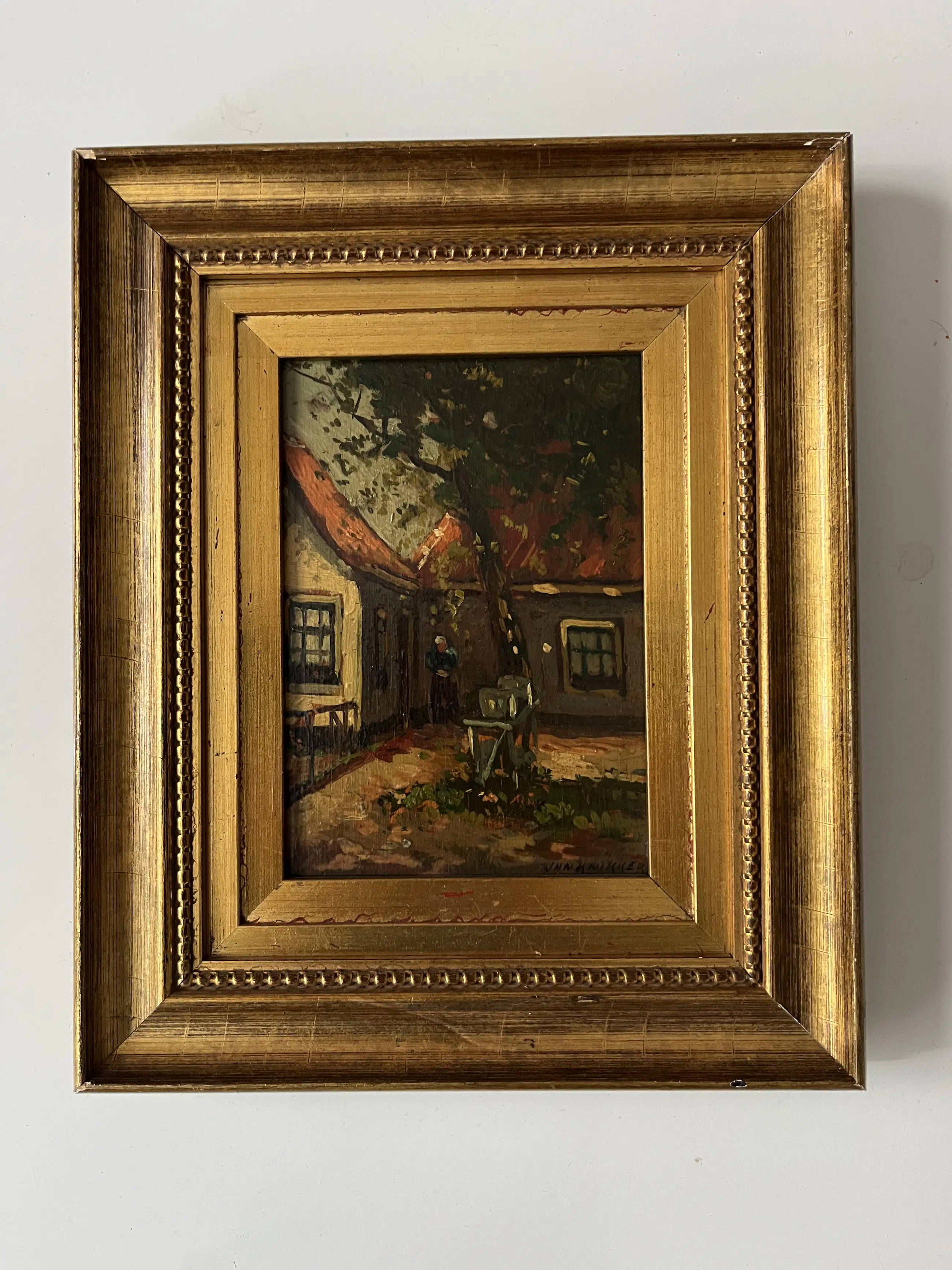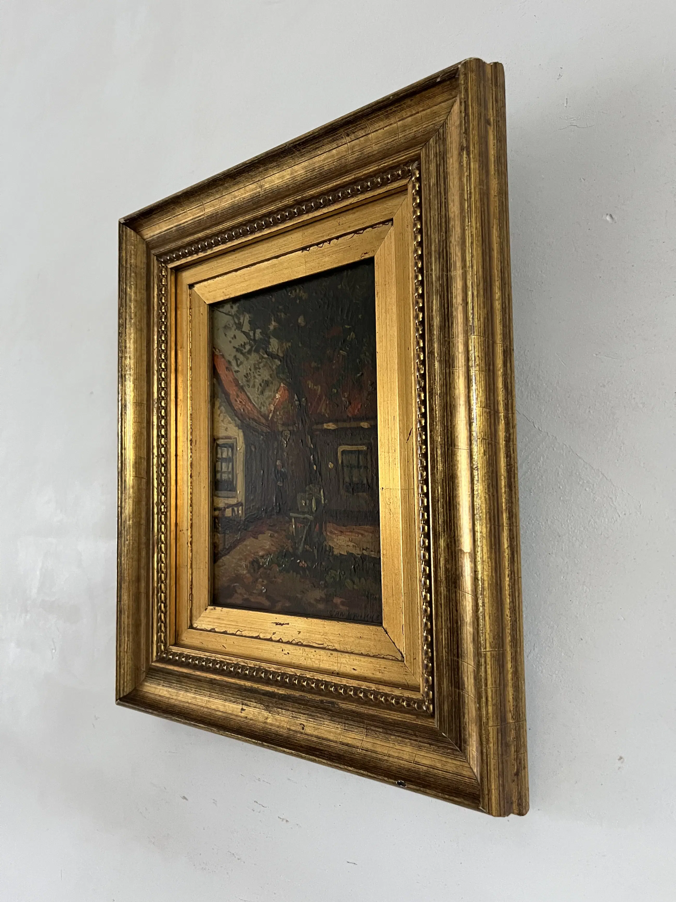 Klein paneeltje , hofje Delft. In klassieke lijst.