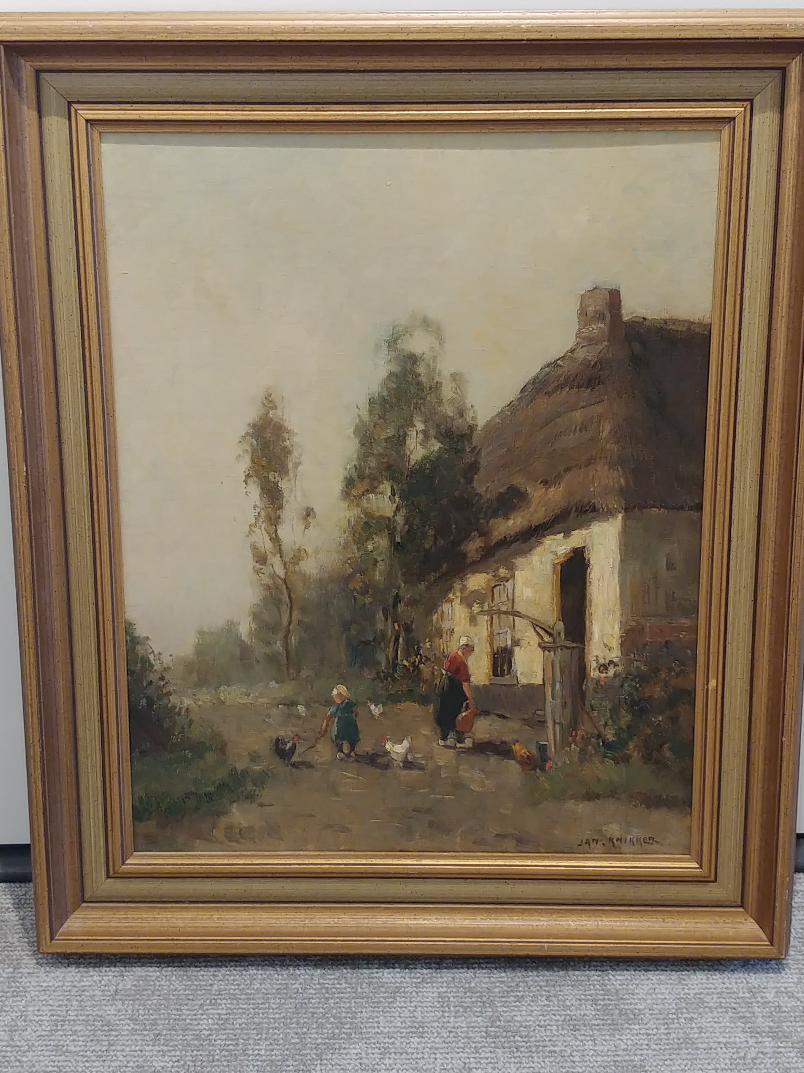 Achtergrond Jan KnikkerJan Knikker woonde en werkte in Hillegom, Leiden en vanaf 1914 in Den Haag. Hij heeft ook tijdelijk (1930-1931) in Wassenaar gewoond en daarna weer in Den Haag. Jan is autodidact en een landschapsschilder. Zijn werkzame periode was vanaf 1904 tot 1957. Hij kreeg les van zijn oudere broer Aris Knikker (1887-1962), want Aris was ook kunstschilder. Het werk van Jan is van Aris te onderscheiden, doordat hij een wat bredere en meer kleurrijke manier van schilderen had. Beide schilders hadden een hoge productiviteit.