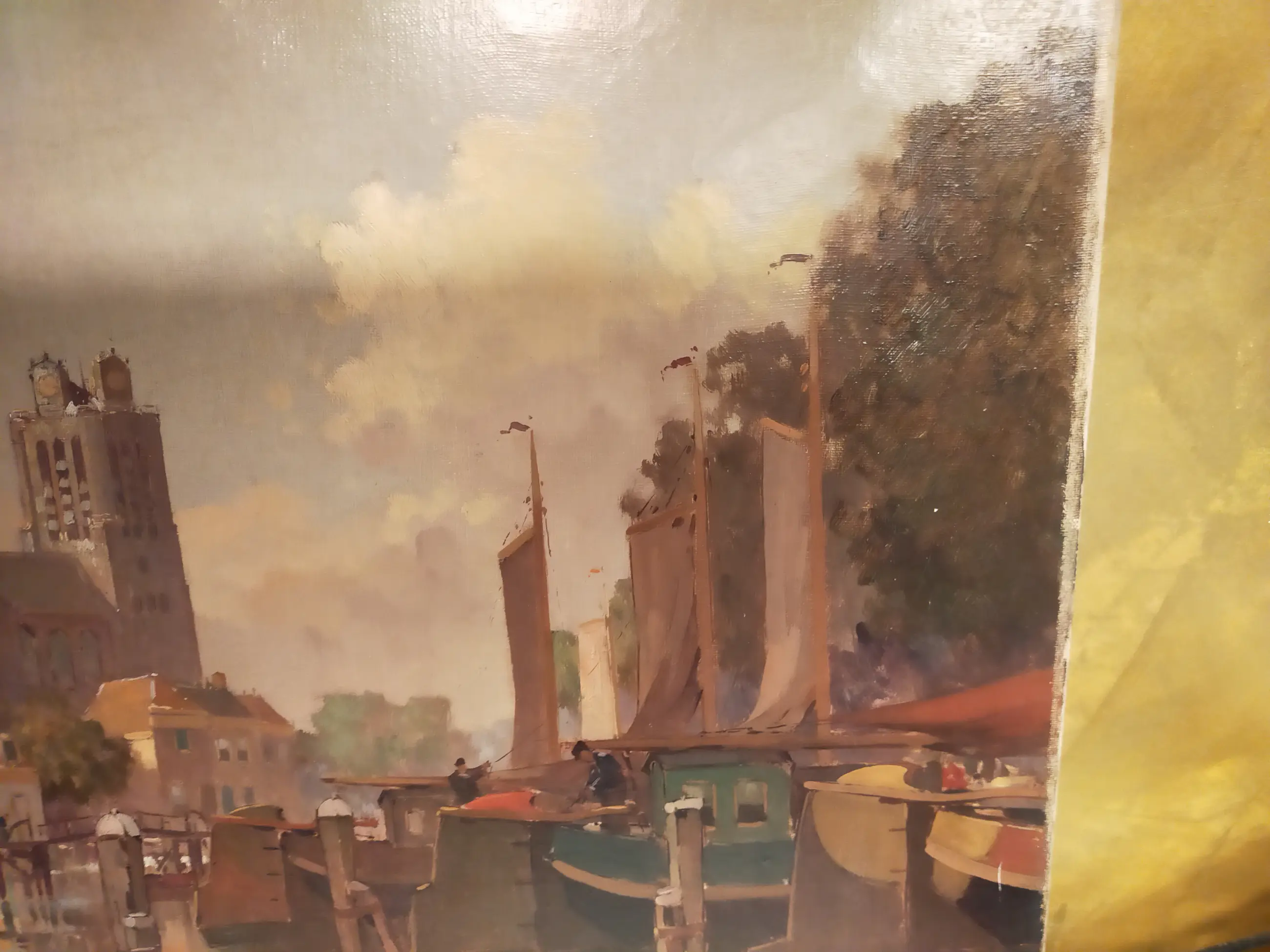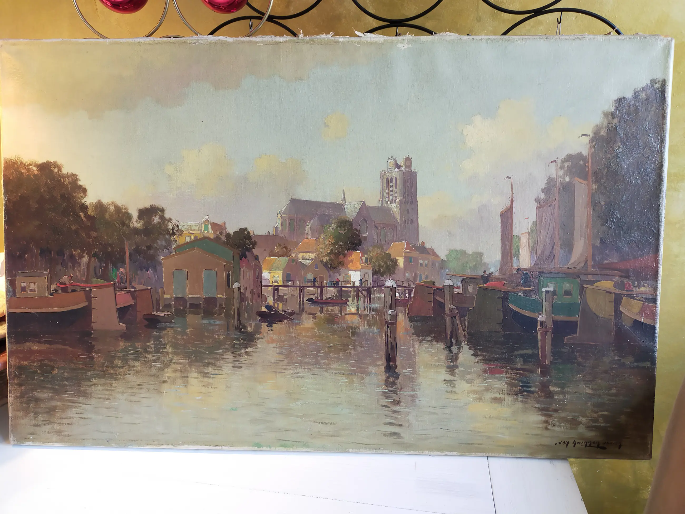 MOOI GEZICHT OP DORDRECHT DE GROTE KERK 50X80CM OLIEVERF OP DOEK GEEN LIJST AANWEZIG JAN SIMON KNIKKER