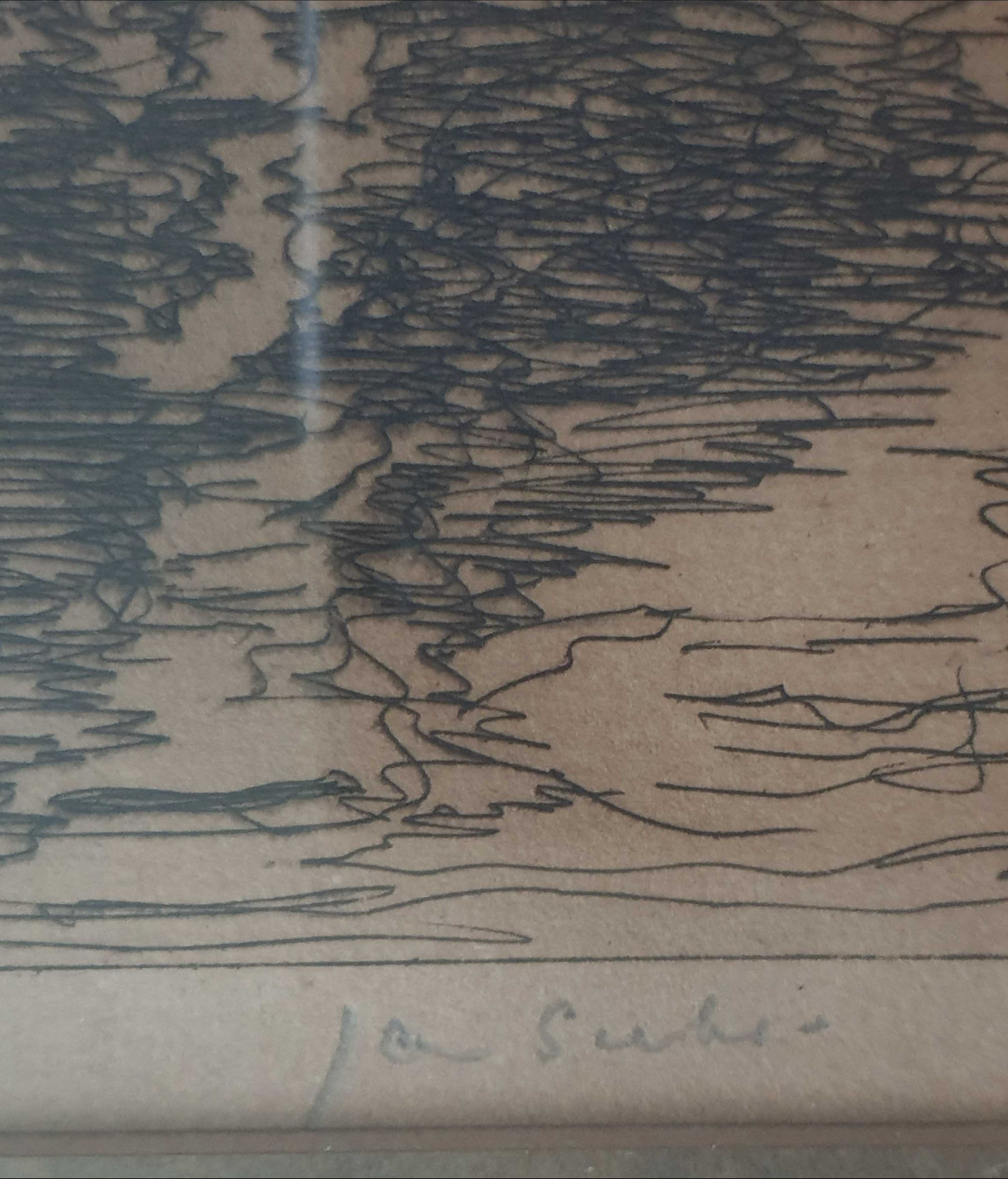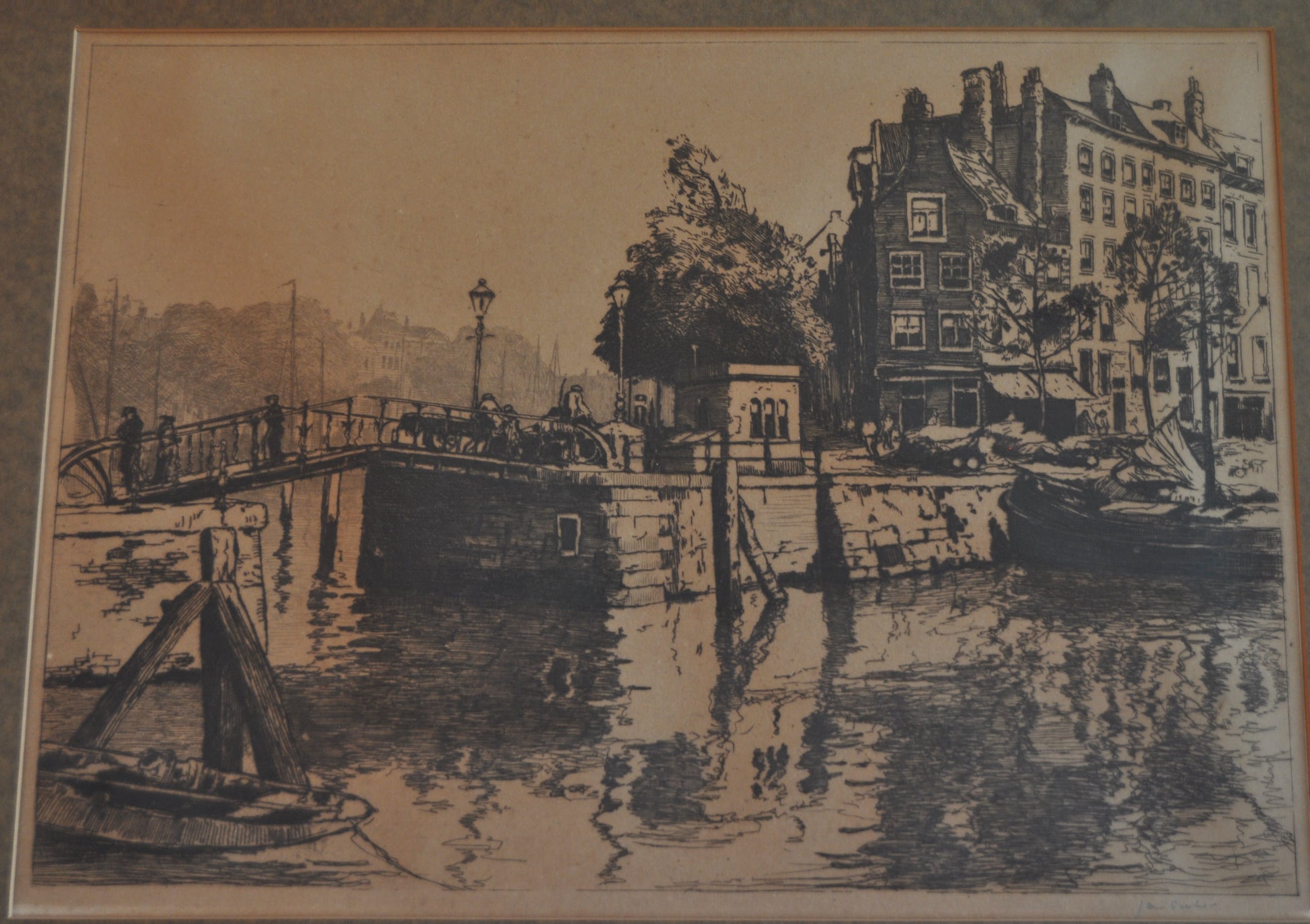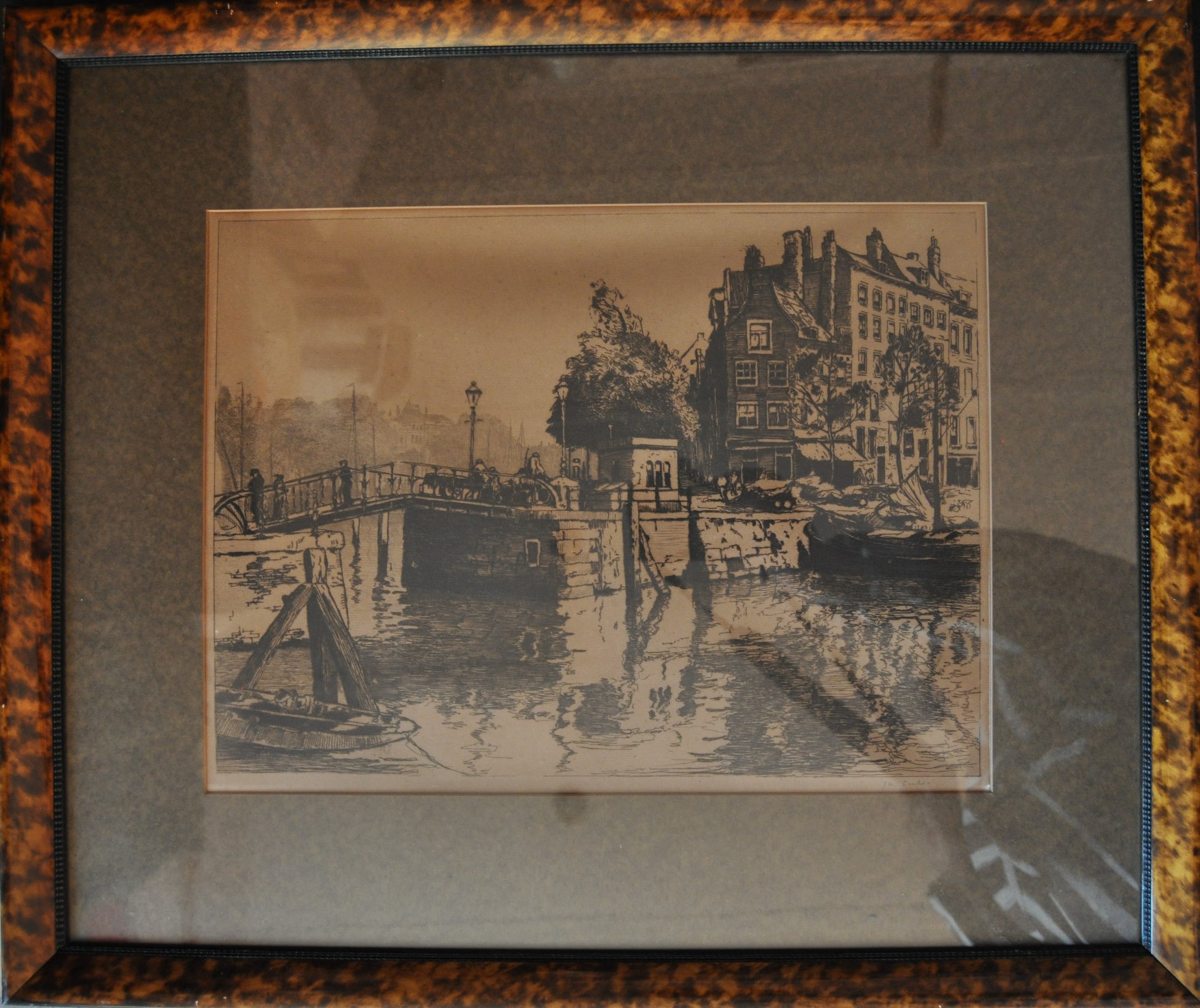 Het schilderij zit in een mooie bruine lijst met rechts gesigneerd.