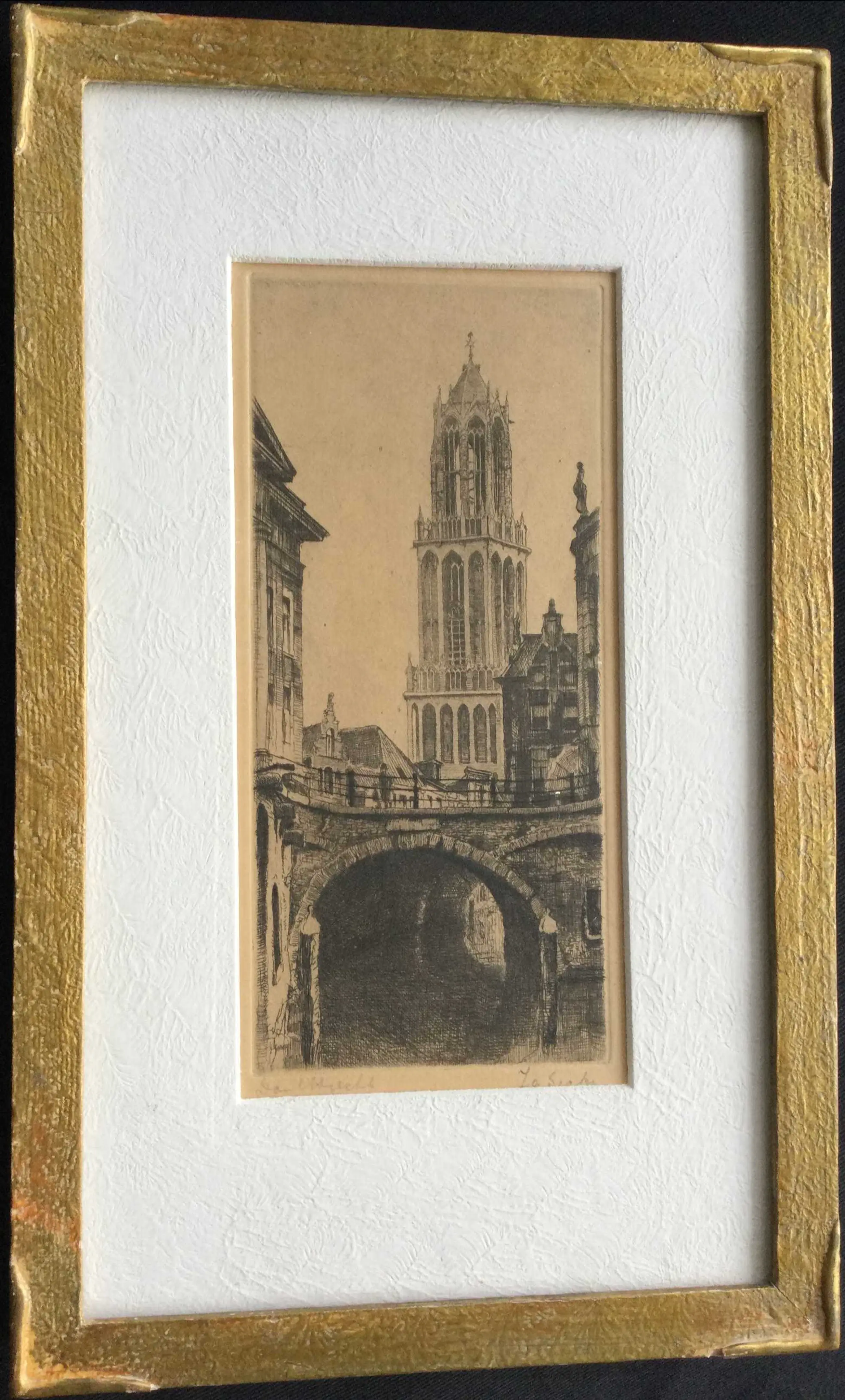 Fraai en professioneel ingelijst. Het reliëfrijke witte passe-partout en de bewerkte goudkleurige lijst maken het geheel "af".
