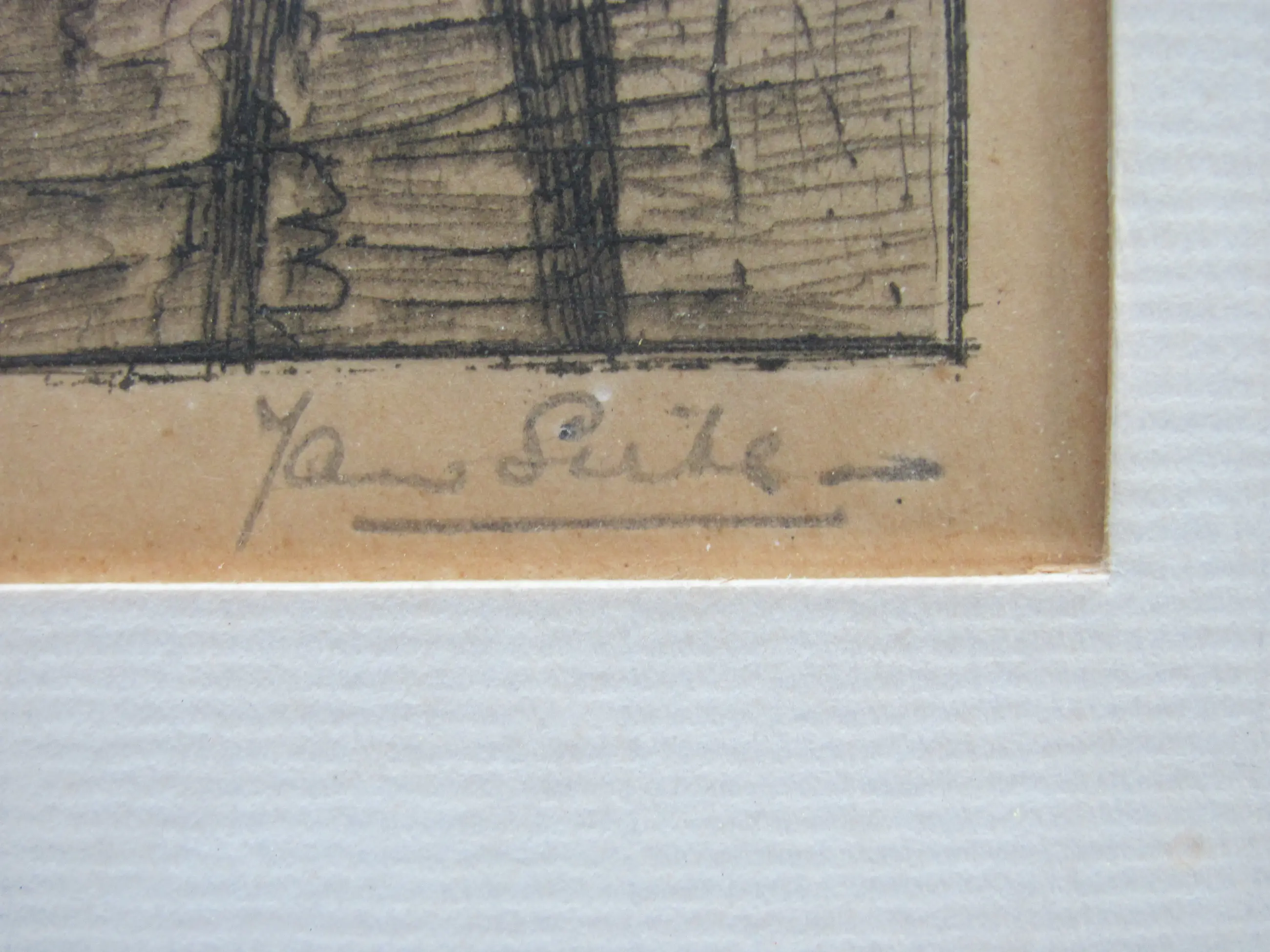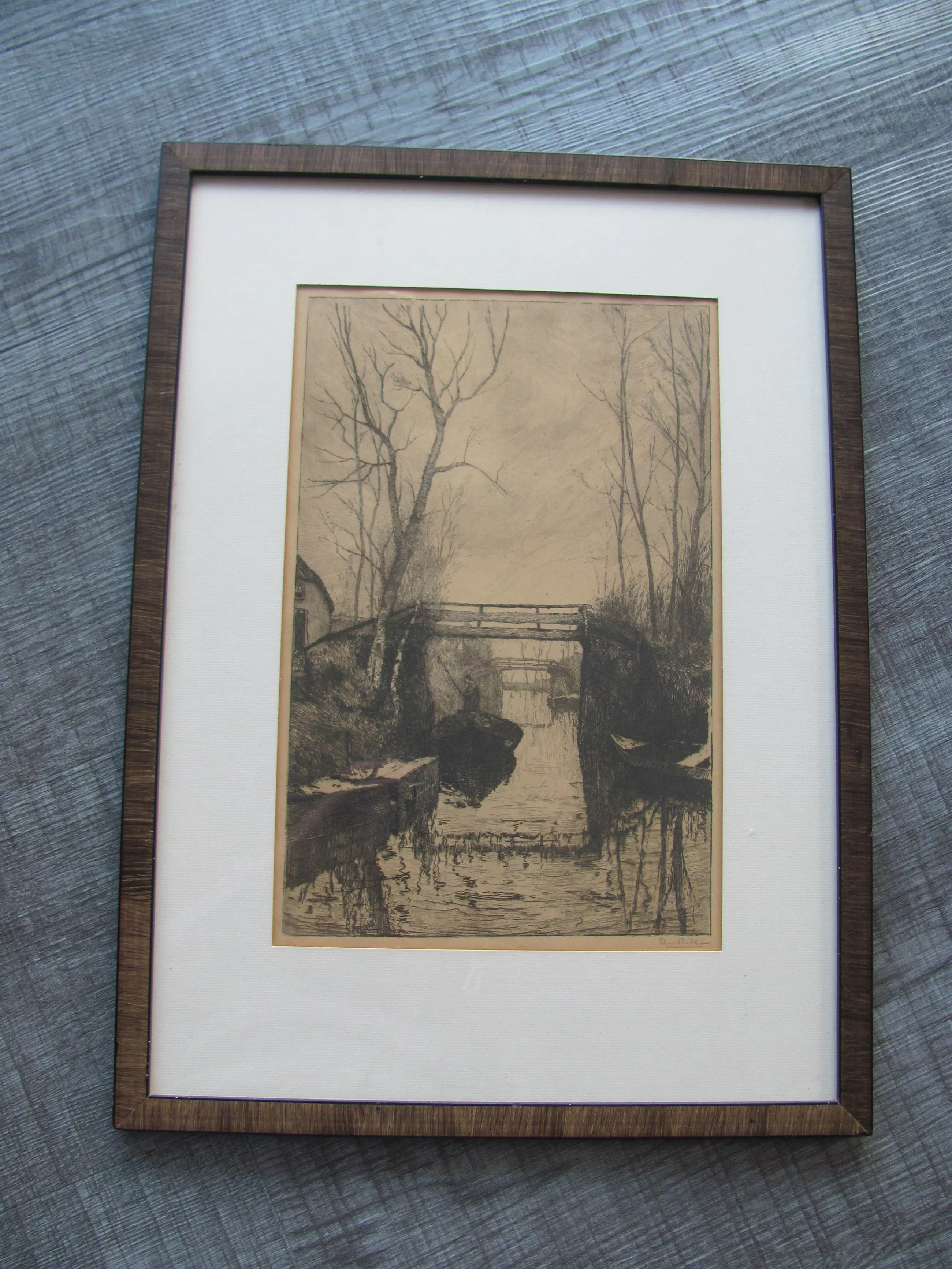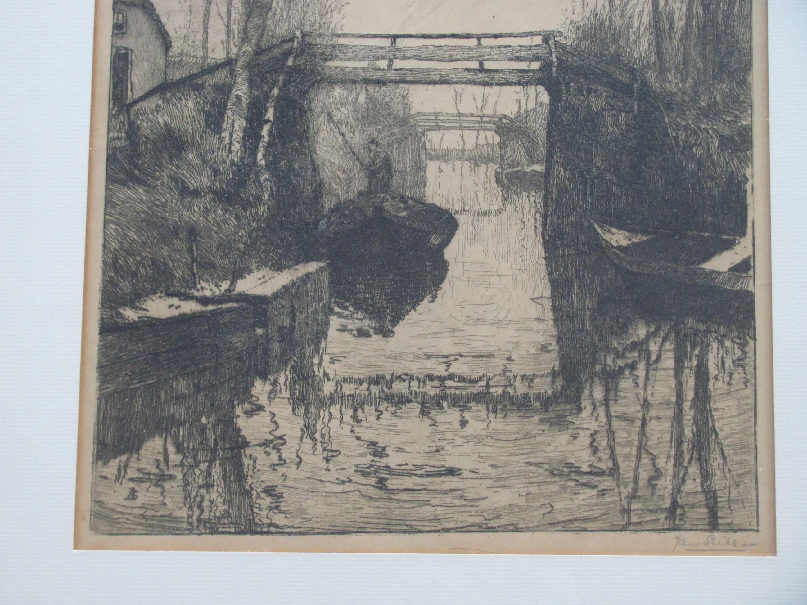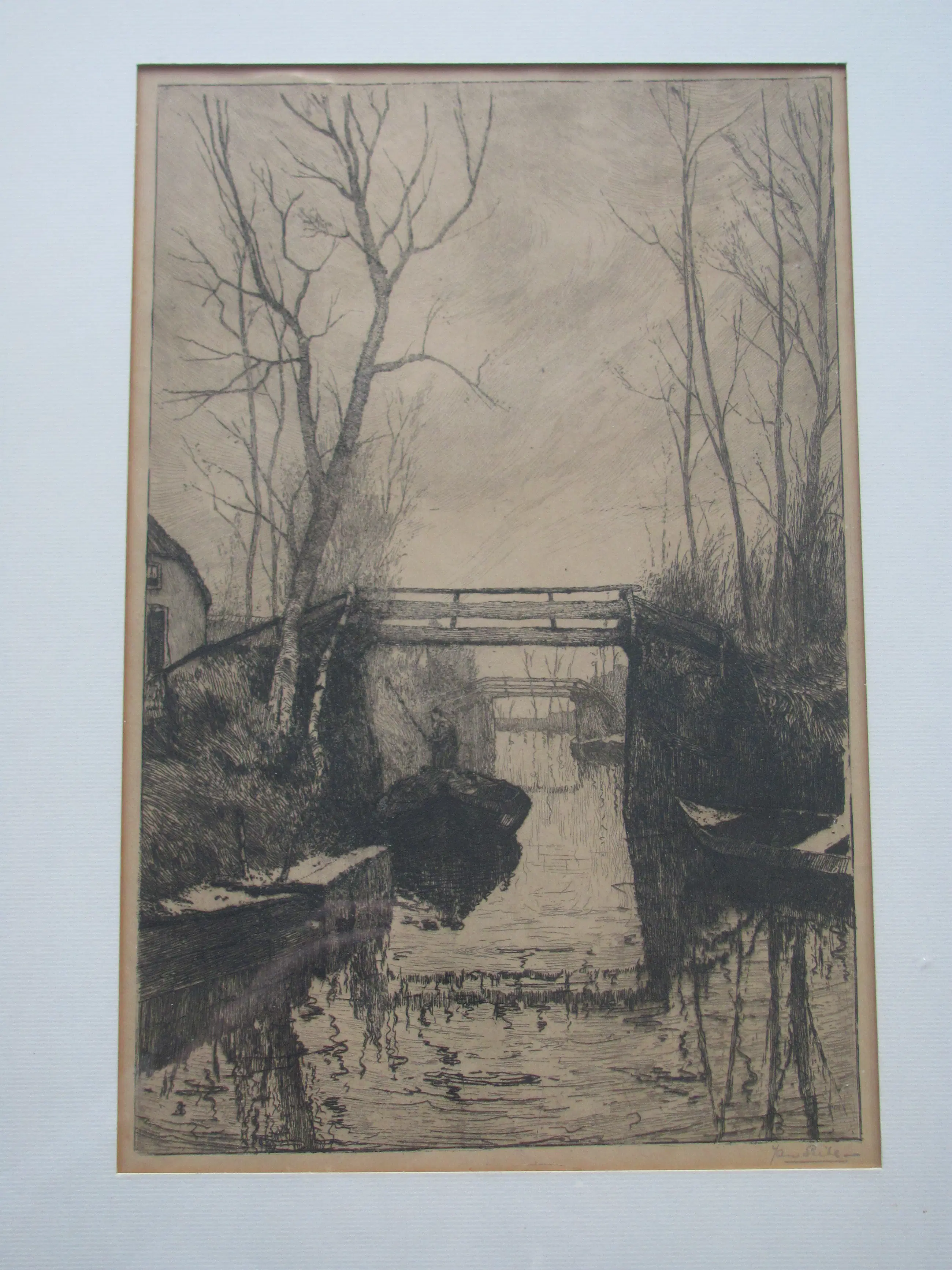 Mooie ets van Jan Sirks. In goede staat. In de loop der jaren is het papier licht gebruind.