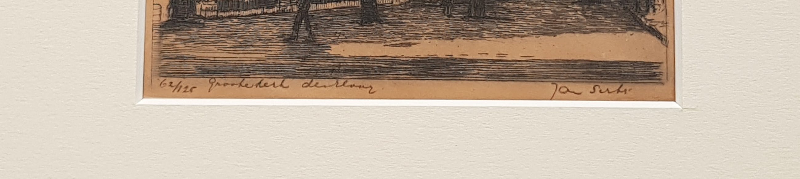 Dit charmante etsje van Jan Sirks is onderdeel van de privé collectie <Rijnmond Toen> onder nr. 056-JS-097-ZS