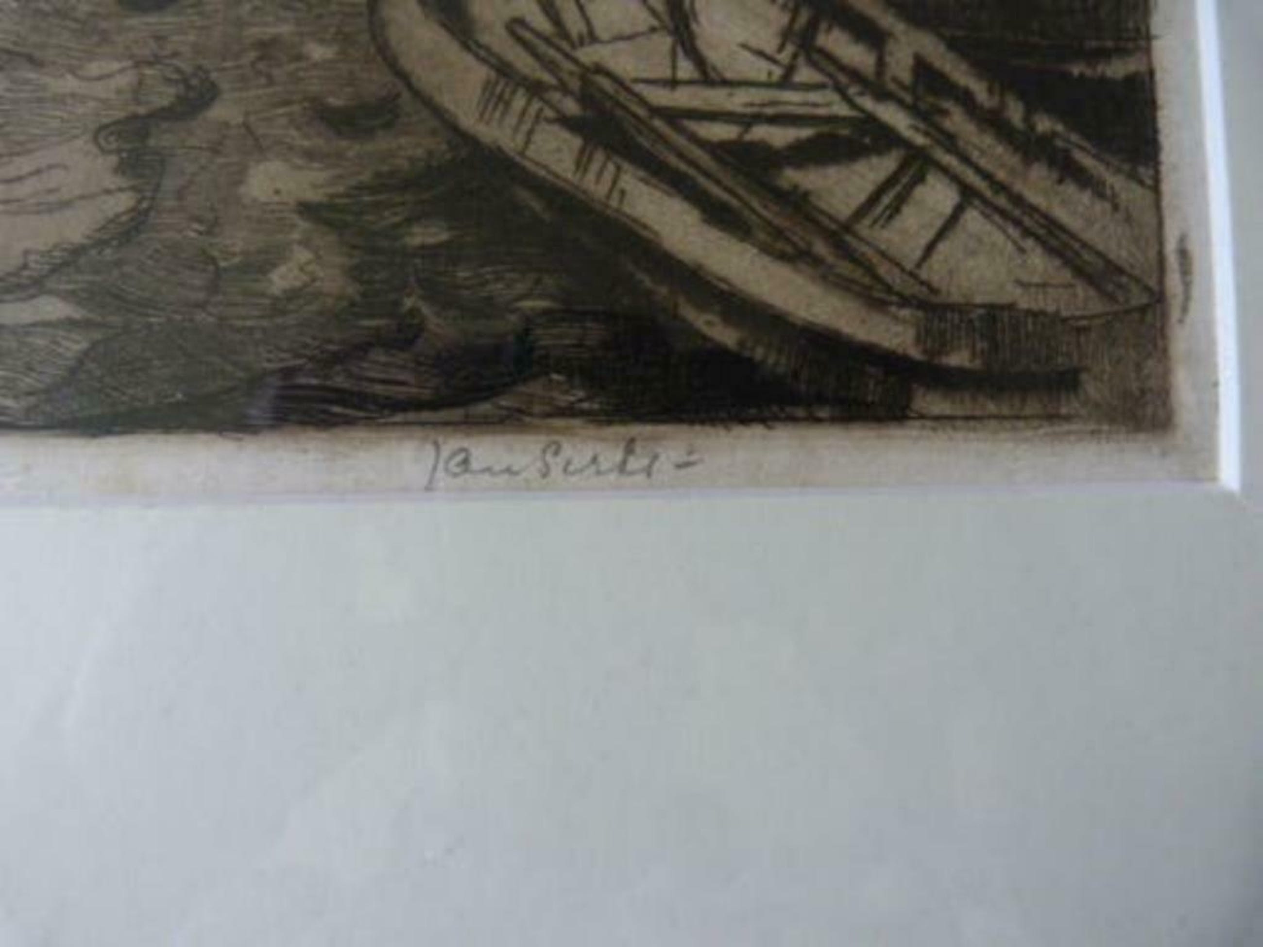 Ets is rechtsonder door de kunstenaar met de hand met potlood gesigneerd.