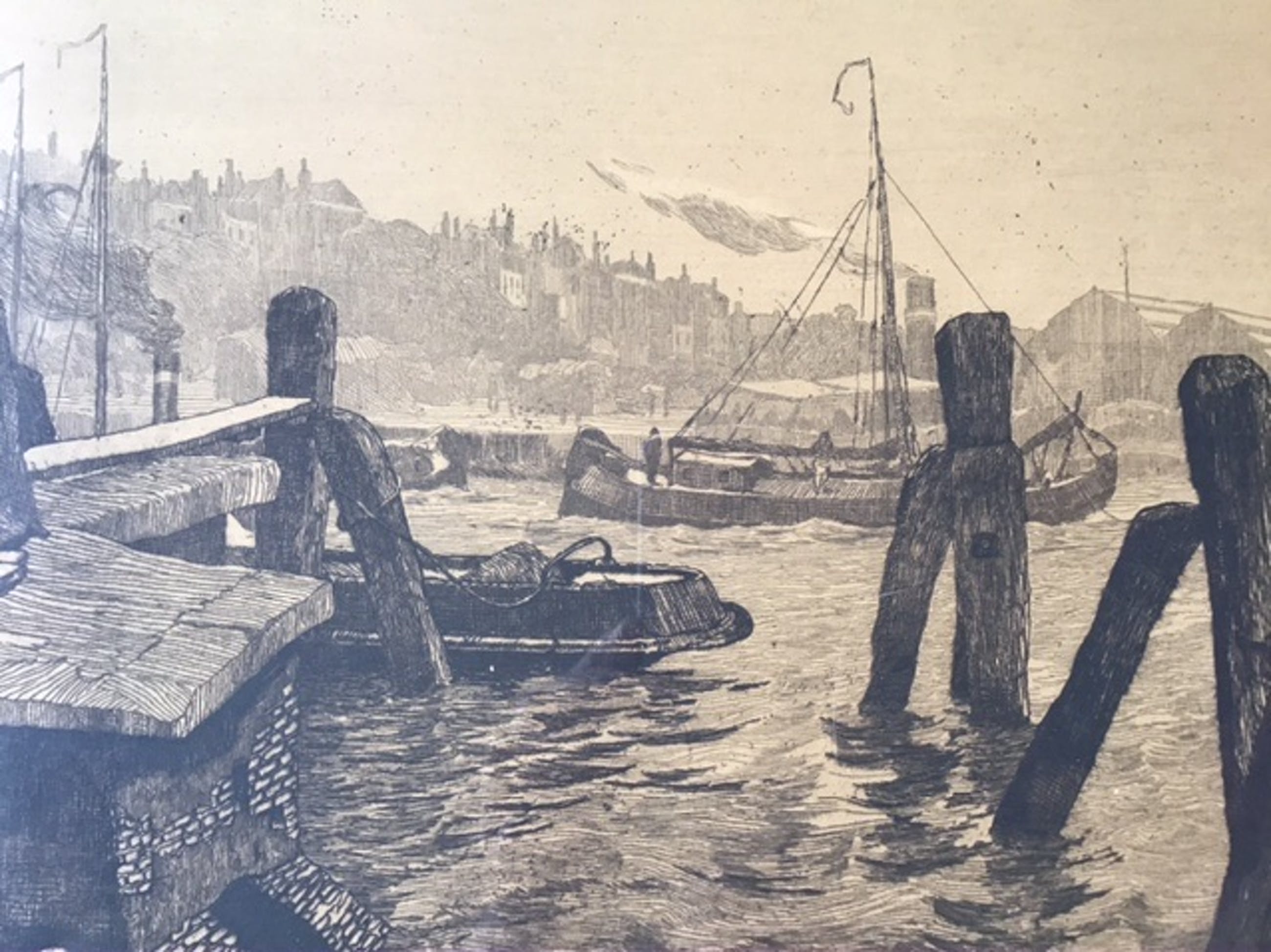 Mooie ets, die prachtig de historie van de Rotterdamse haven weergeeft.