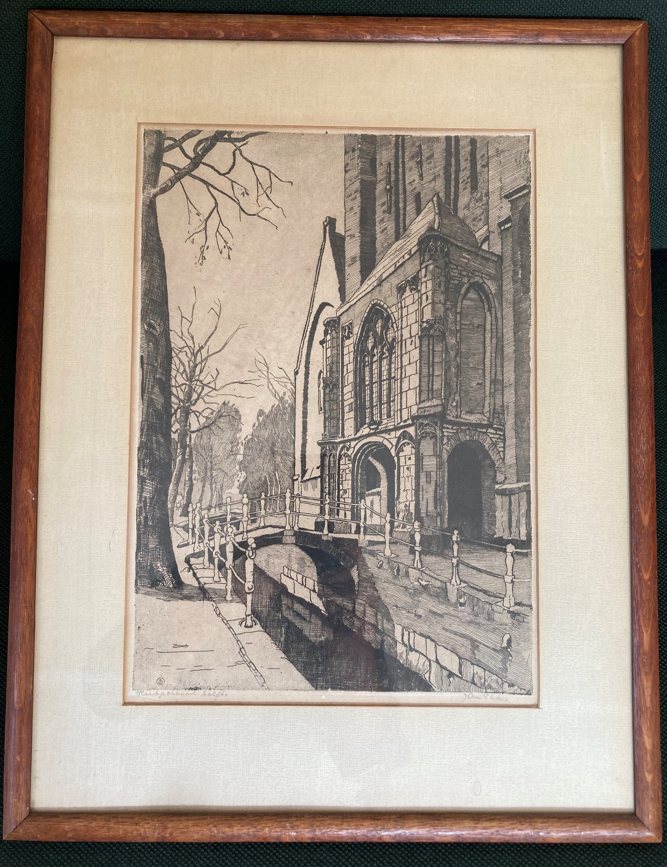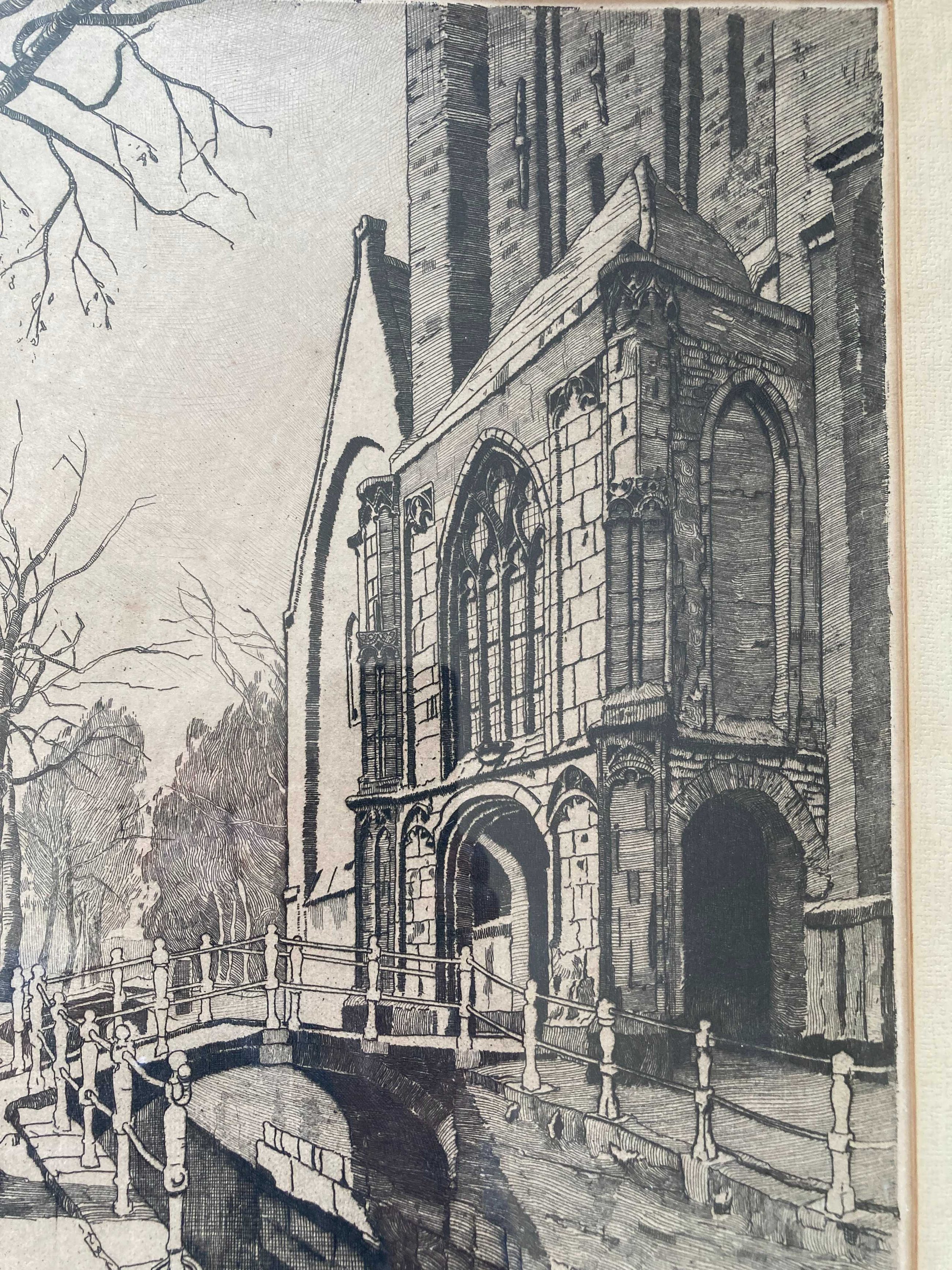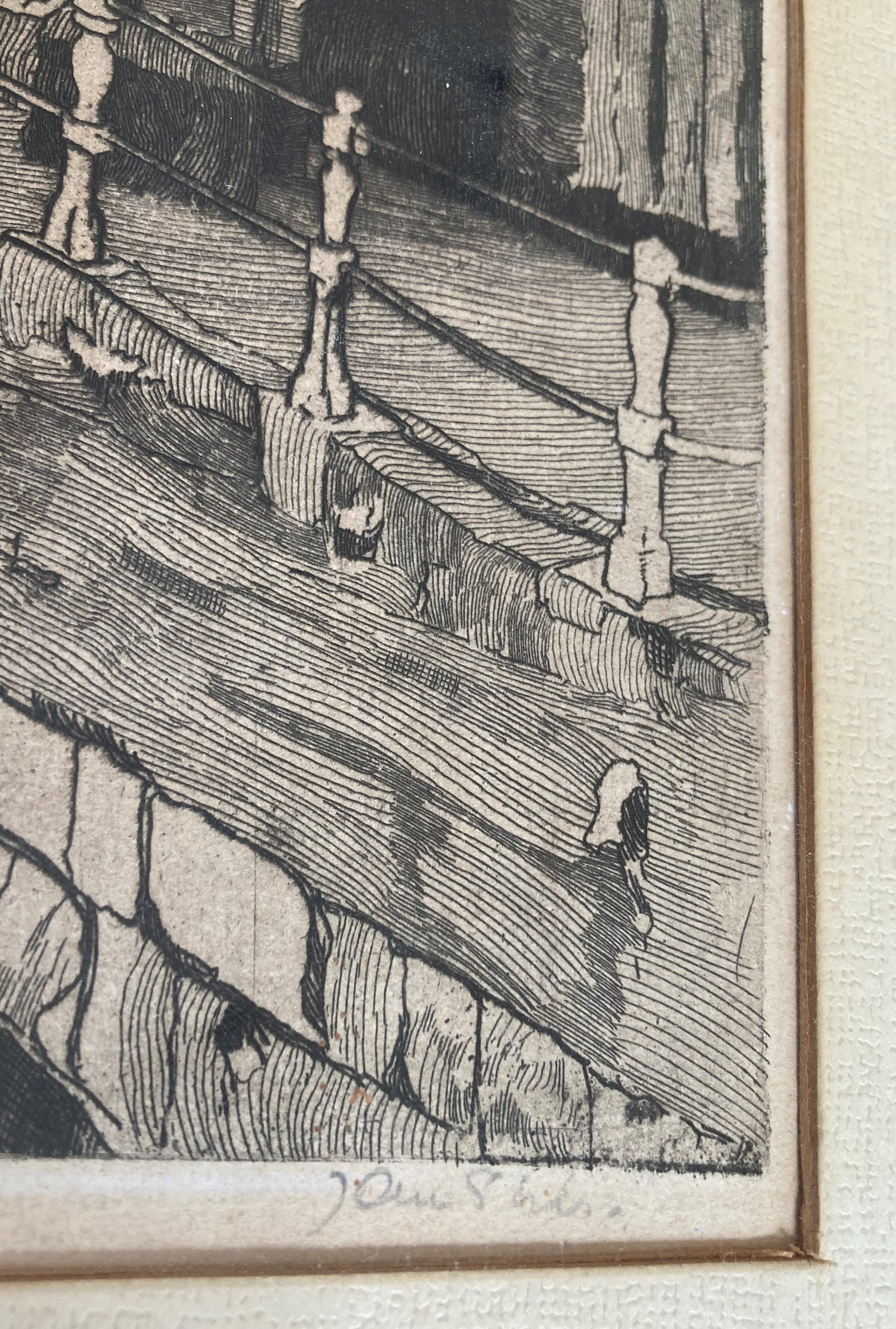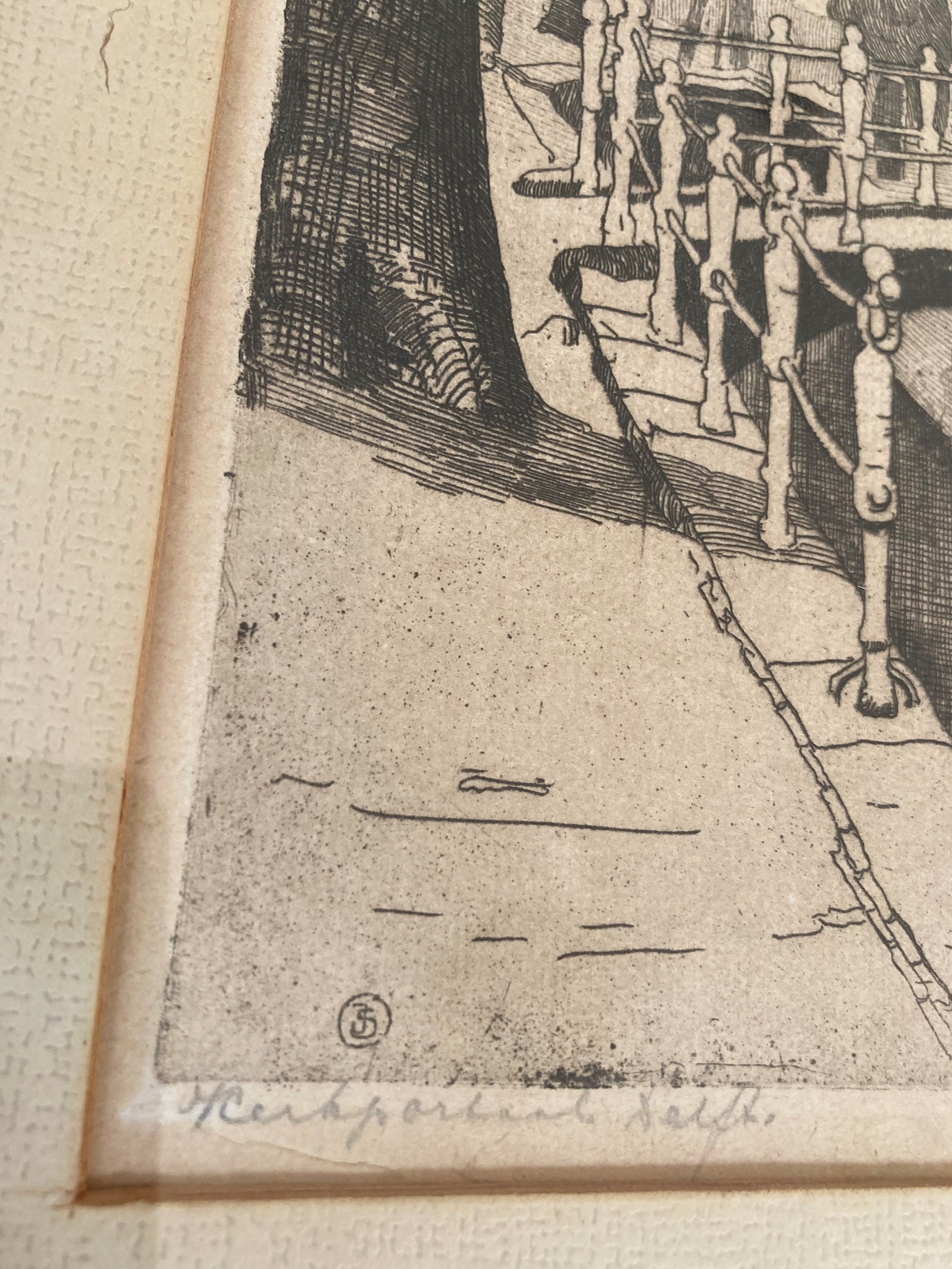 Antieke ets uit de jaren 1910-1930 van de bekende kunstenaar Jan Sirks. (Rotterdam, 23 februari 1885 – Zeist, 11 maart 1938).