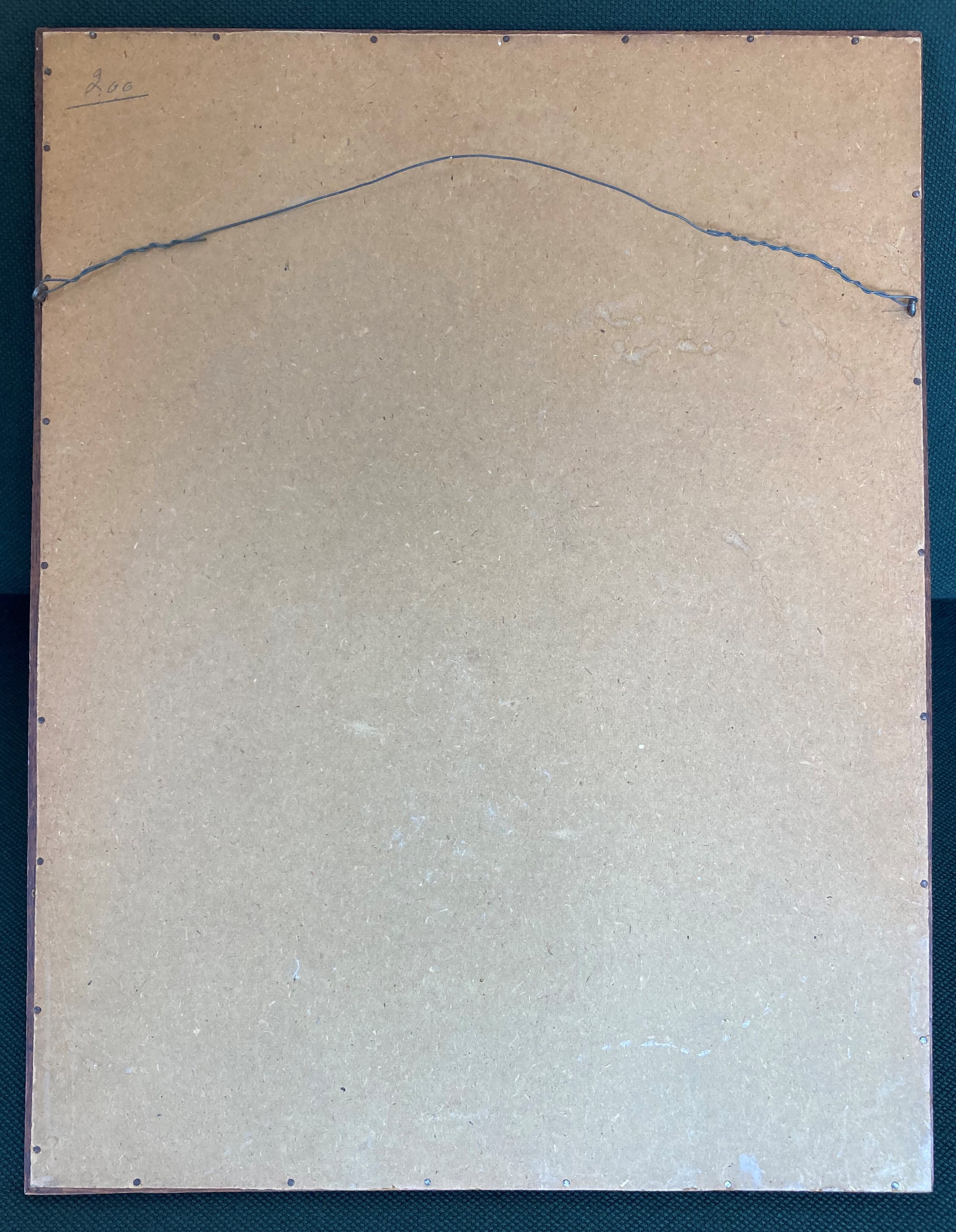 Het werk is ingelijst met passe-partout in de authentieke eiken lijst met fraai