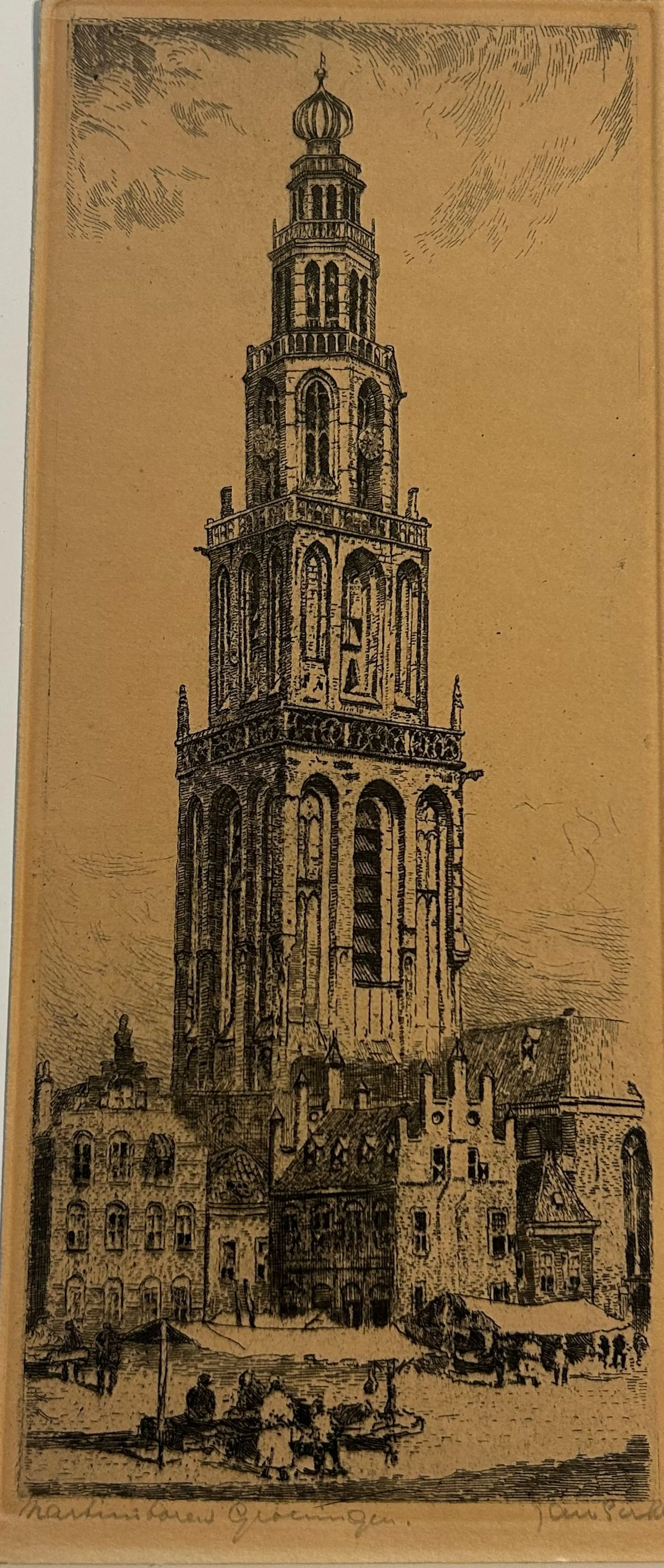 Ets van Jan Sirks – Martinitoren, Groningen Mooie ets met een voorstelling van de Martinitoren in Groningen. Het werk verkeert in goede staat en heeft een verzorgde uitstraling. Wordt aangeboden zonder lijst of passe-partout. Zie foto’s voor verdere details en een goede indruk van het geheel.