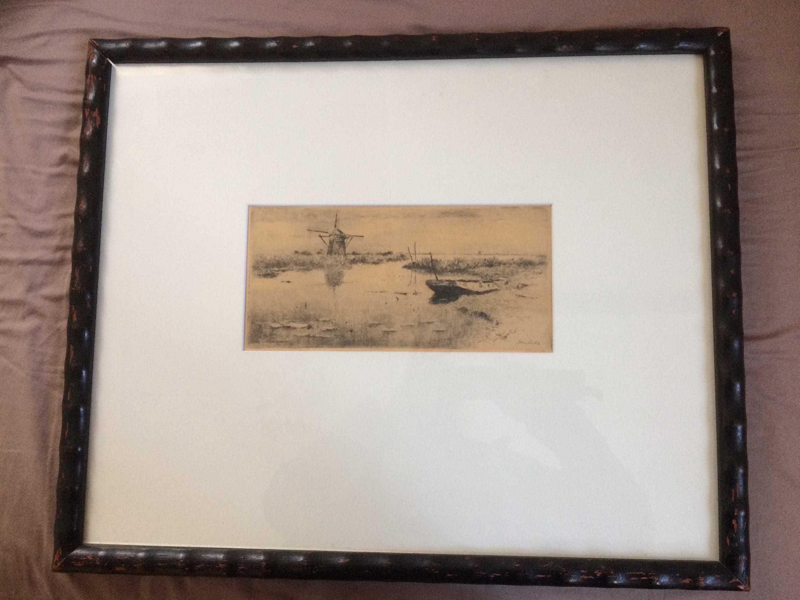 Deze prachtige ets uit de jaren 1910/1920 van de bekende graficus Jan Sirks behoort tot zijn grafische hoogstandjes. Het werk is rechtsonder voluit gesigneerd. Het werk is opnieuw ingelijst in de originele lijst in nieuw passe-partout.De plaat zelf meet 29 x 13,5 cm;Inclusief lijst zijn de maten: 62 x 52 cm. Verzending per PostNL ( k.k.) Ophalen op afspraak in Rotterdam. LET OP !!! LOOPT OVER TWEE DAGEN AF !!!
