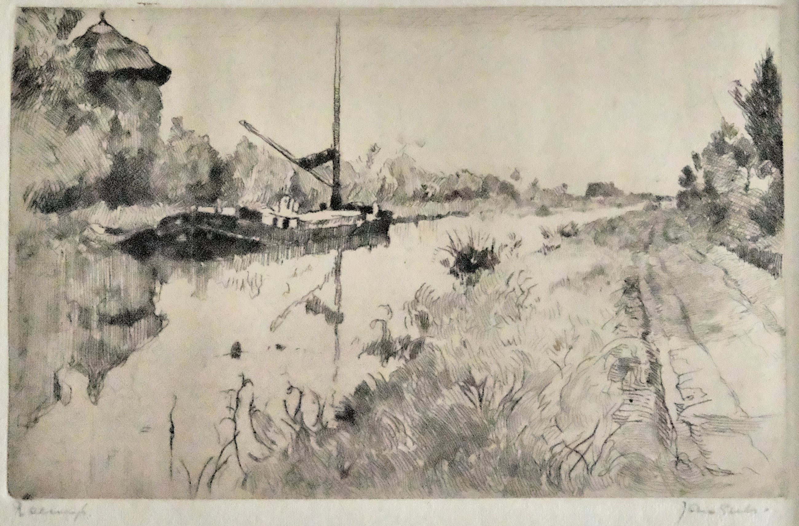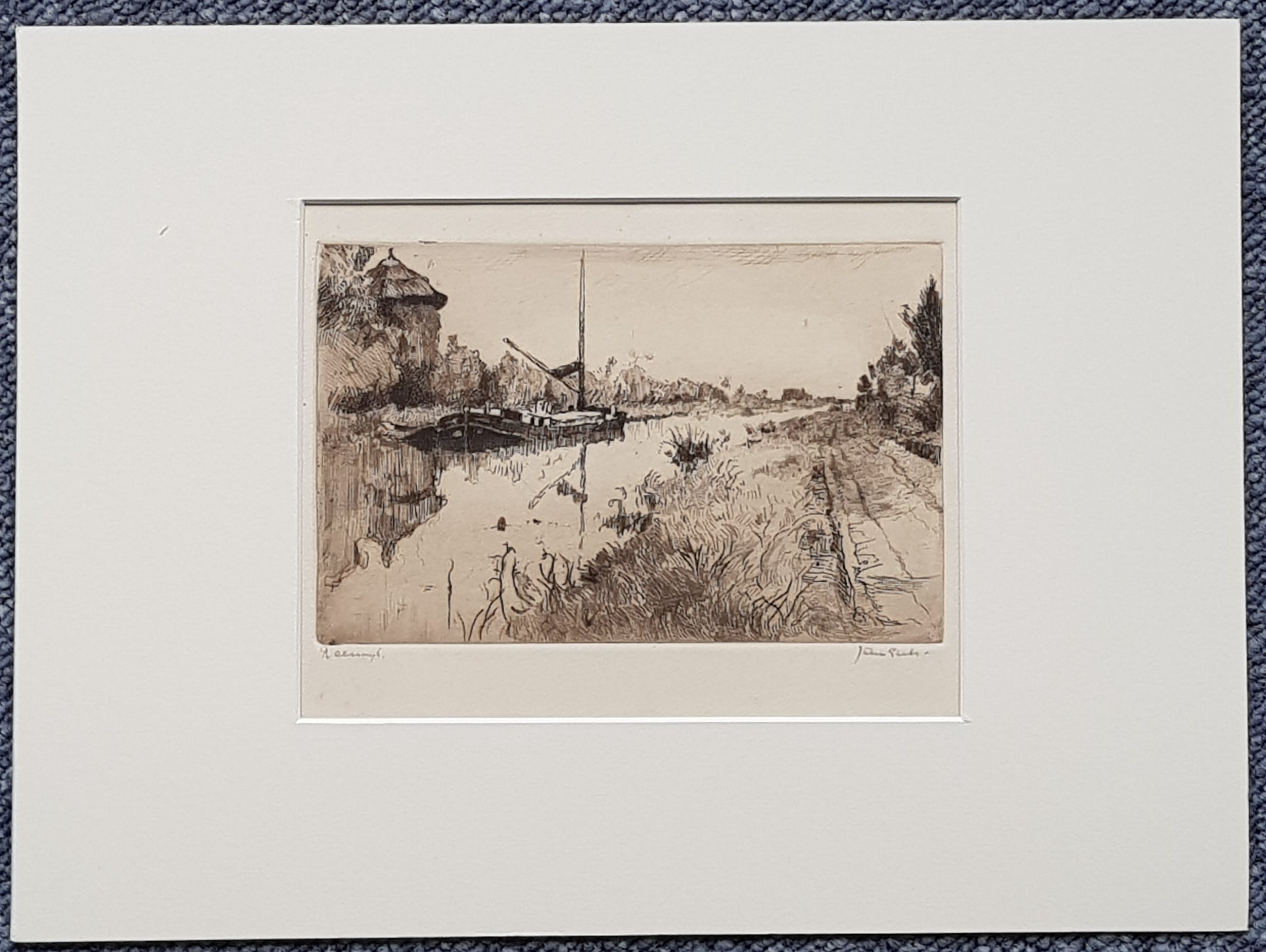 De ets is in zeer goede staat, onbeschadigd en zuurvrij, gemonteerd in een nieuw zuurvrij Artique passe-partout.