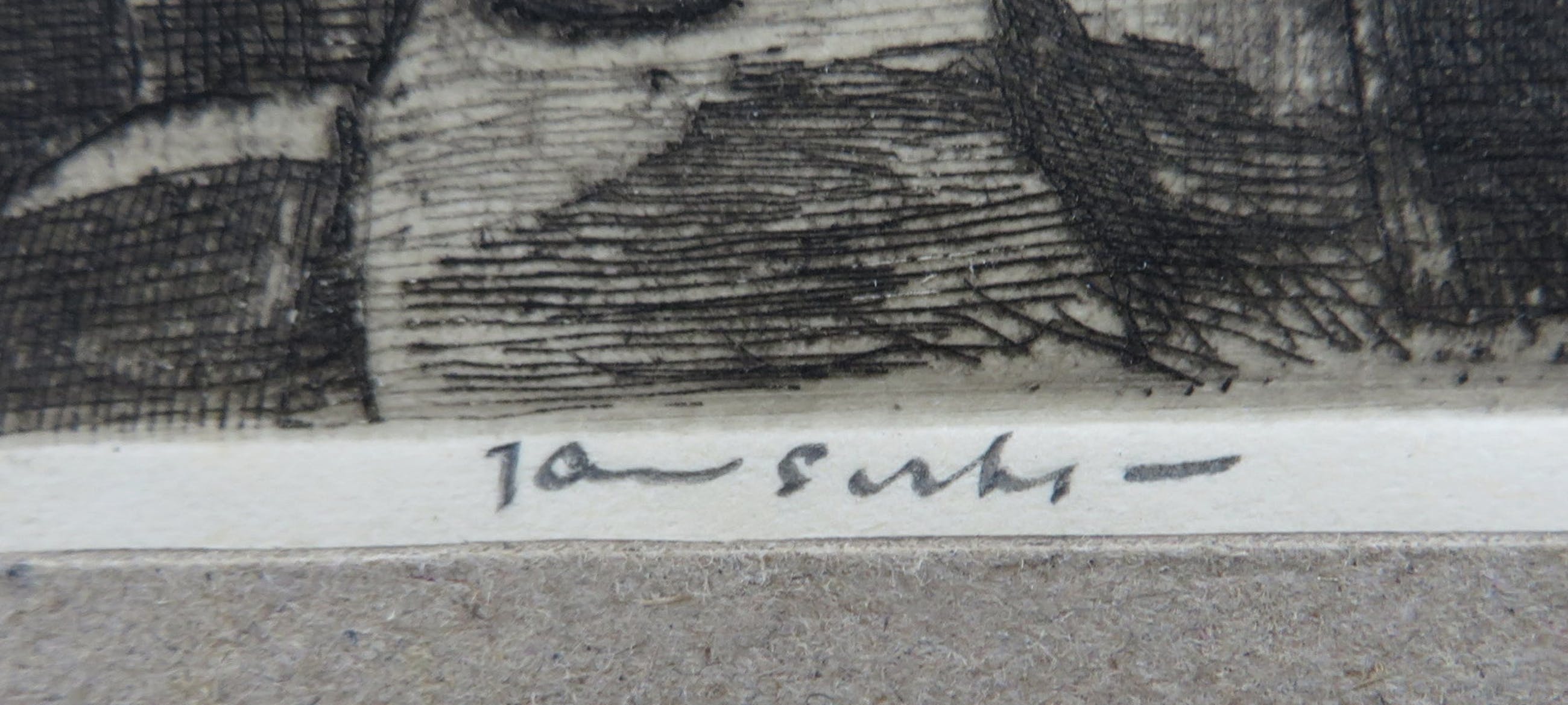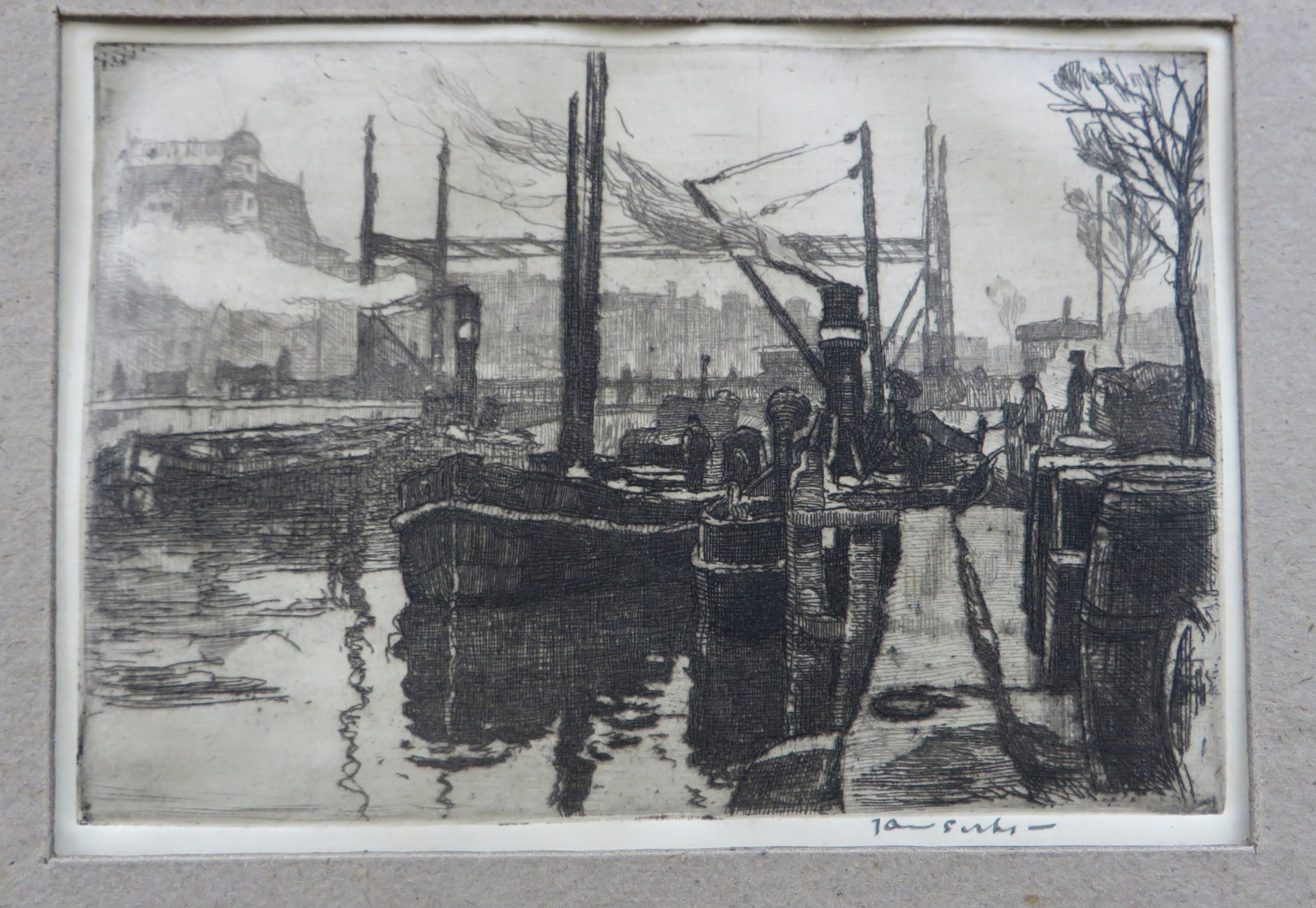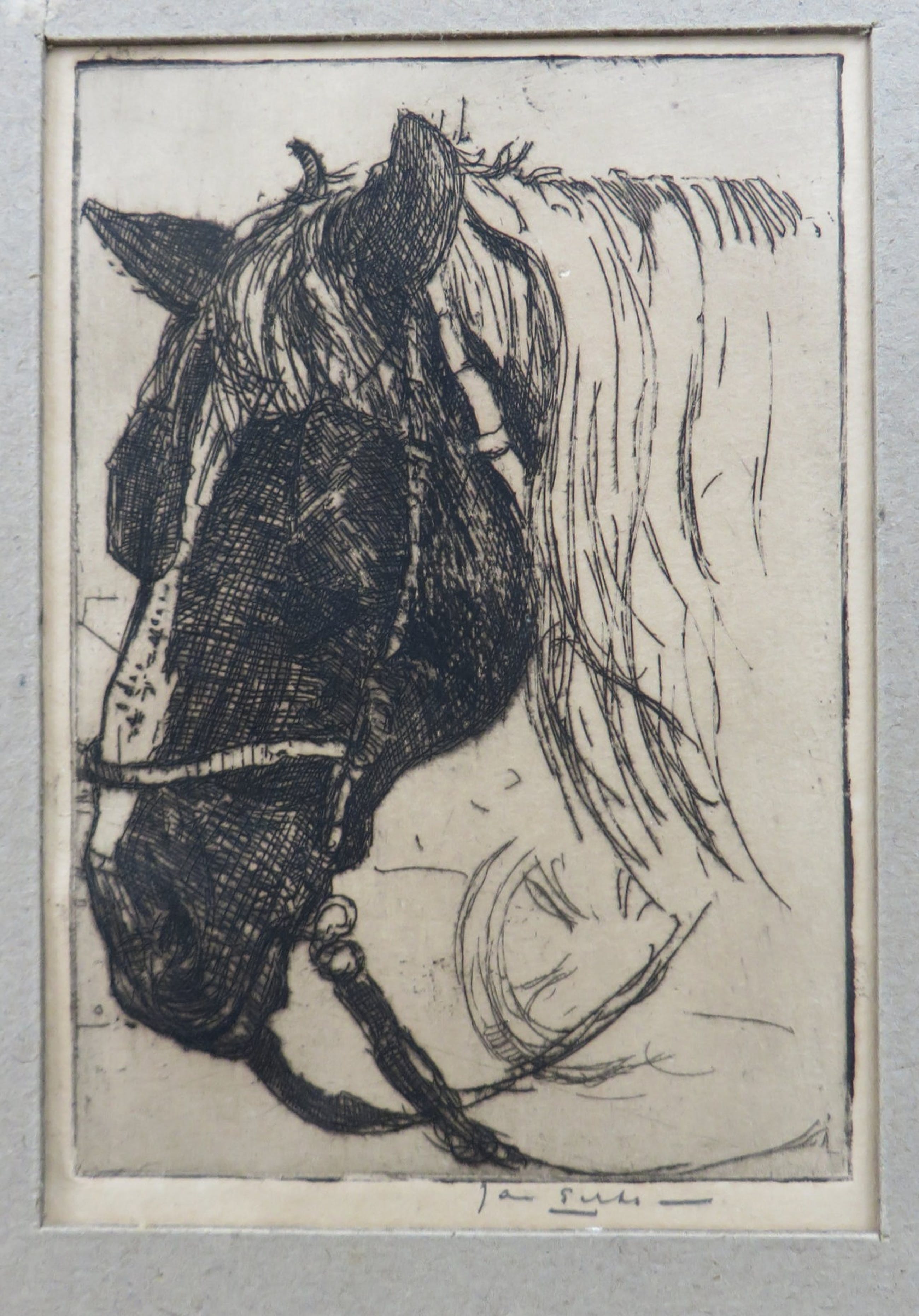 Ets Paardenhoofd: afmetingen:11x15,5.Afmetingen Havengezicht:15 x 11cmBeide etsen zijn gesigneerd met potlood.