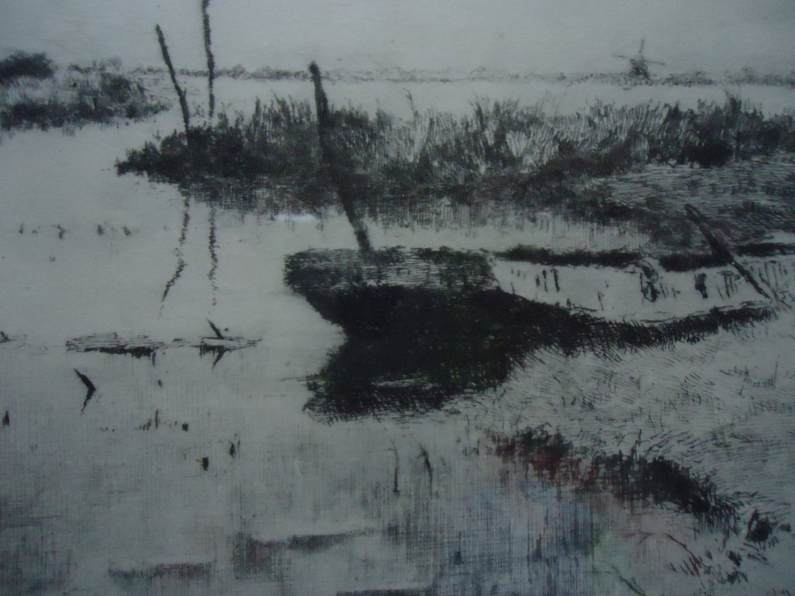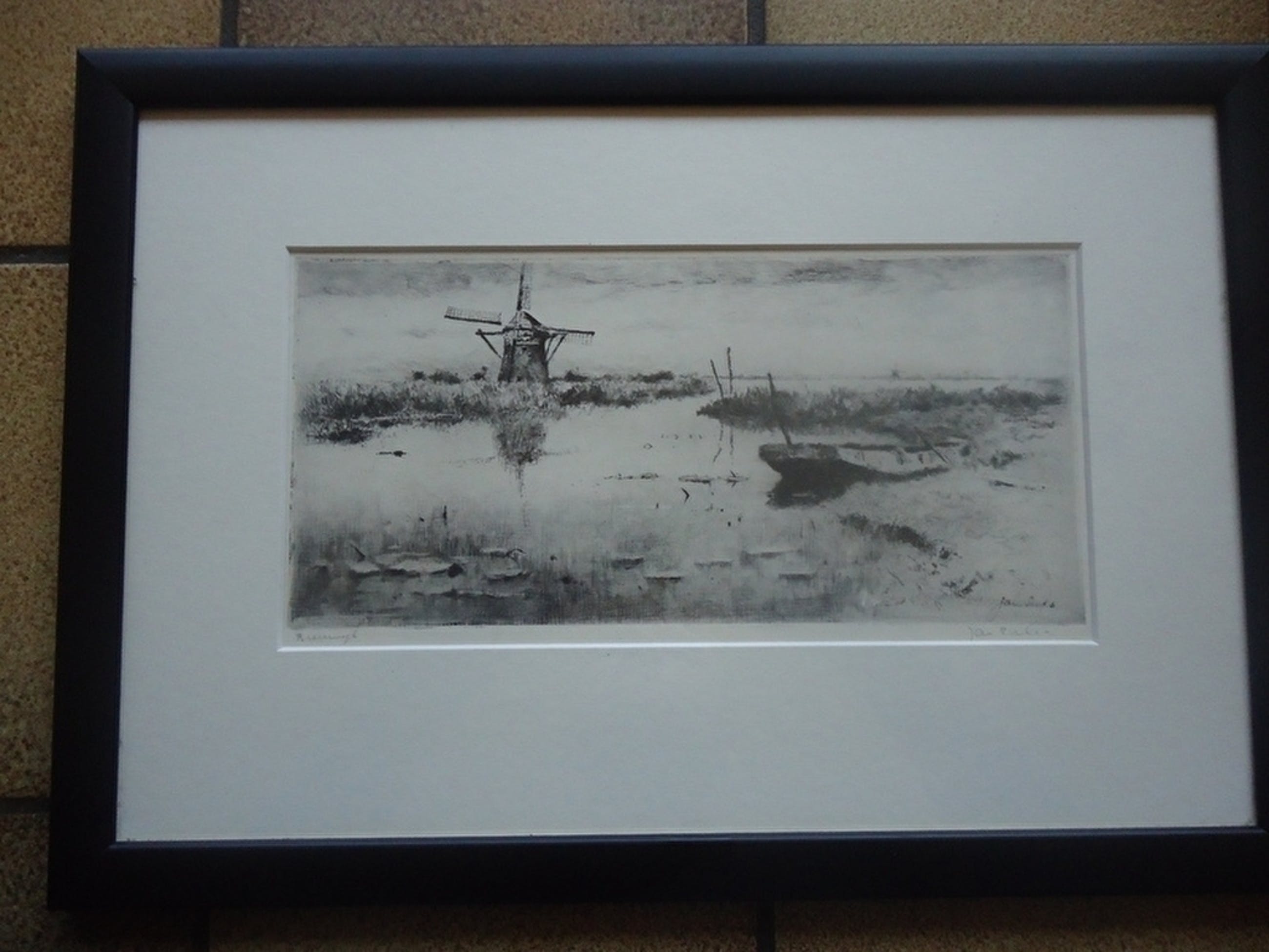 Ets : 16 x 30 cm. Met zuurvrij passe-partout en lijst : 31 x 45 cm.