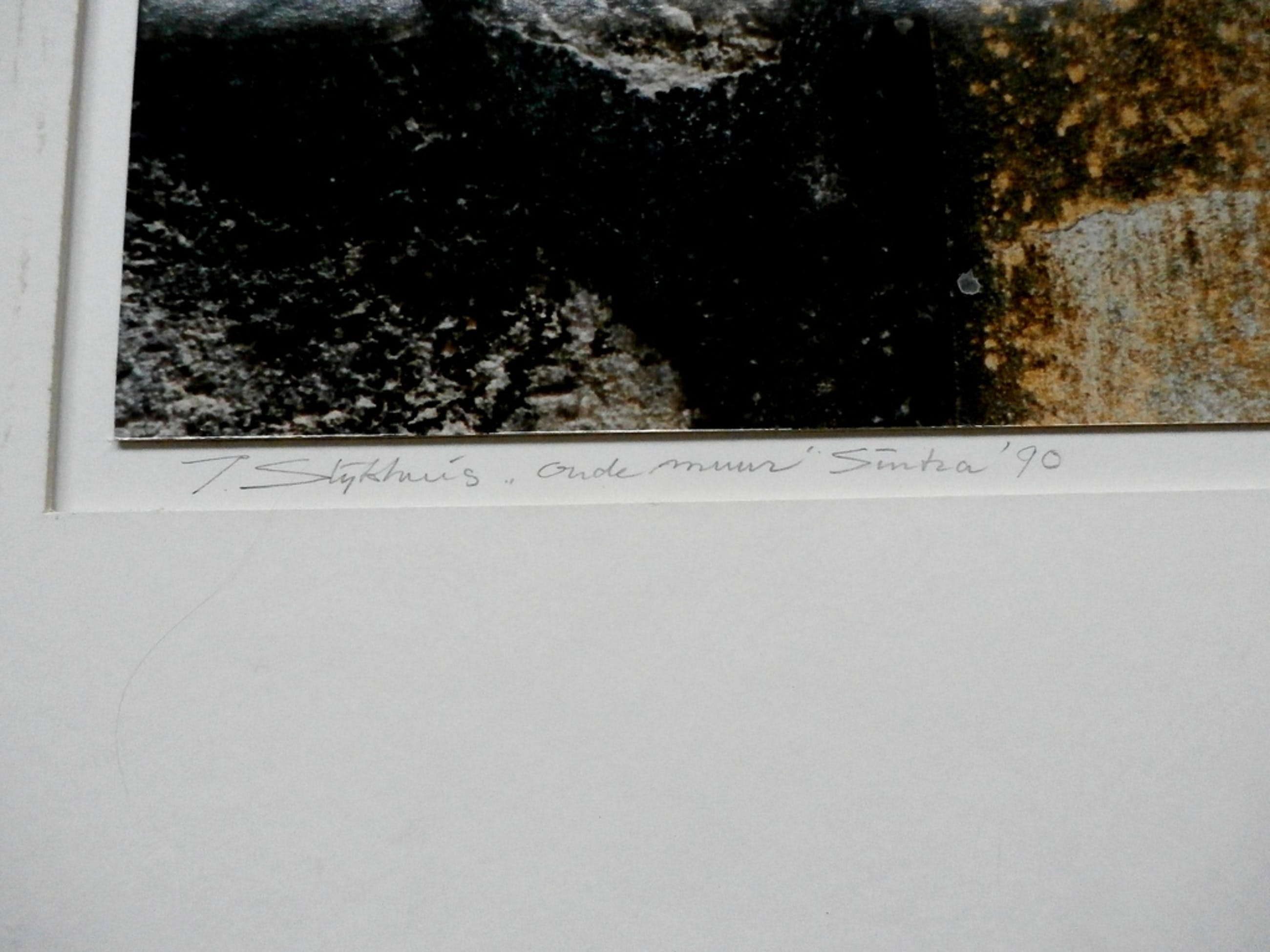 Mooie foto van Jan Slijkhuis. Titel: oude muur Sintra, Portugal. Nummer: 1/25. Jaar 1990. Afmetingen foto: H30,5 x b45 cm. Afmetingen incl. passe-partout: H60 x b70 cm. Het werk is linksonder gesigneerd door de fotograaf. Op de achterzijde is het werk gestempeld.