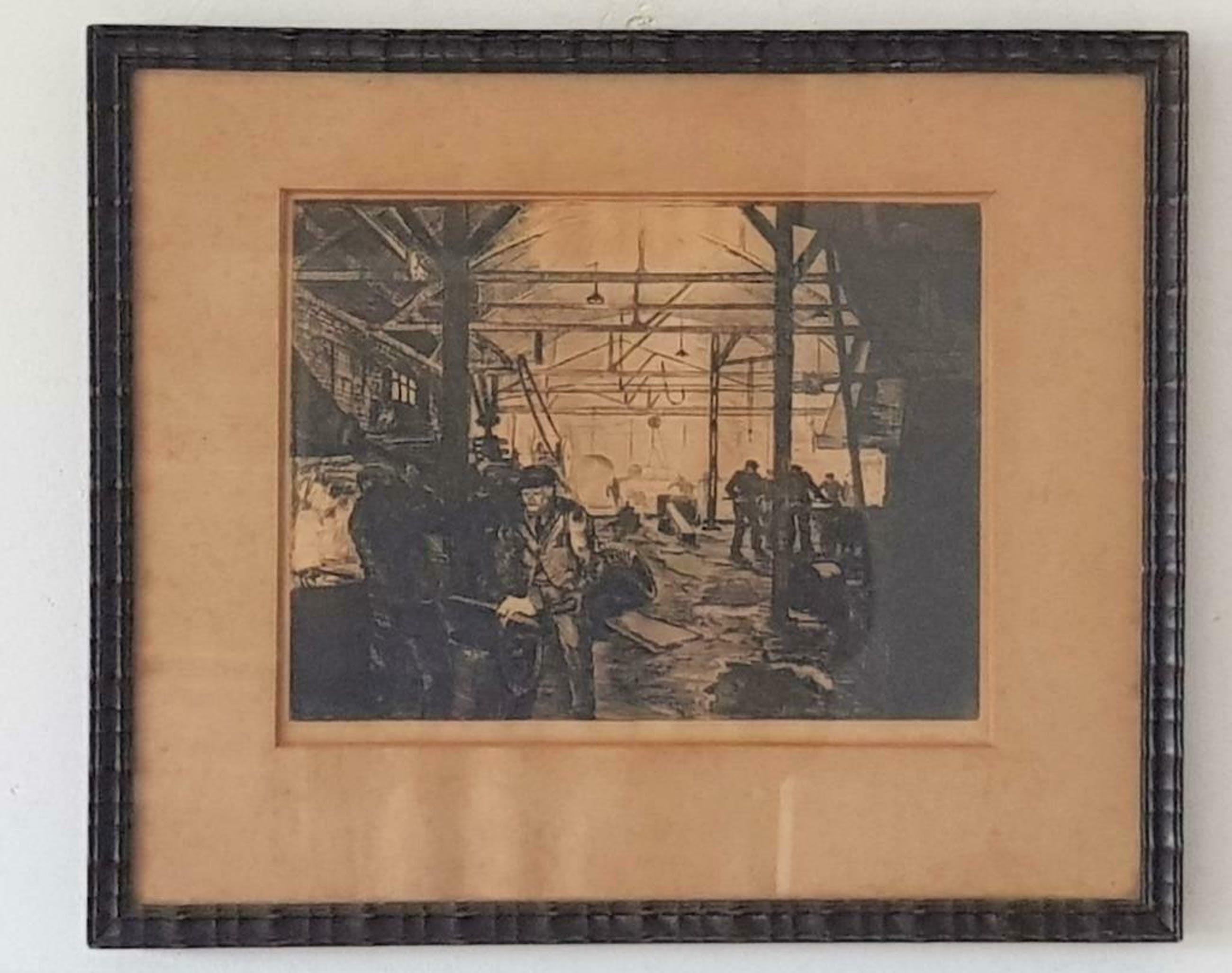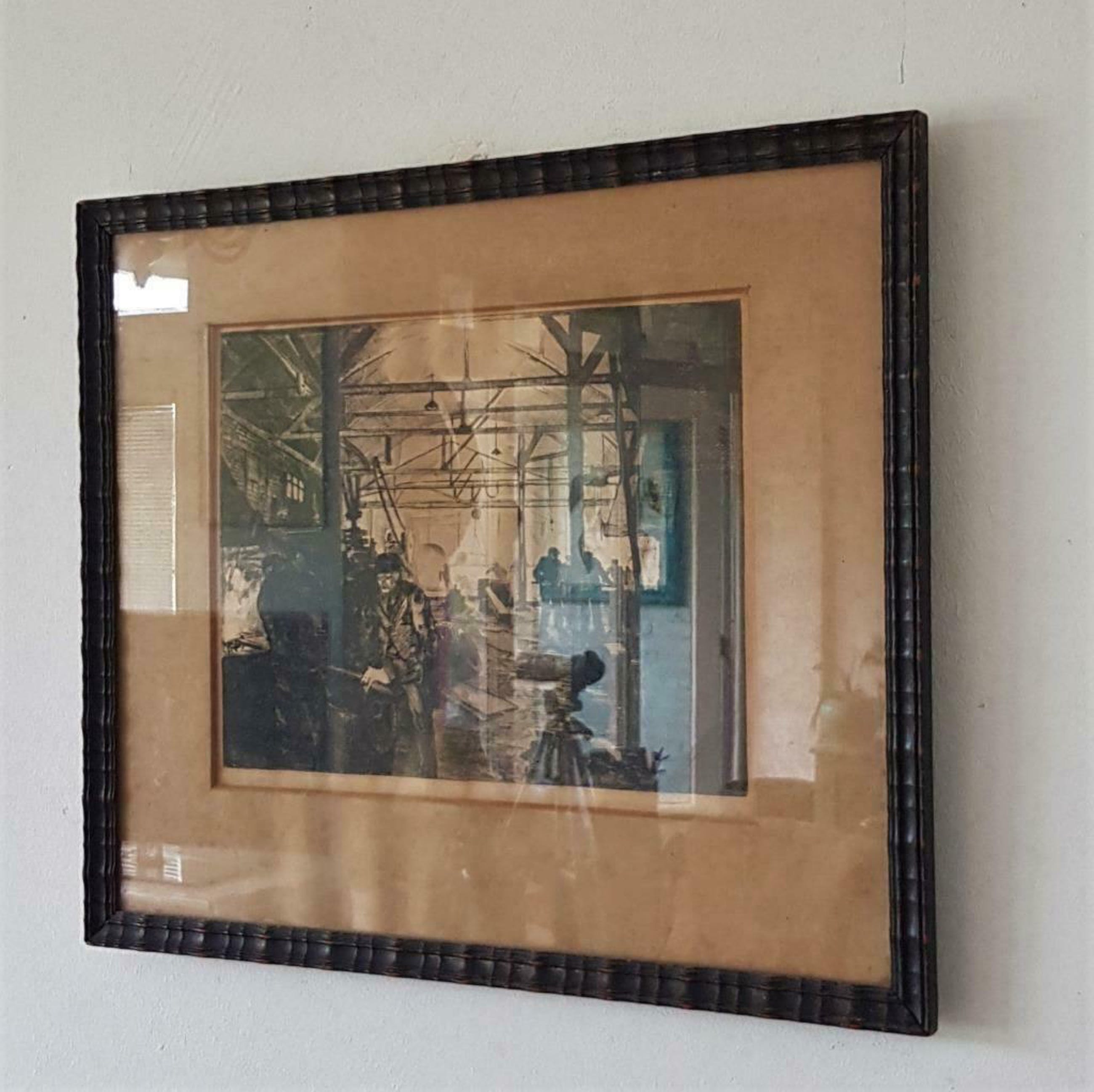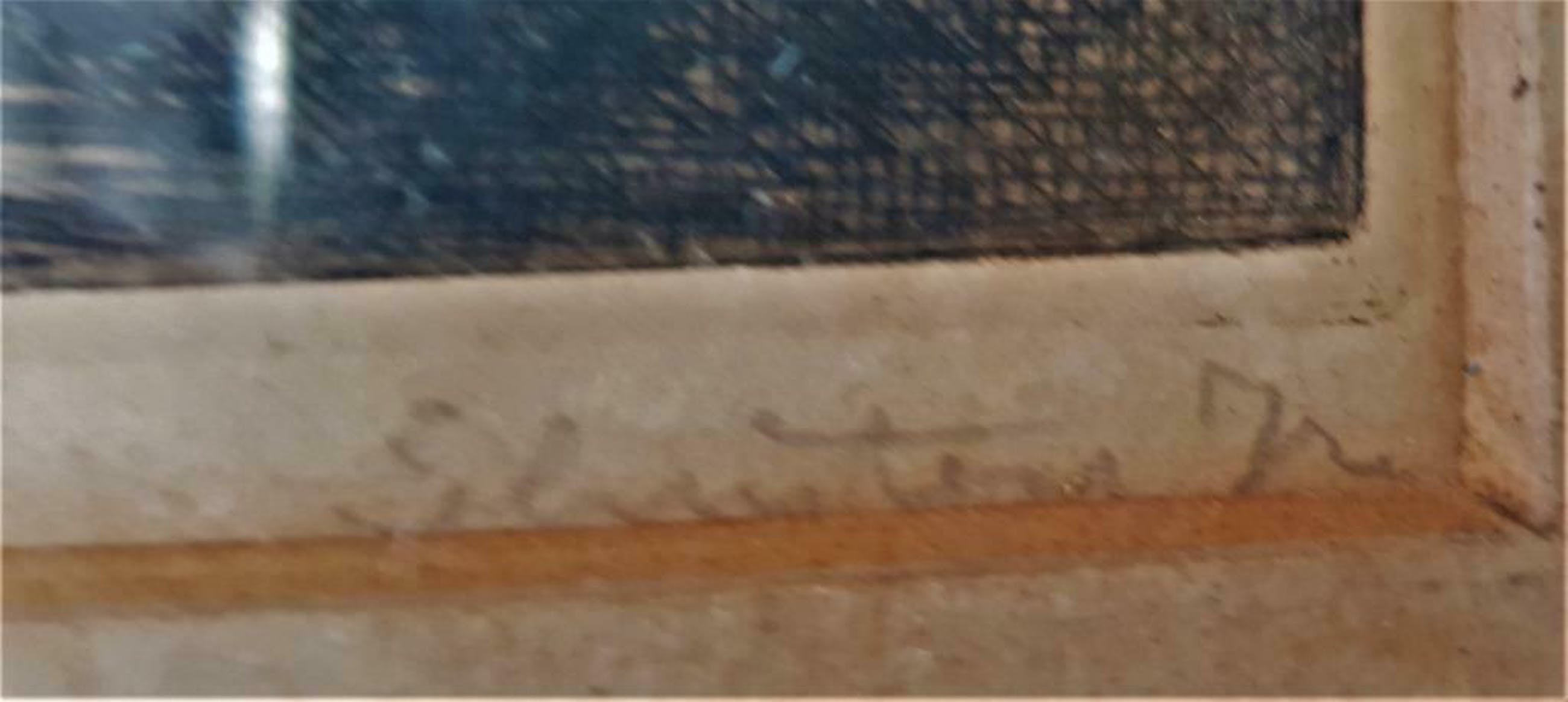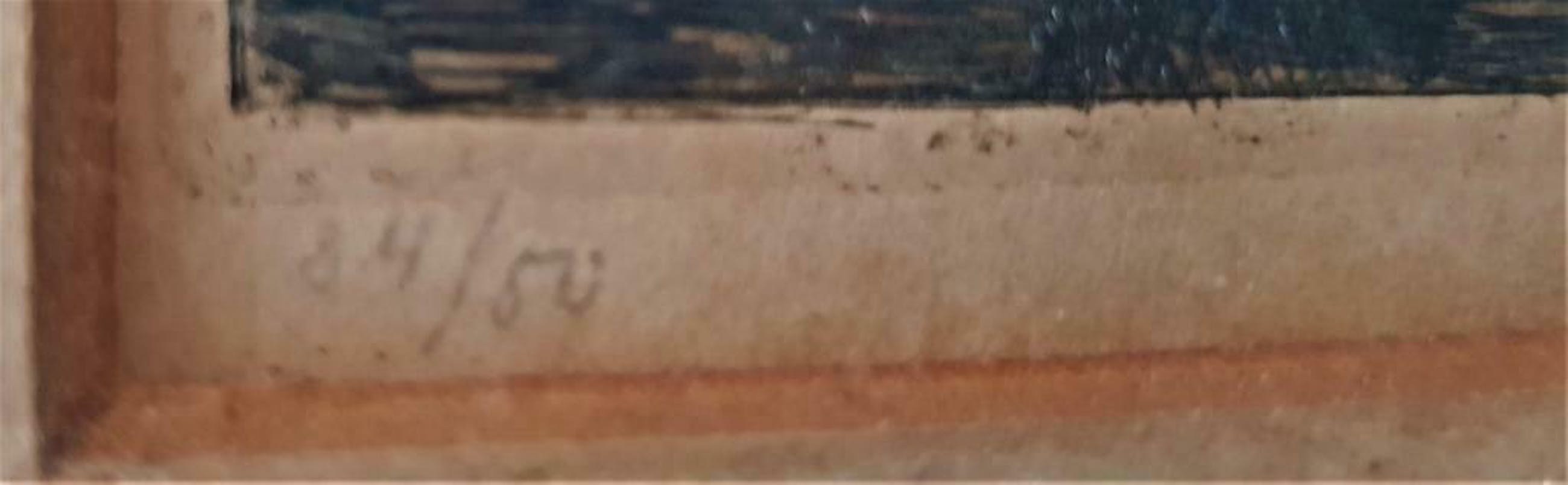 De originele houten lijst en het passe-partout zijn aanwezig, (zonder glasplaat).