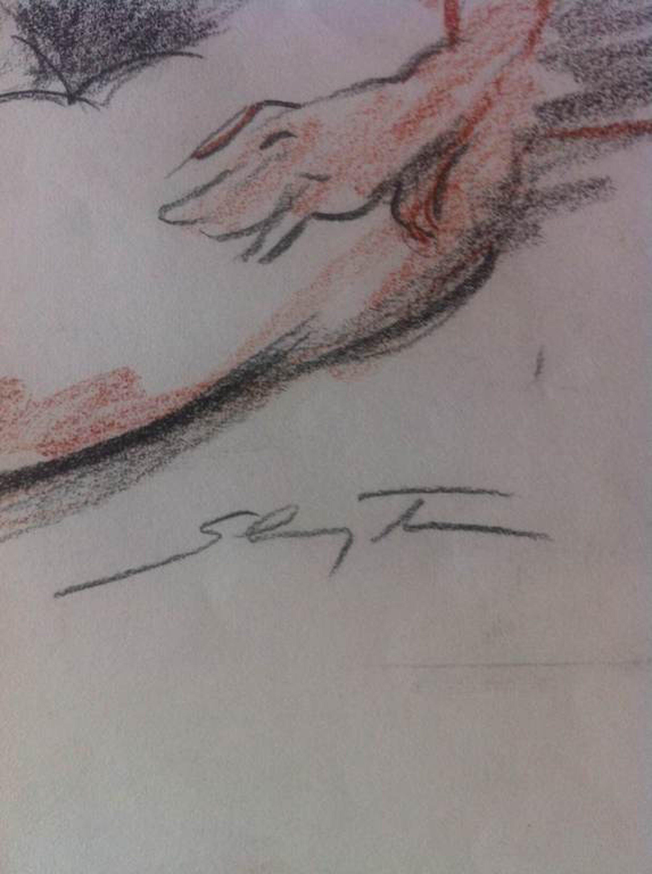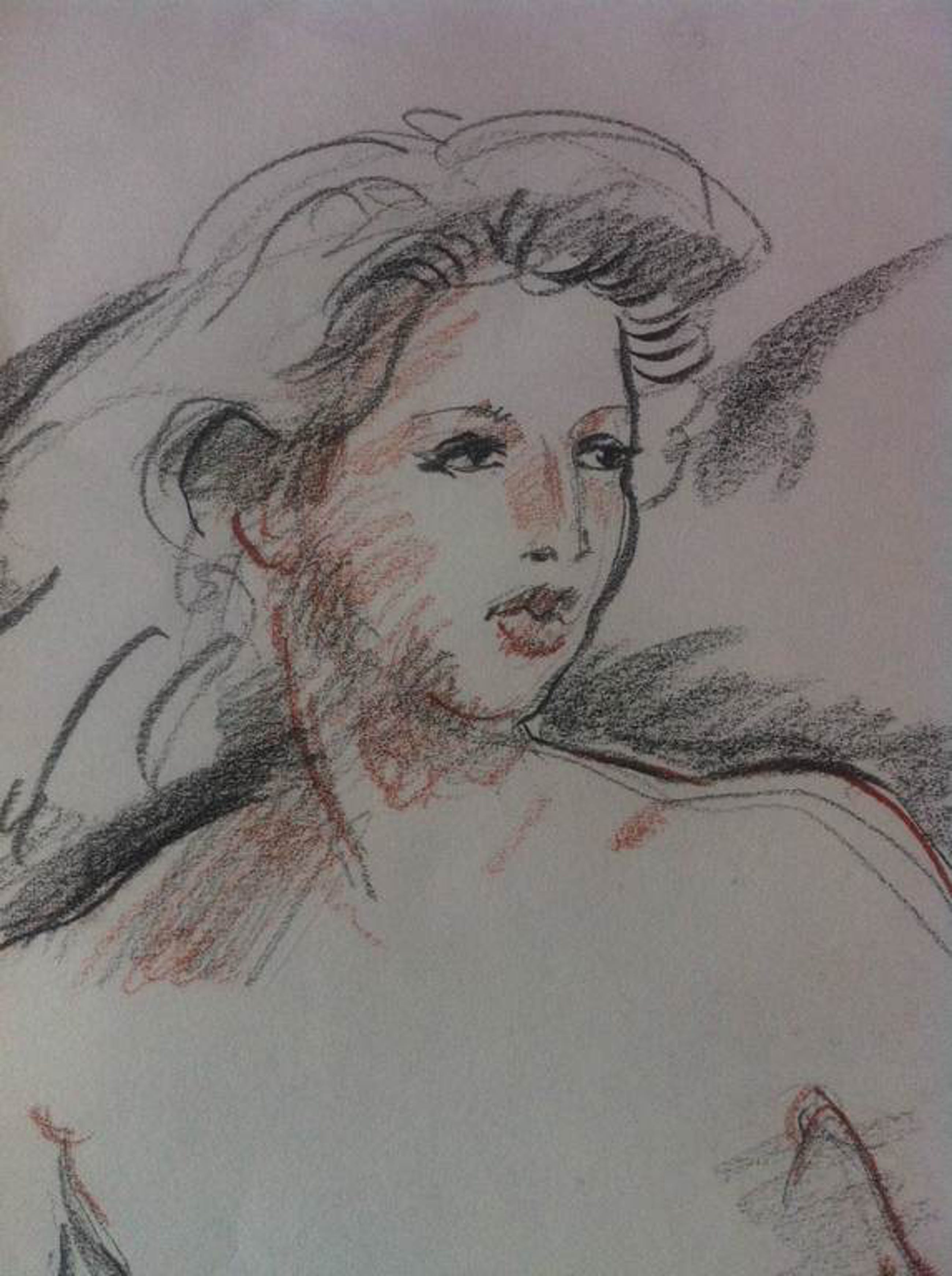 Erg mooie en unieke krijttekening van de bekende Jan Sluijters jr. van zijn vrouw Dineke Sluijters in 2 kleuren.