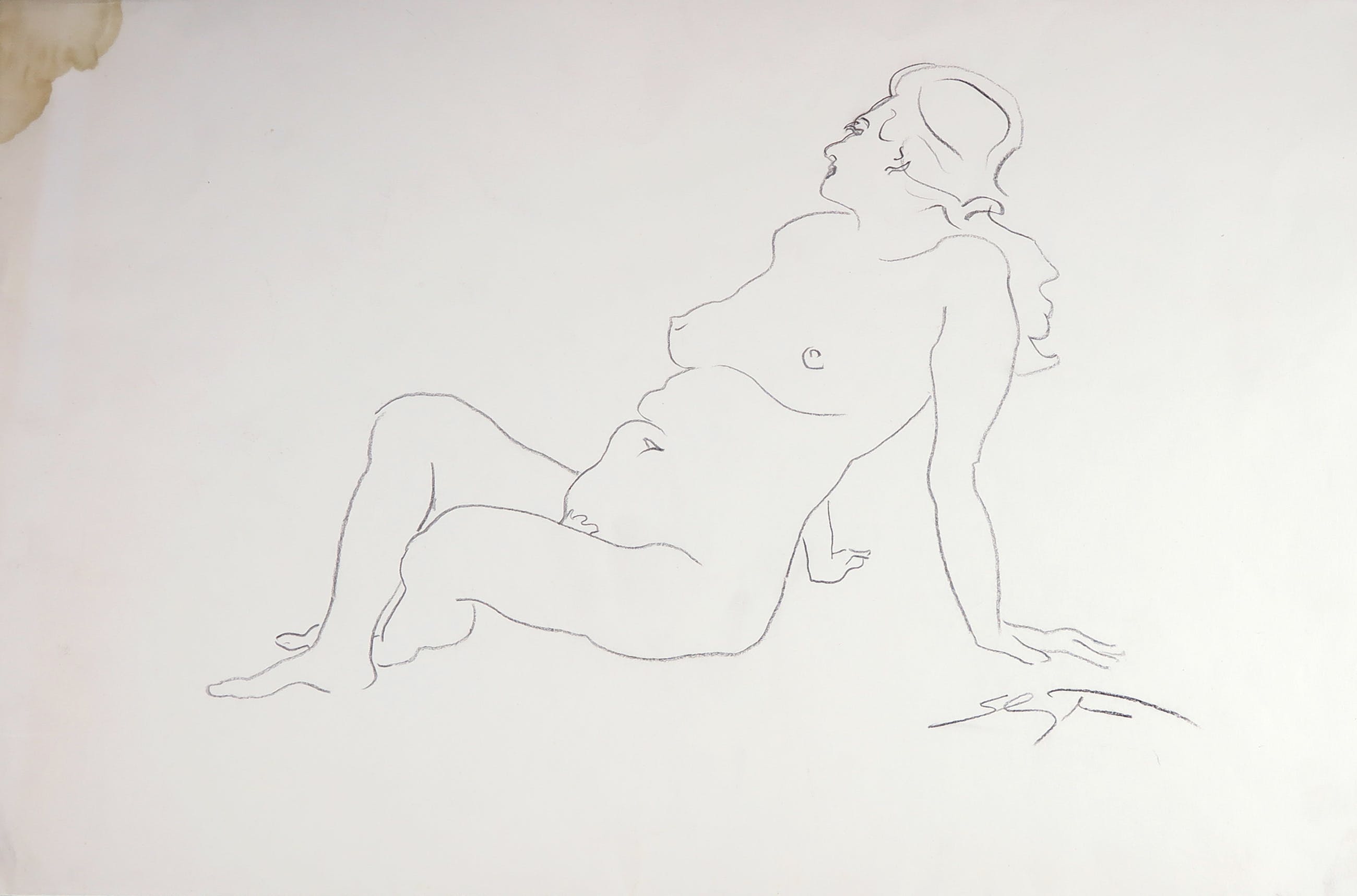 Jan Sluijters (jr.) - Potloodtekening, Leunend naakt - Verkocht