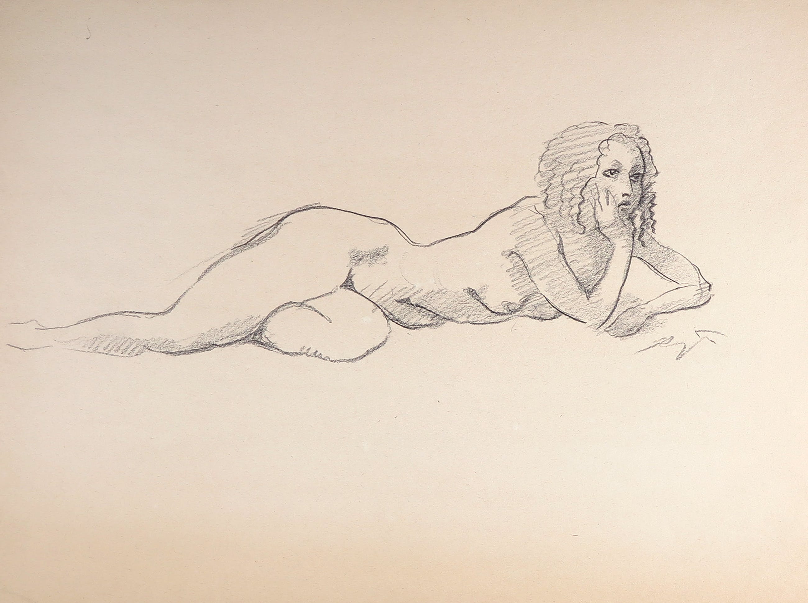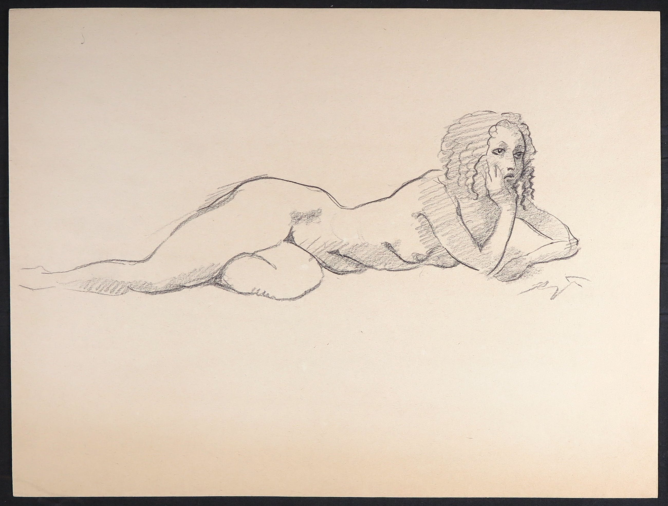 Jan Sluijters (jr.) - Potloodtekening, Liggend naakt - Verkocht