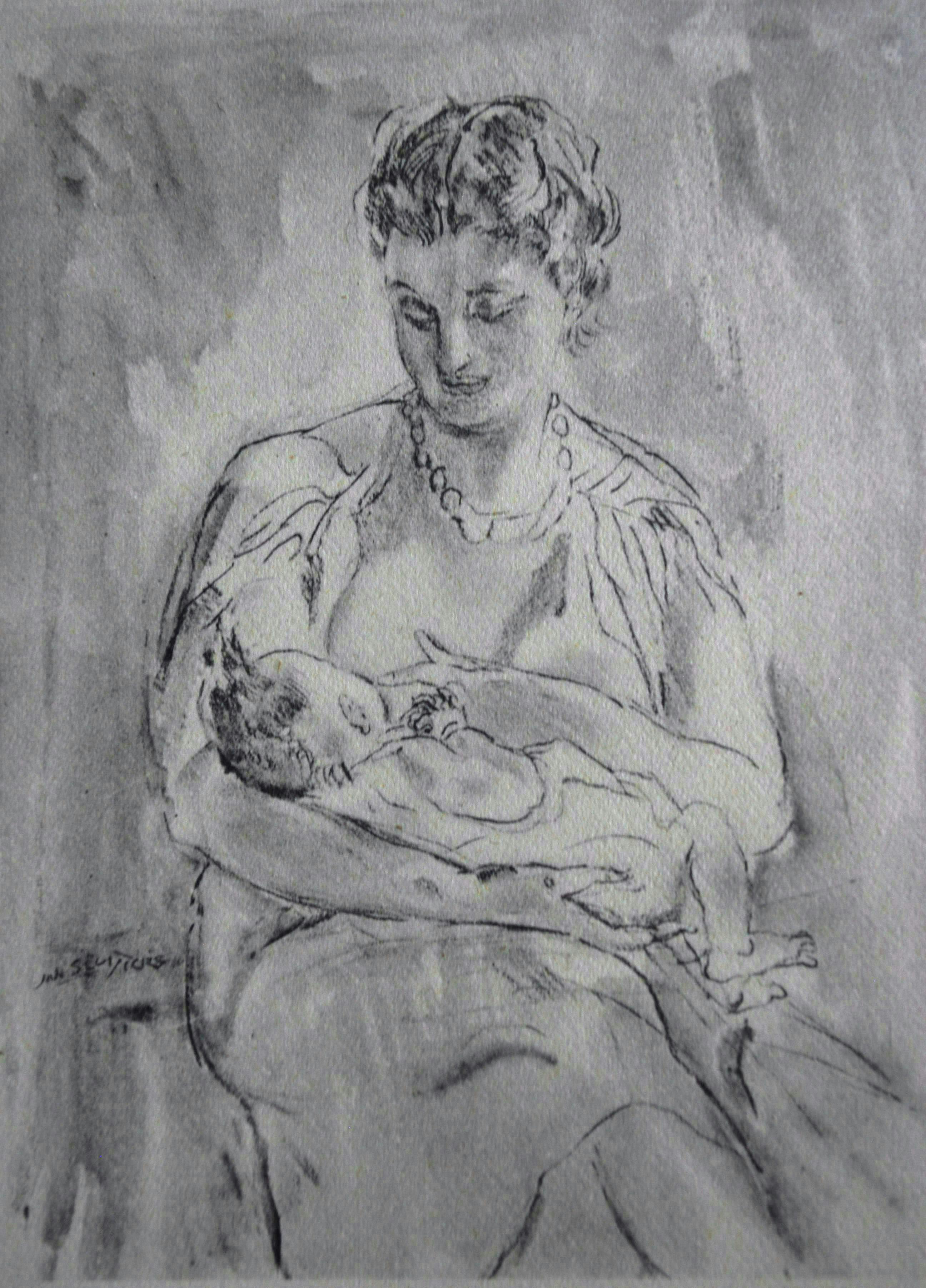Jan Sluijters - 'moeder met kind' 1950 (ingelijst)-vermeld in bijgeleverd boek