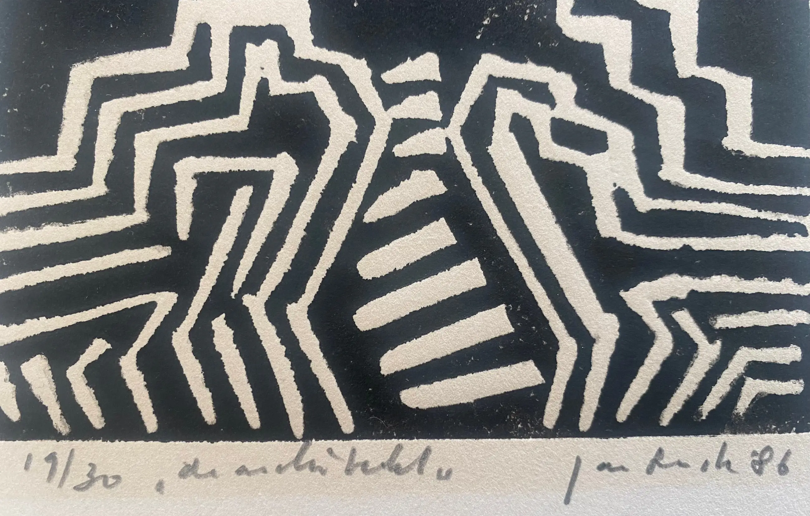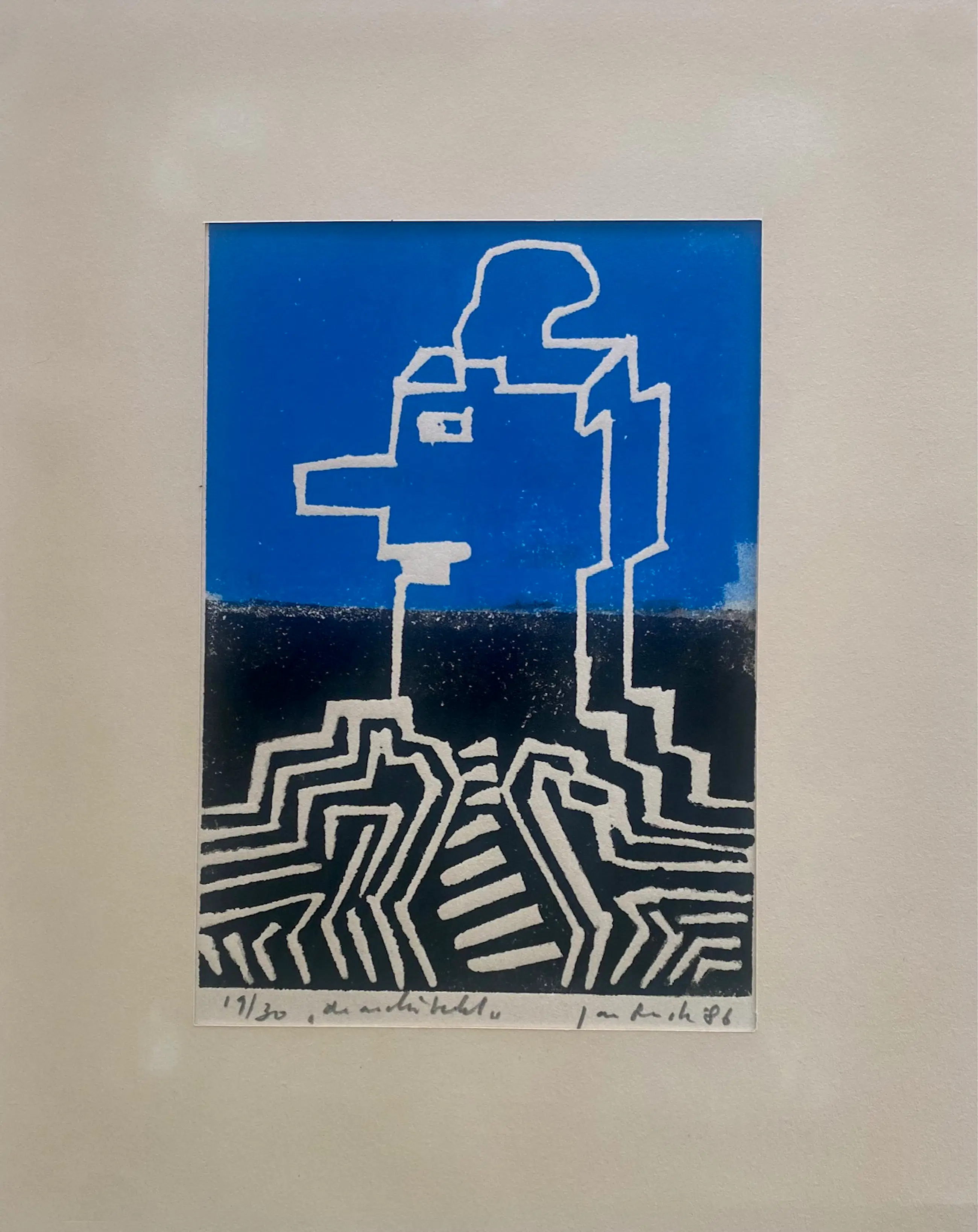 Klein werk van Jan Snoeck in krachtige blauw en zwart tinten