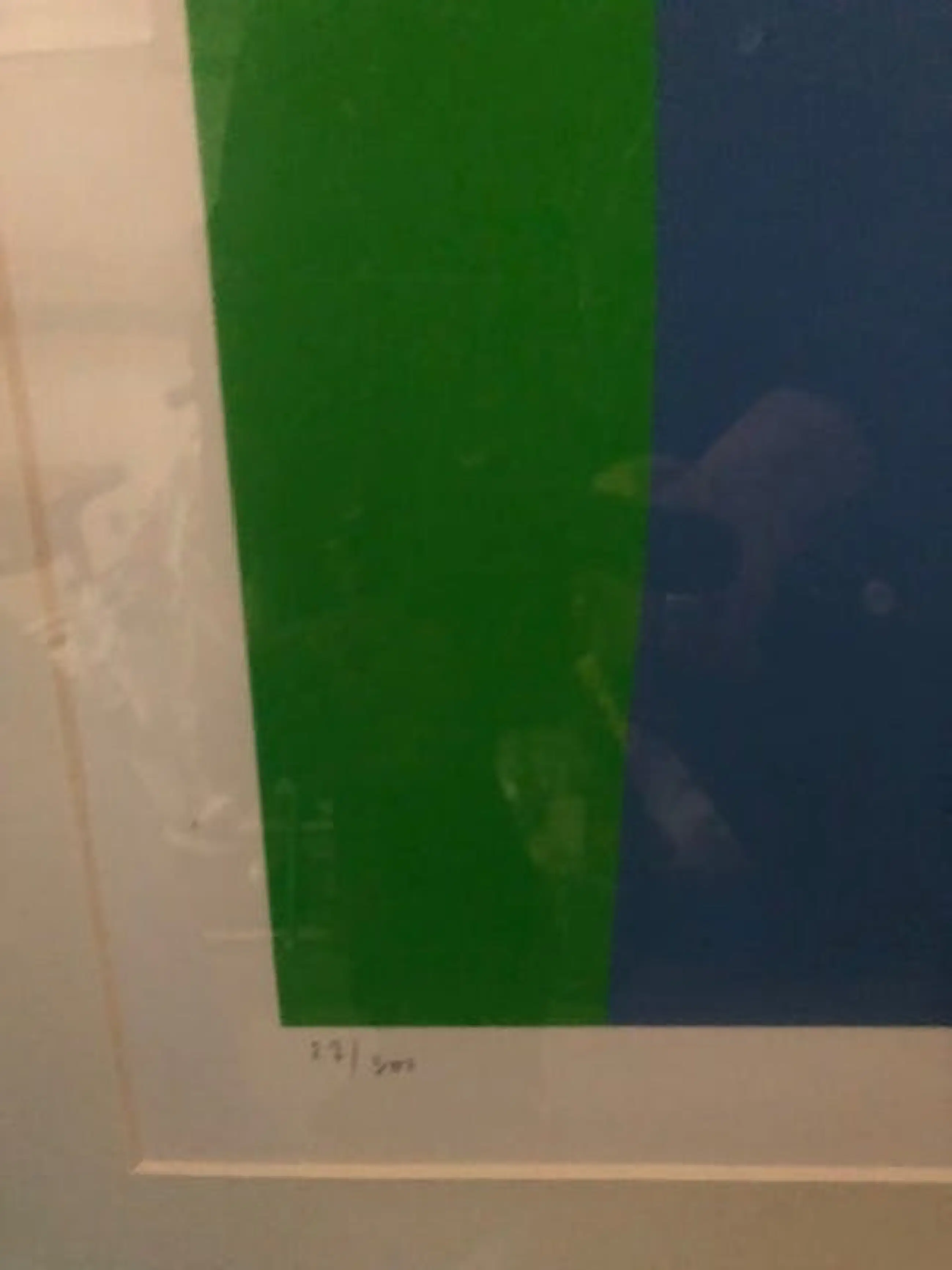 Het werk wordt geleverd in een aluminium lijst van zeer goede kwaliteit met ophangsysteem, inclusief passe-partout.