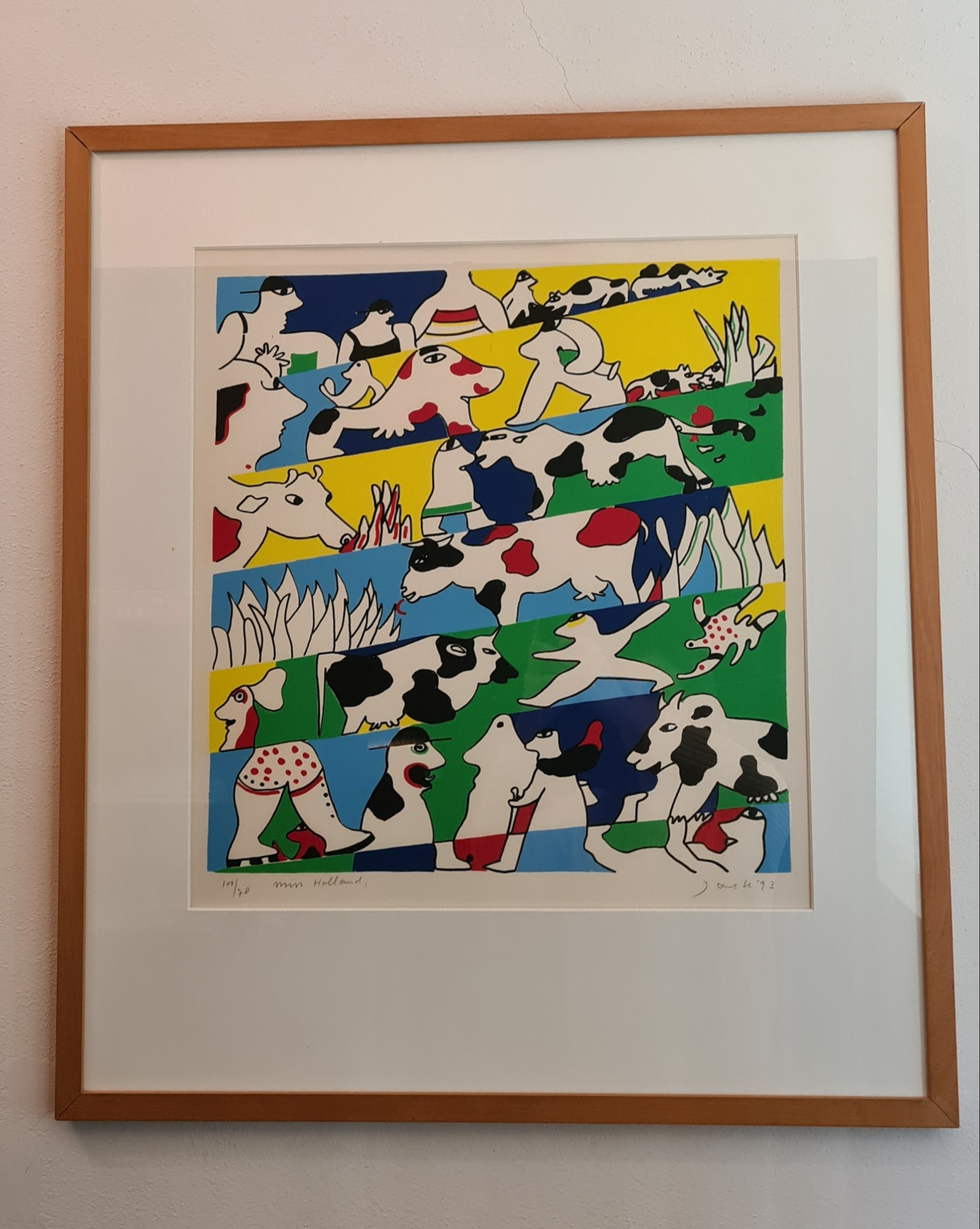 Nieuwstaat zeefdruk van Jan Snoek's "Een dagje naar buiten" Oplage 19 van de 36