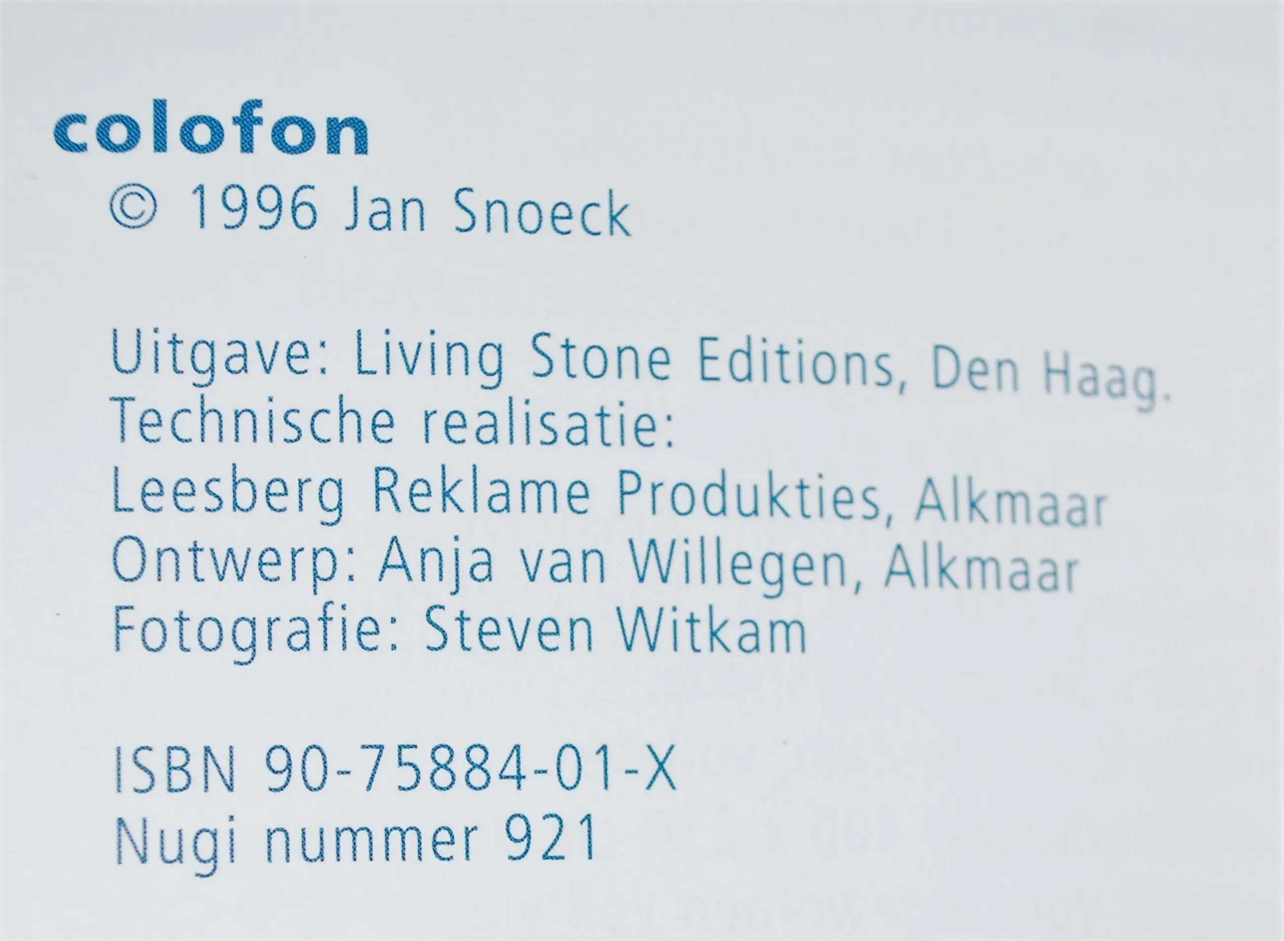 Daarbij het hardcover boek (met transparant omslag): de zeefdrukken van Jan Snoeck. 1996. In prima gebruikte staat.