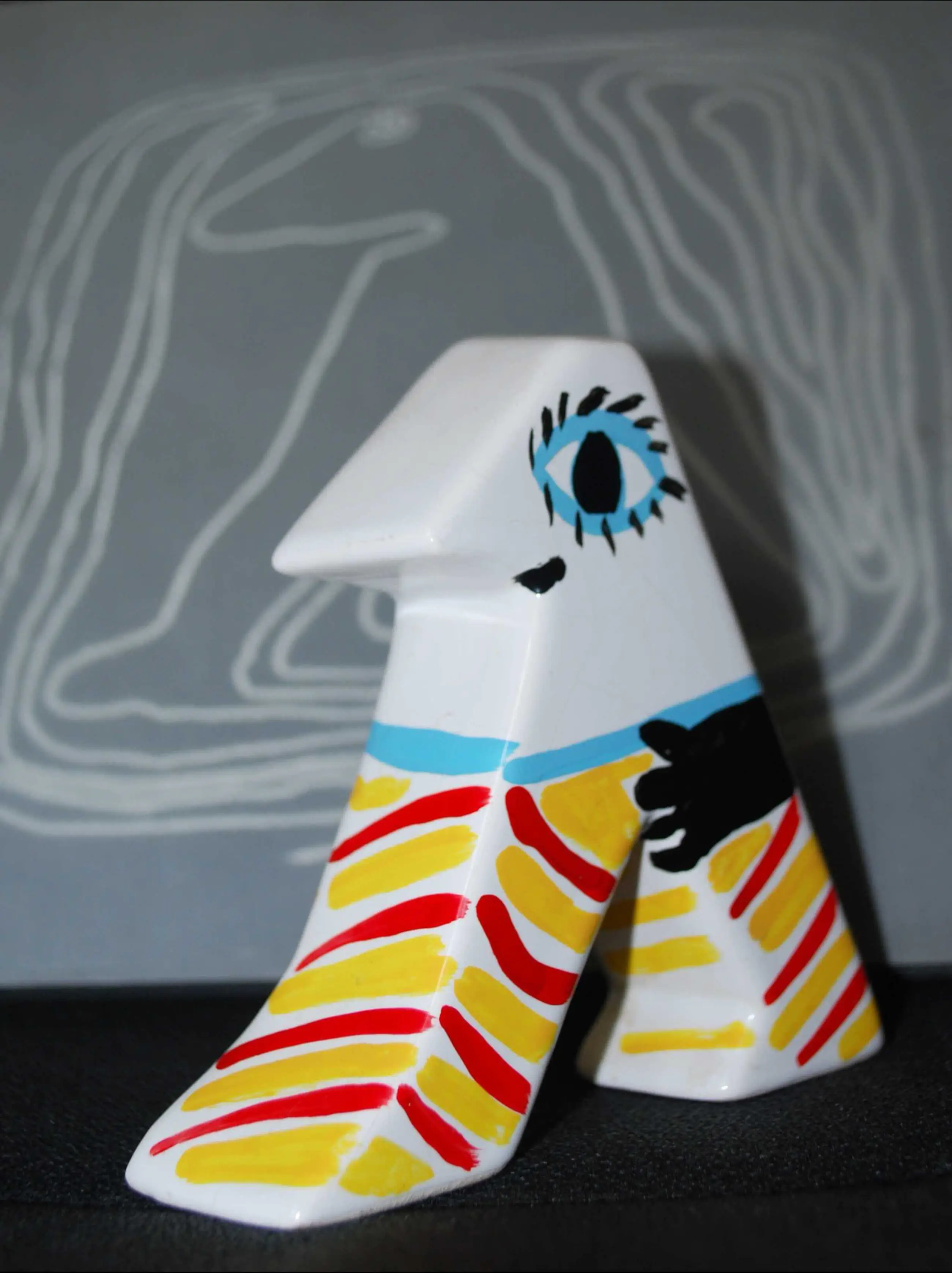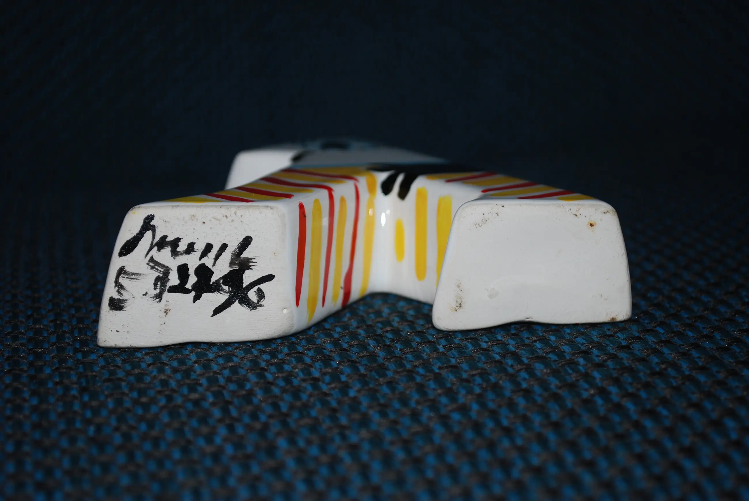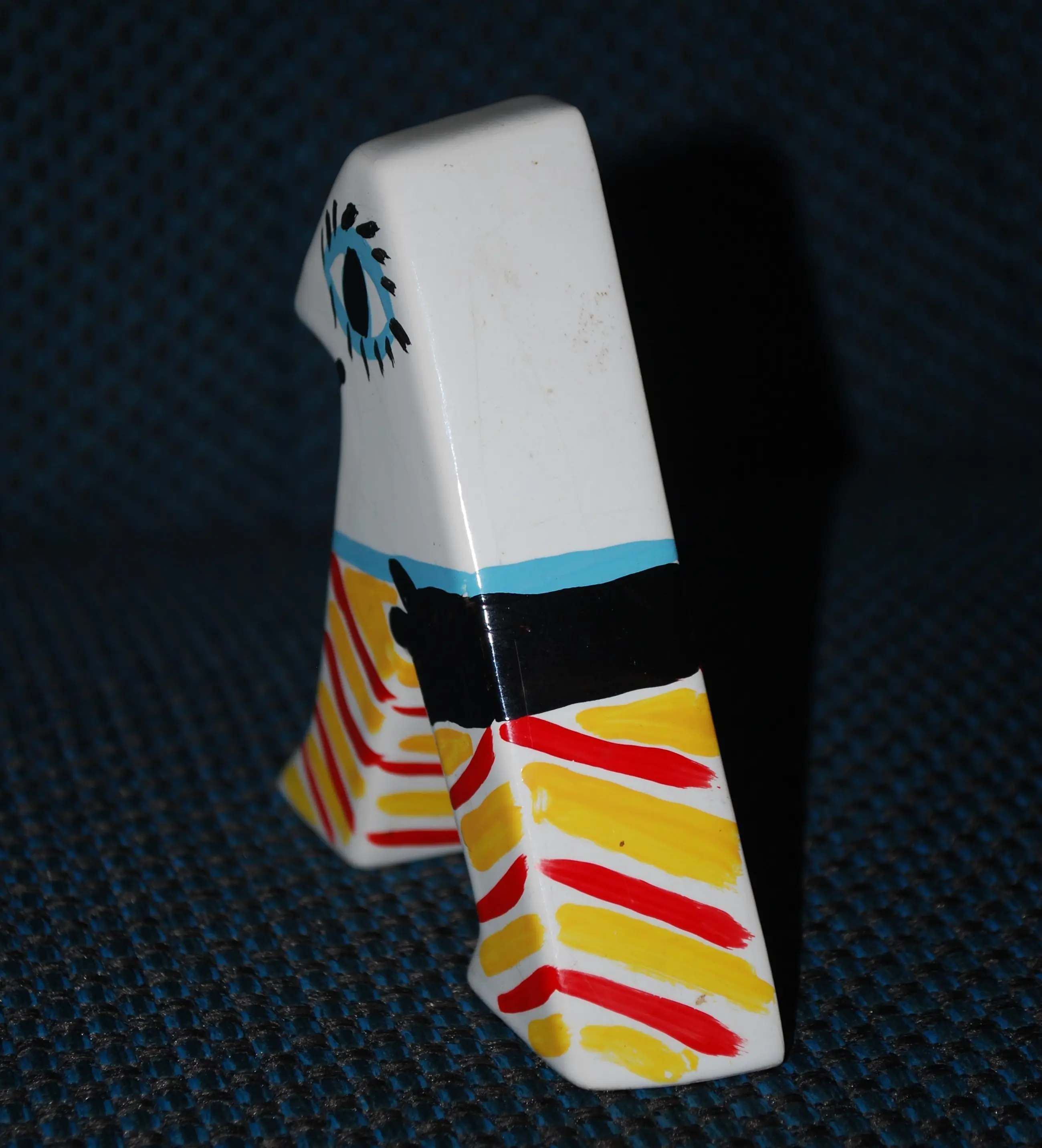In prima gebruikte staat verkerend keramisch beeldje. Gesigneerd en gedateerd aan de onderzijde. Waarschijnlijk/zeker een unica.