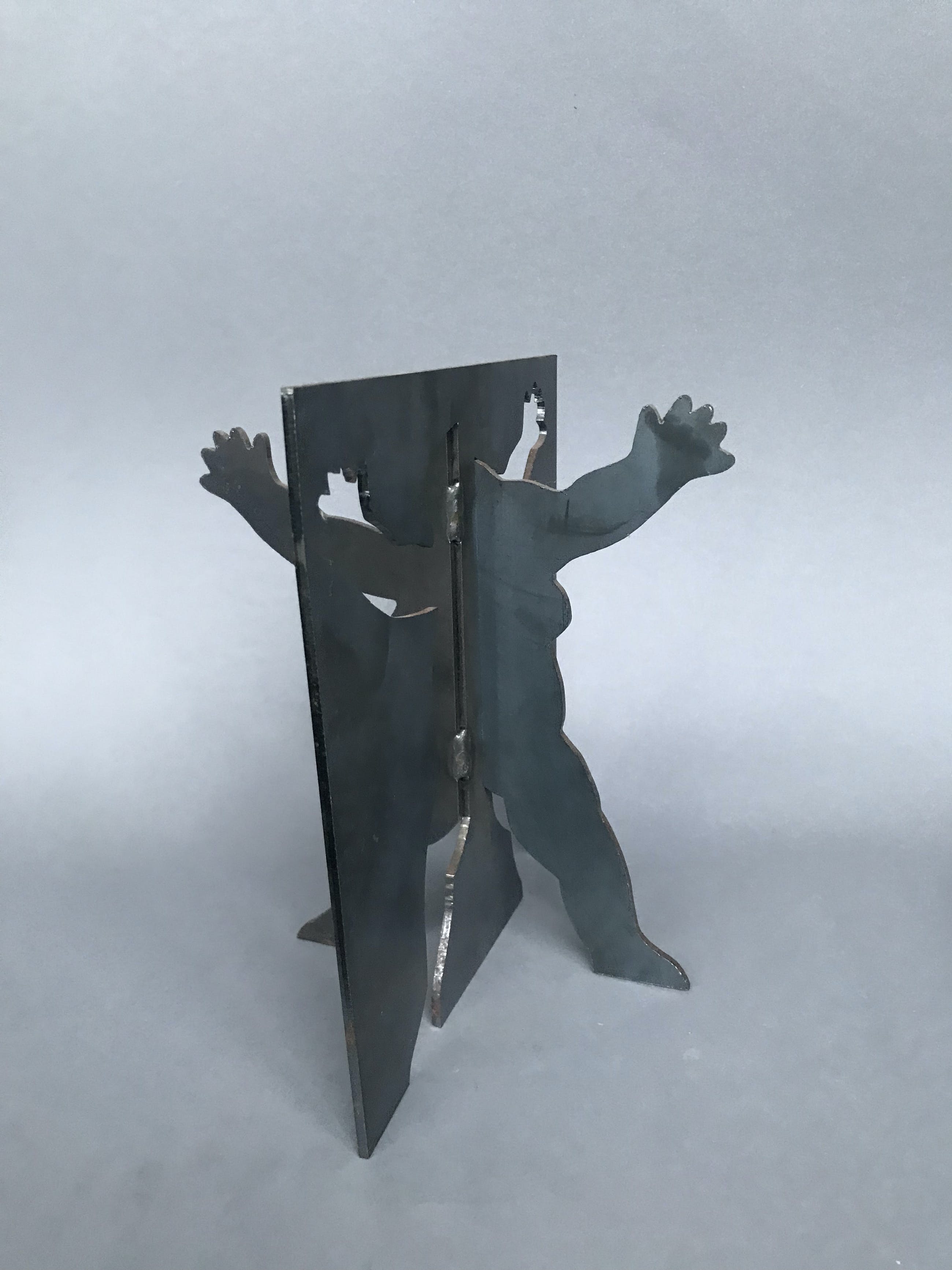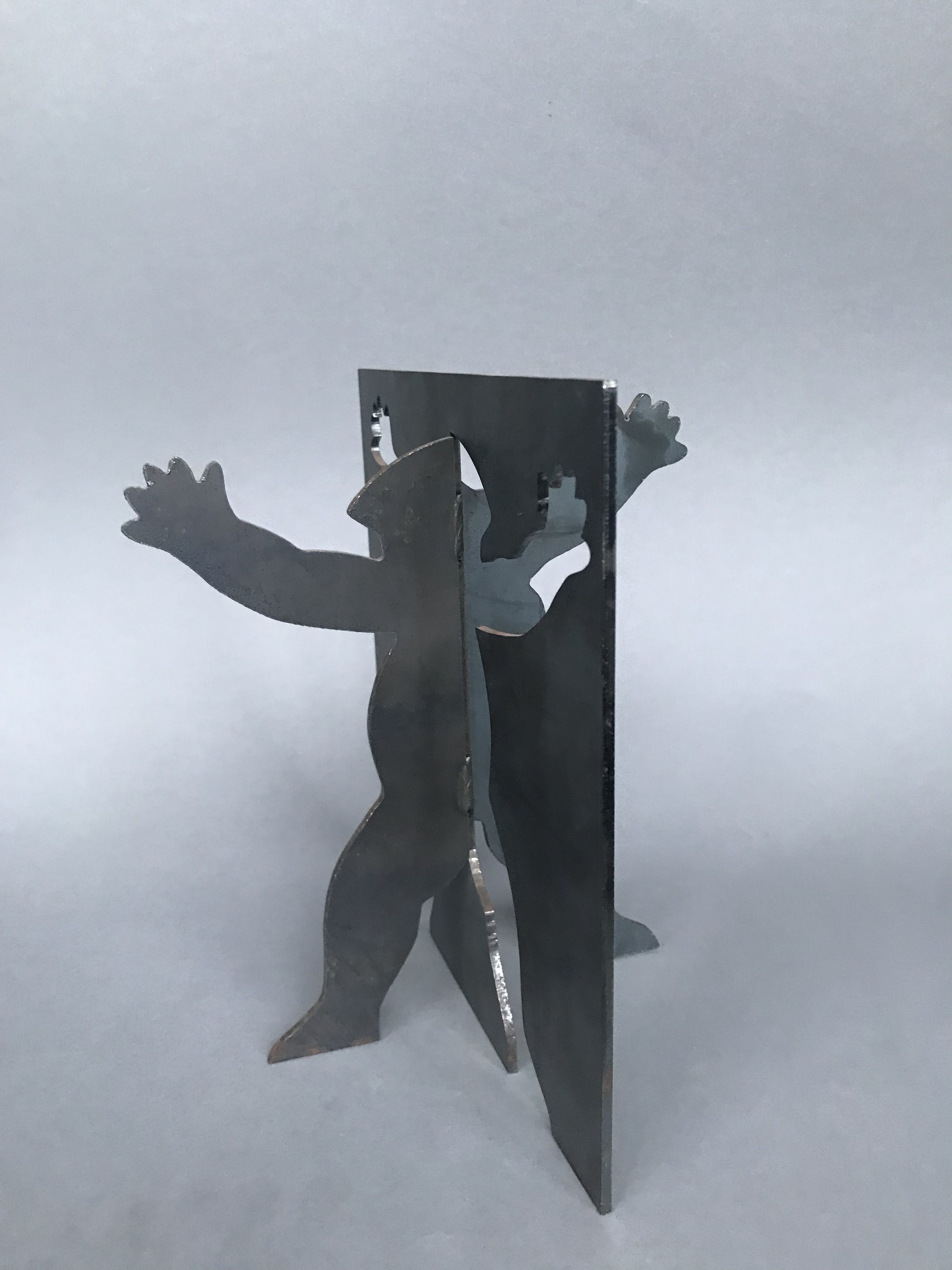Momenteel is het metaal nog in onaangetaste staat. Wanneer het object buiten wordt geplaatst, zal het evenredig roesten.