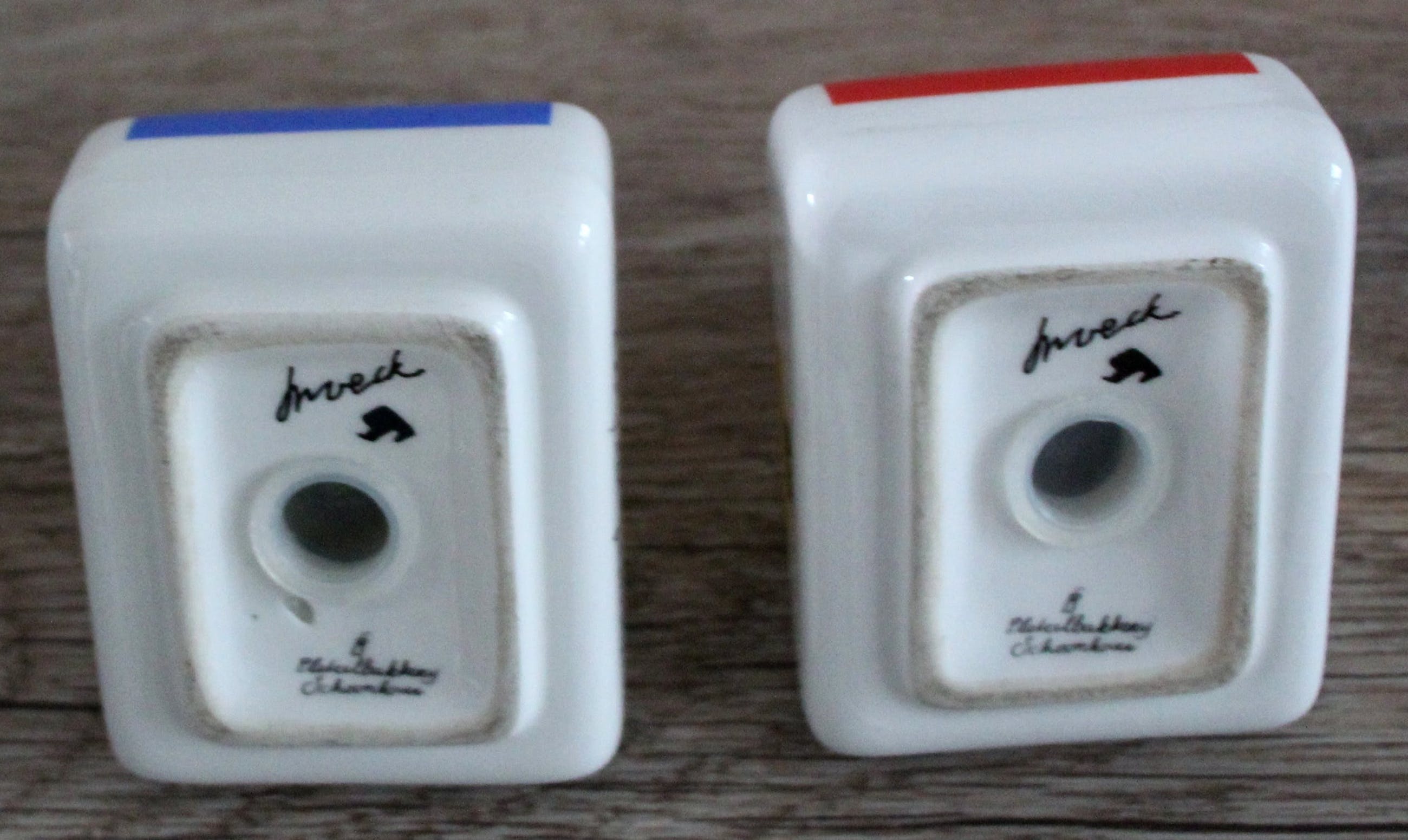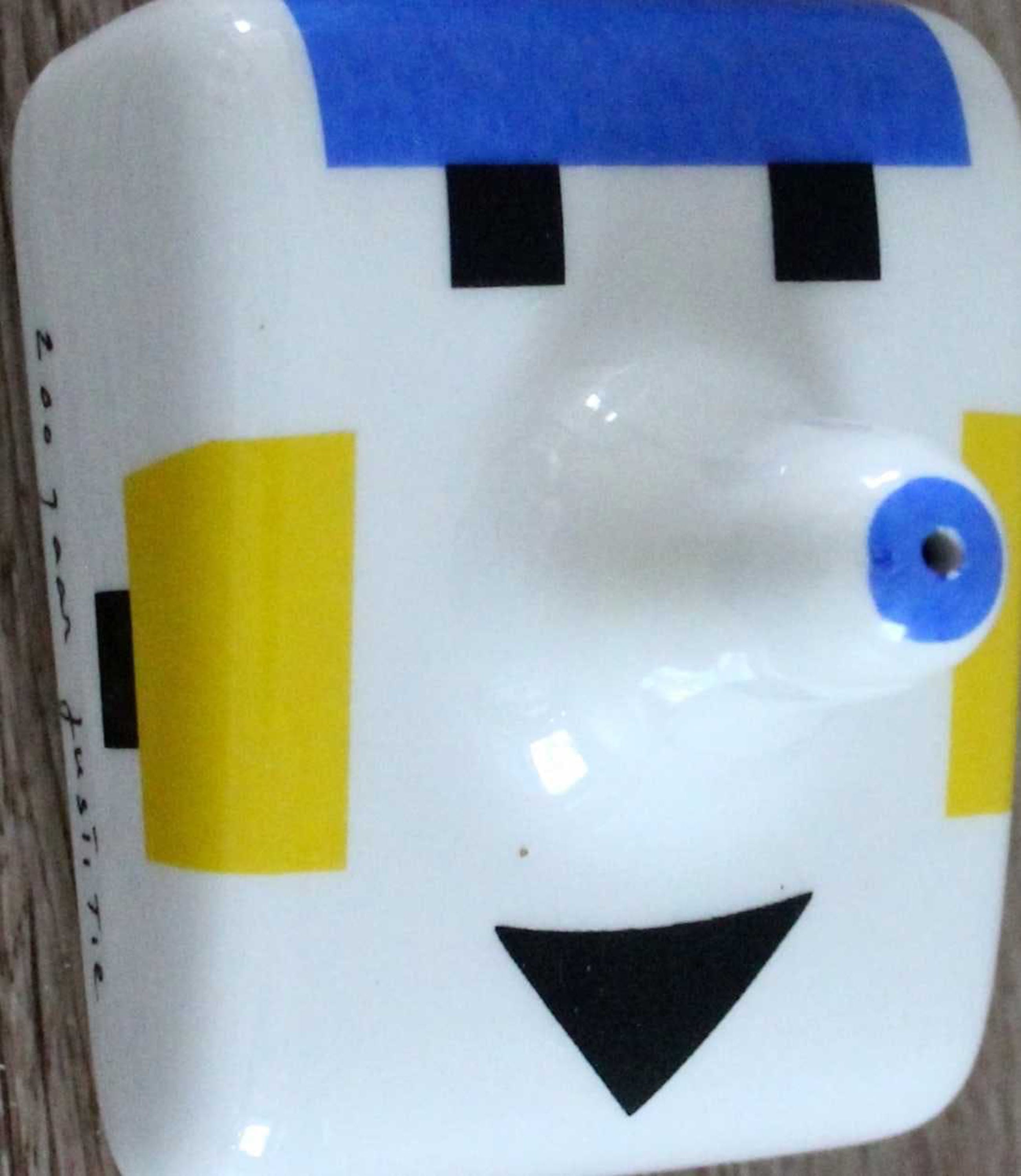 Afmetingen: 7 cm x 7 cm x 6 cm (h x b x d). Promotie artikel van justitie (200 jaar justitie). Het peper en zout stel is onderaan gesigneerd door de kunstenaar. De authenticiteit van het aangeboden werk wordt volledig gegarandeerd. Een certificaat van echtheid kan, op aanvraag, worden gemaild.