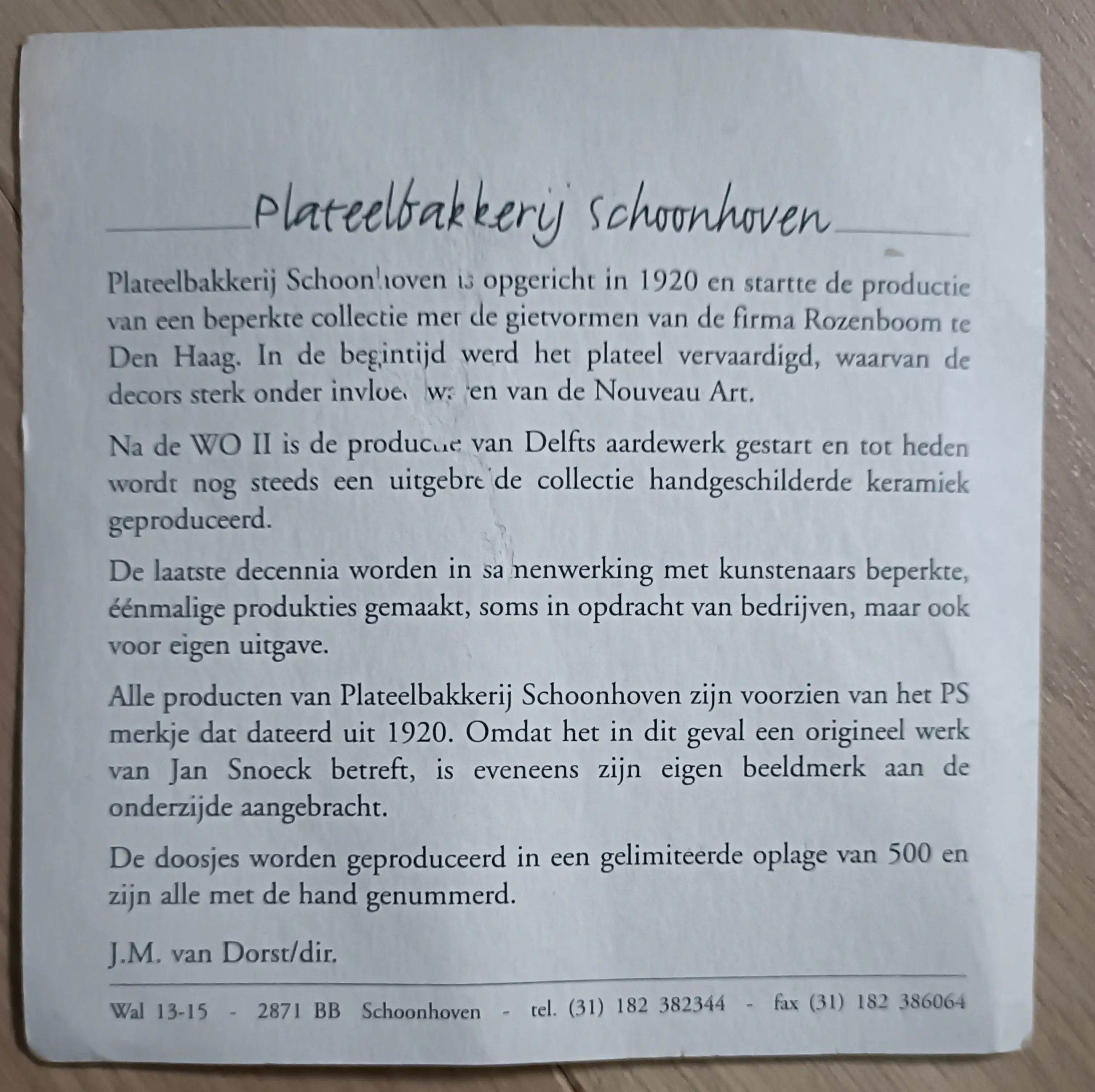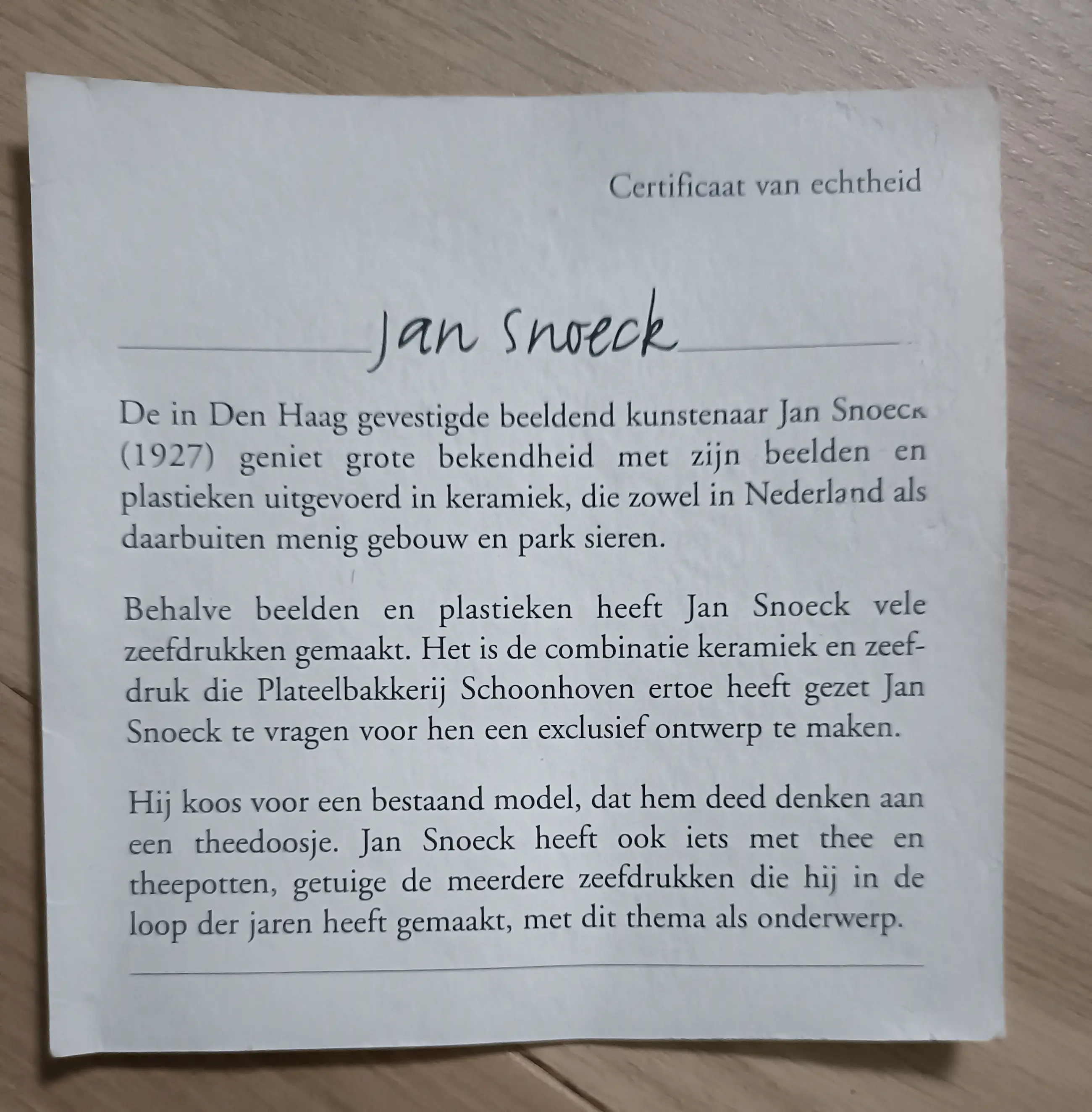 Theedoos met kenmerkende afbeelding van Jan Snoeck (1927-2018)
