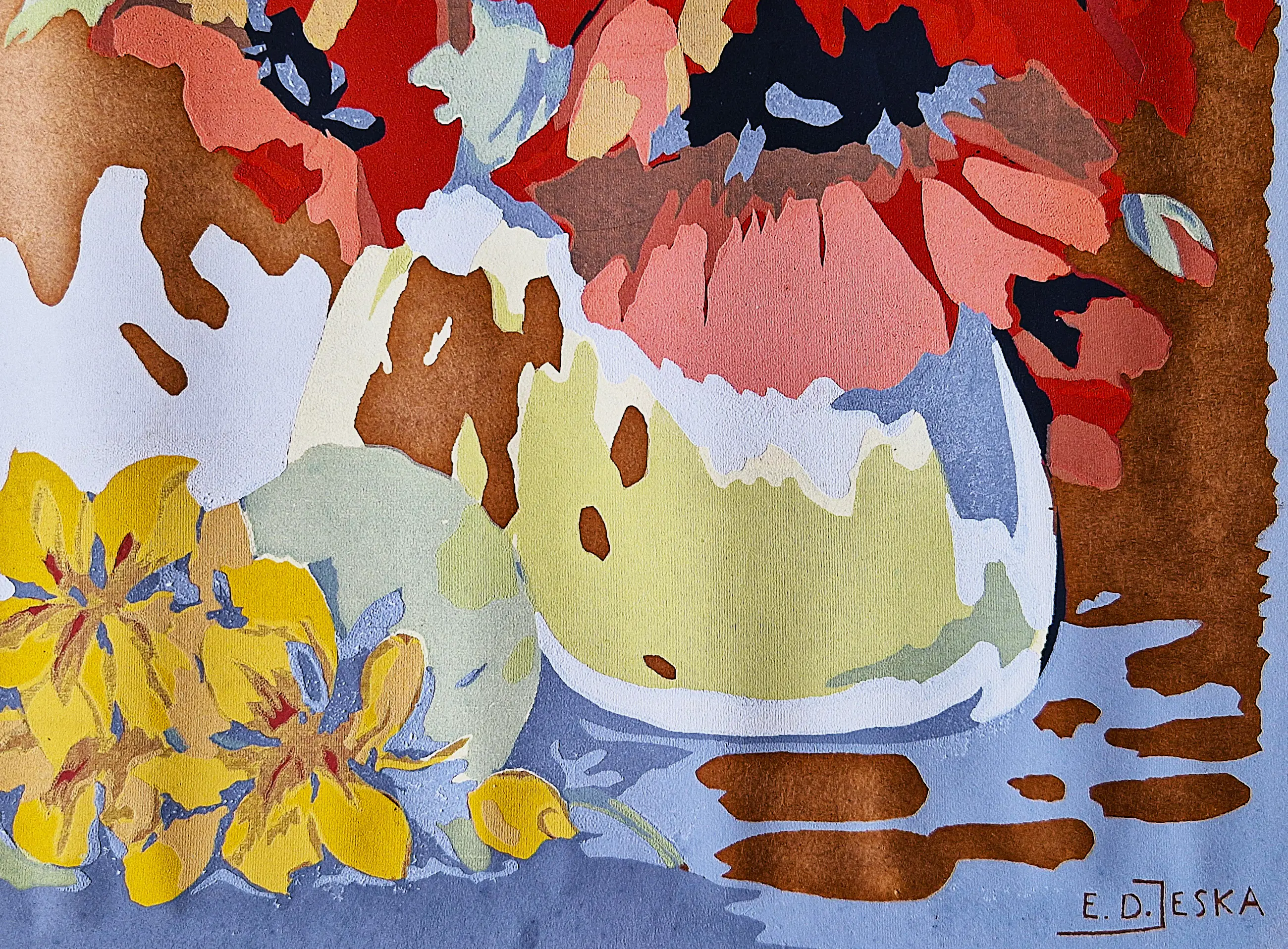 Jan Staats Kiewiet - (Jeska) expressionist. in 1934 gemaakte gouache "stilleven magnolia"