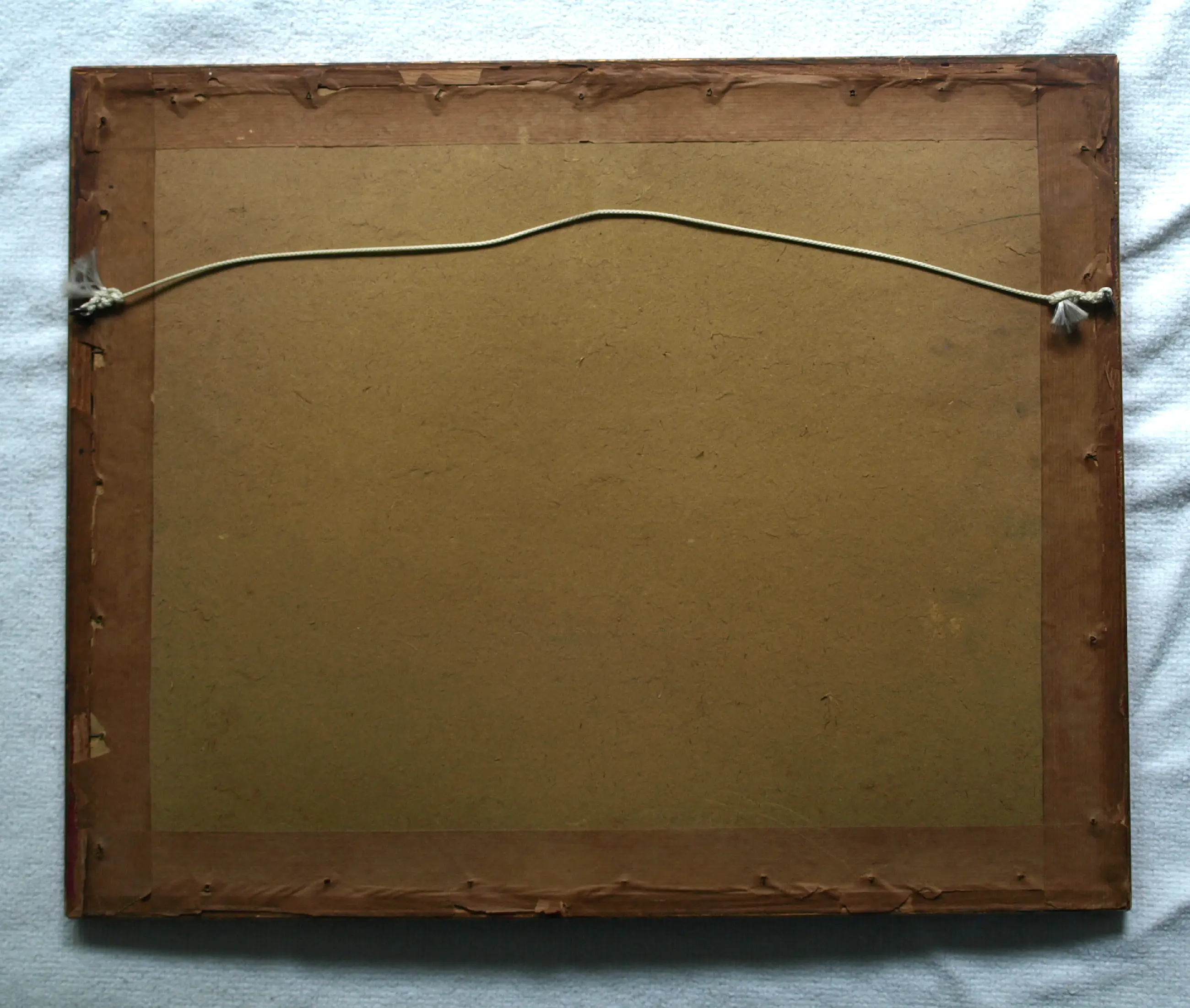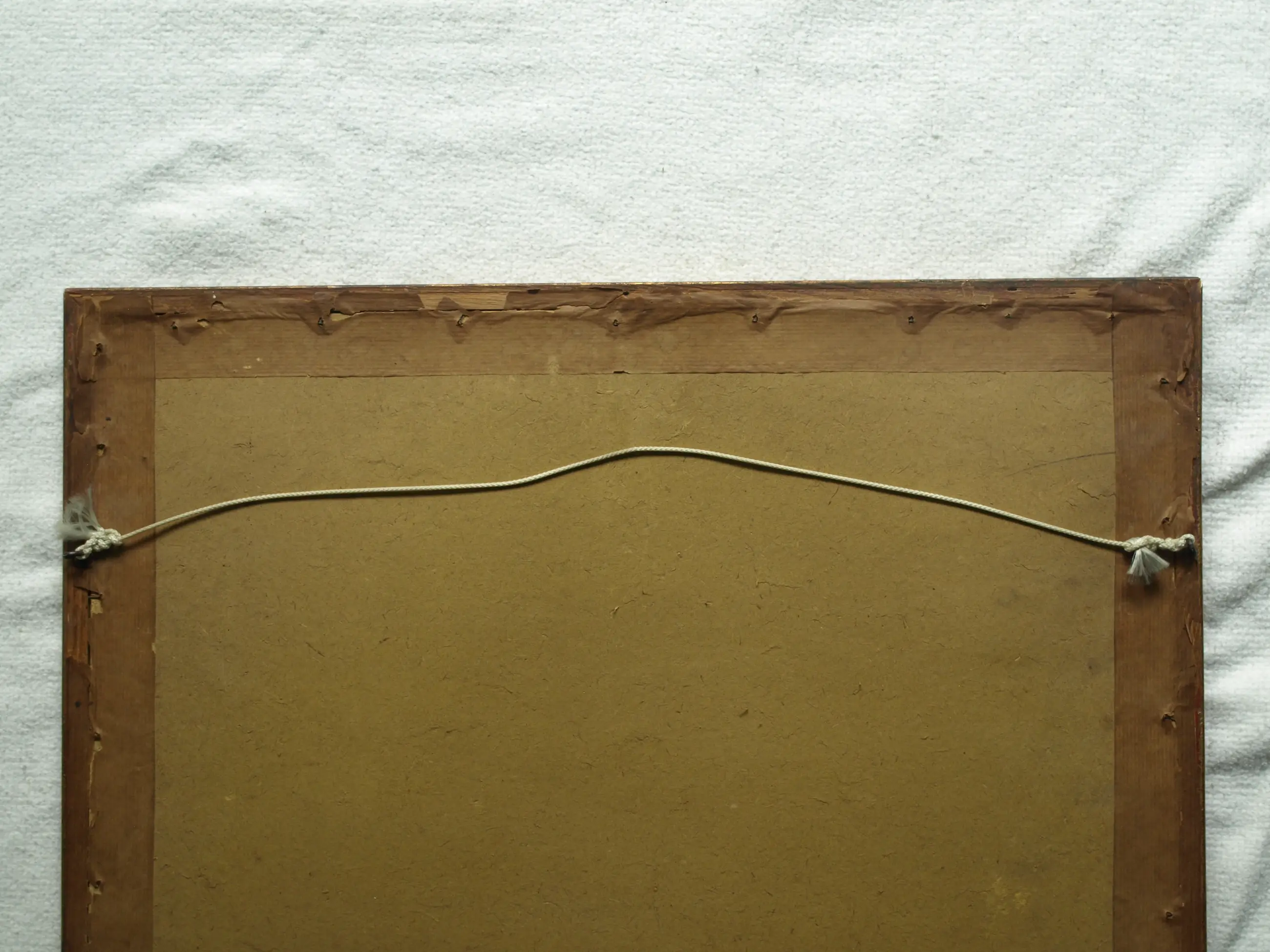 In goede staat. Het papier van het passe-partout is wat ‘verkleurd’ door de tand des tijds. De houten lijst heeft slijtplekjes. Ingelijst zonder glasplaat. Zie ook de foto’s voor een eigen indruk. Kan zo aan de muur.
