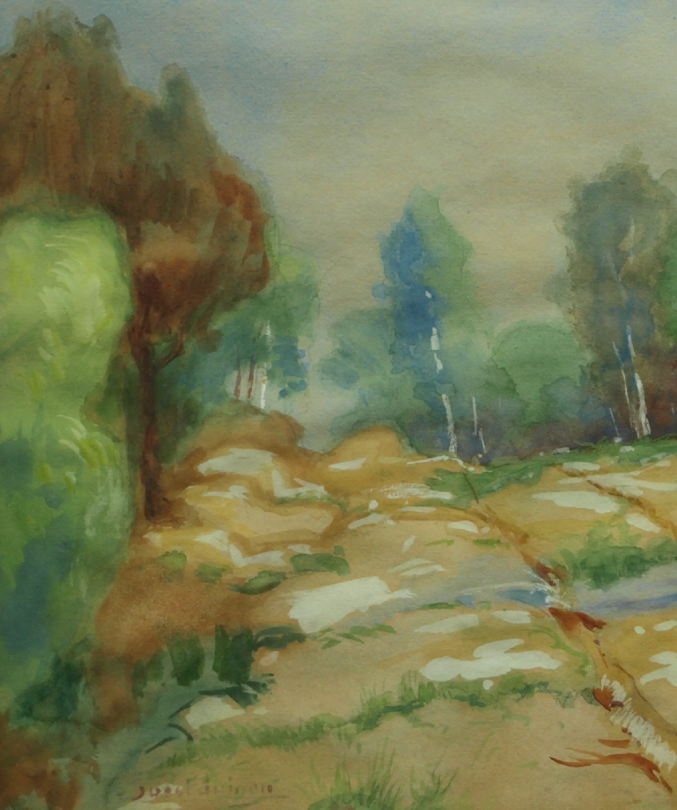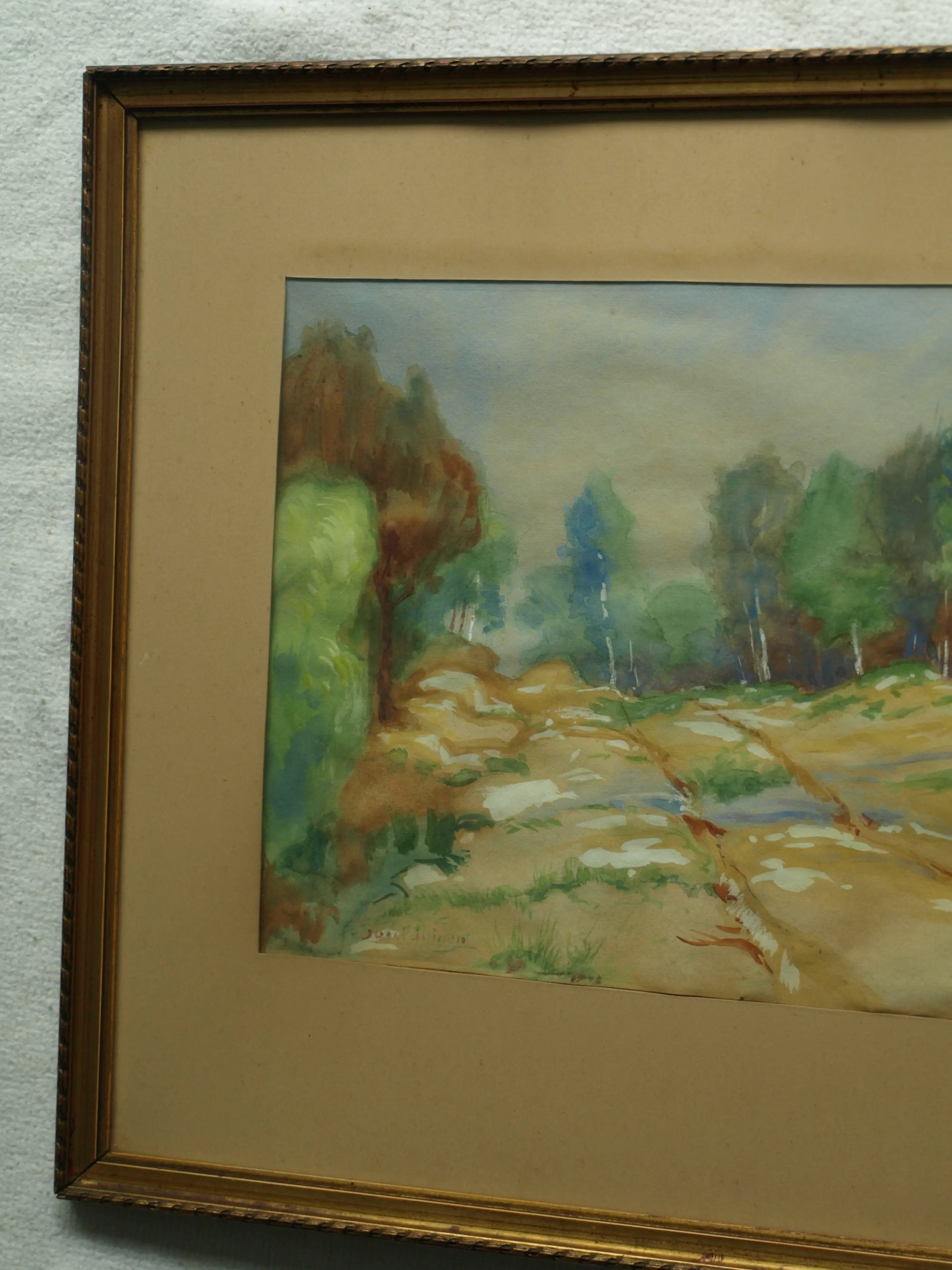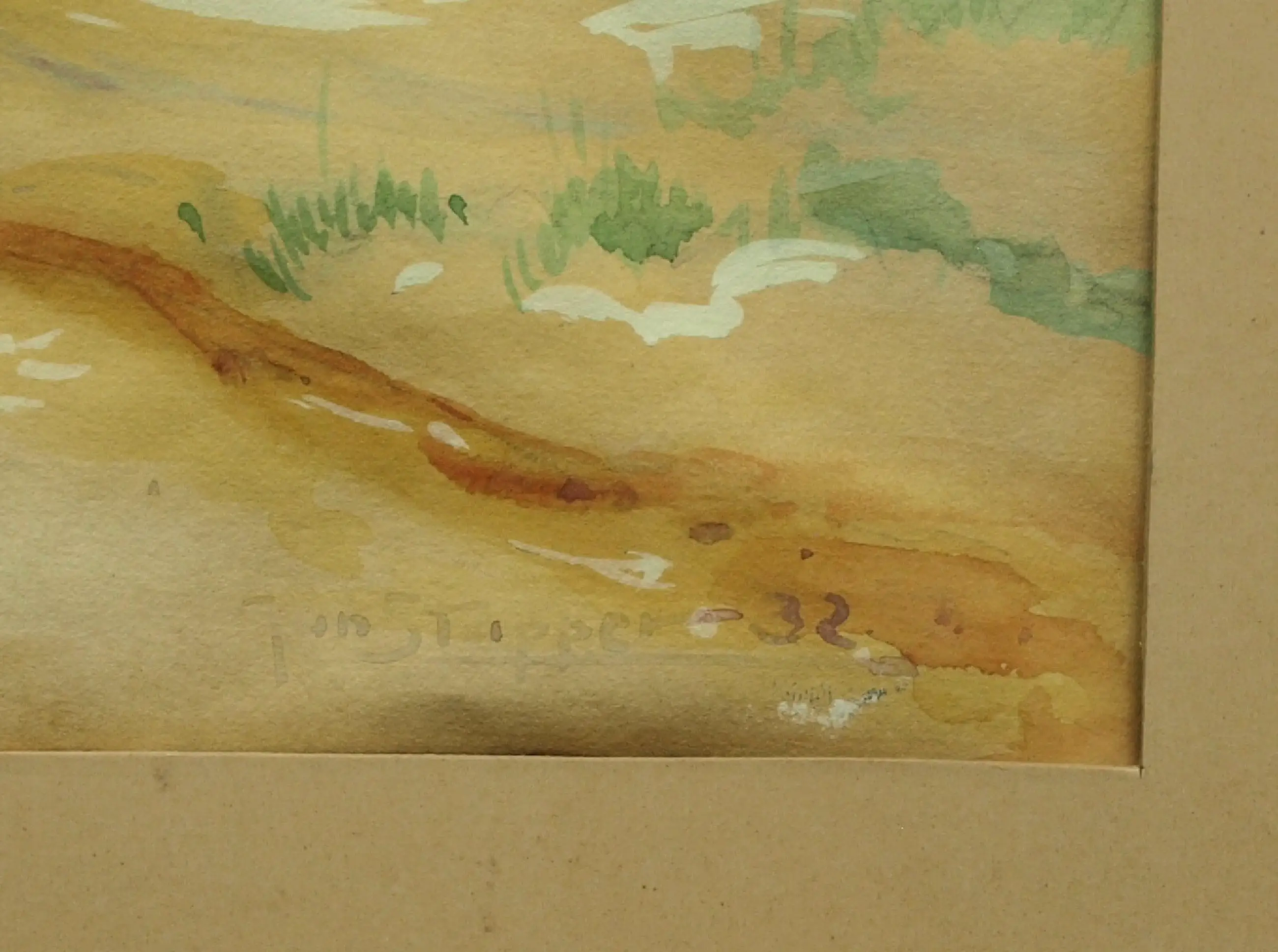 Een aquarel uit 1932 van de Purmerendse / Nederlandse kunstenaar Jan Stapper (1875-1964). -Gesigneerd en gedateerd rechtsonder. Getiteld “Soestduinen” linksonder. De kunstenaar heeft deze voorstelling ook in 1932 gemaakt met olieverf op paneel. Dat werk is via Kunstveiling verkocht op 15 juni 2021 ( https://www.kunstveiling.nl/items/jan-stapper-olieverf-op-paneel-landschap-met-bomen/385058 ). Zie ook de laatste 2 foto's. -Ingelijst in een goudkleurige houten lijst met passe-partout (zonder glasplaat). -Afmetingen: Lijst, 41 x 51 x 2 cm. Beeld, 24 x 36 cm. -Herkomst: Uit een inboedel. -Conditie: In goede staat. Het papier van het passe-partout is wat ‘verkleurd’ door de tand des tijds. De houten lijst heeft slijtplekjes. Ingelijst zonder glasplaat. Zie ook de foto’s voor een eigen indruk. Kan zo aan de muur.